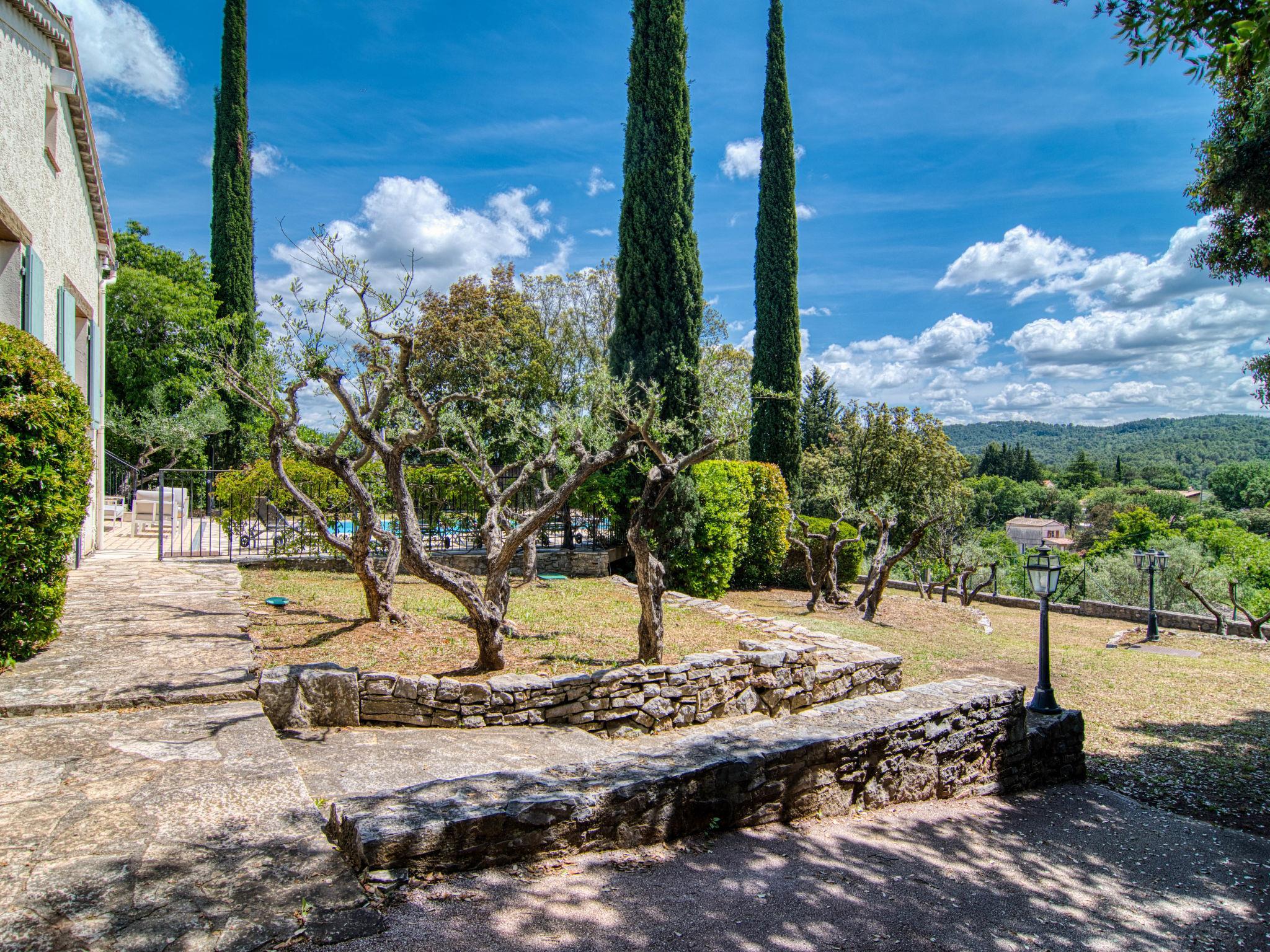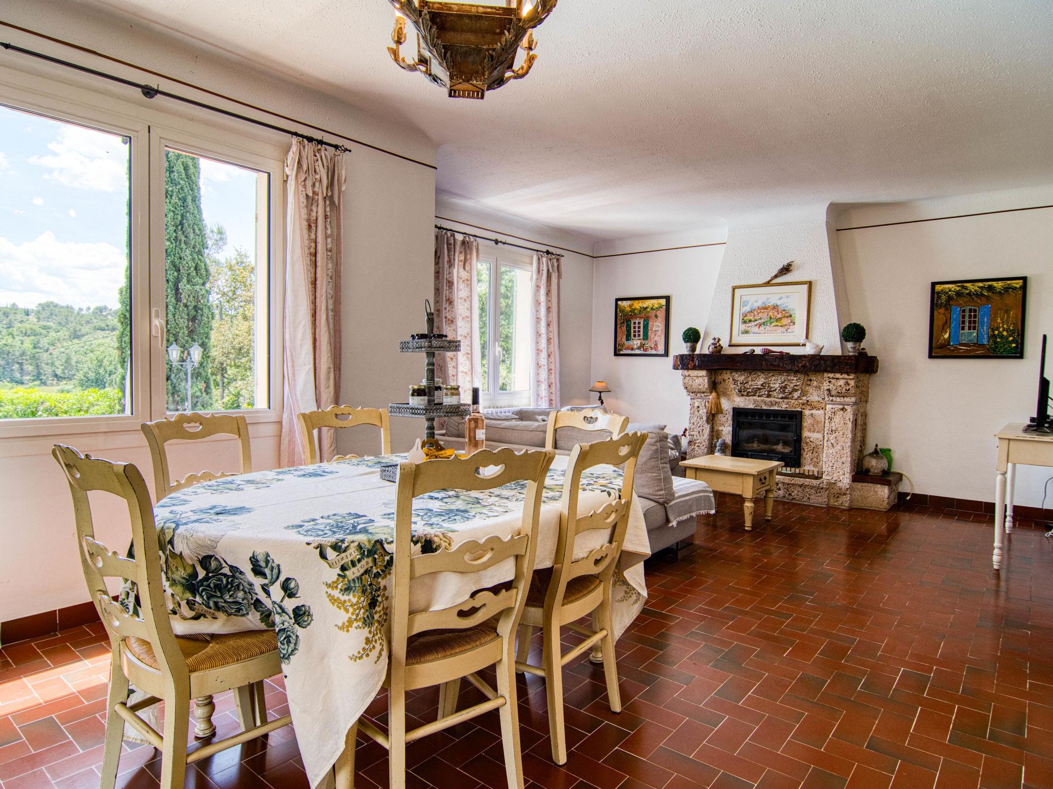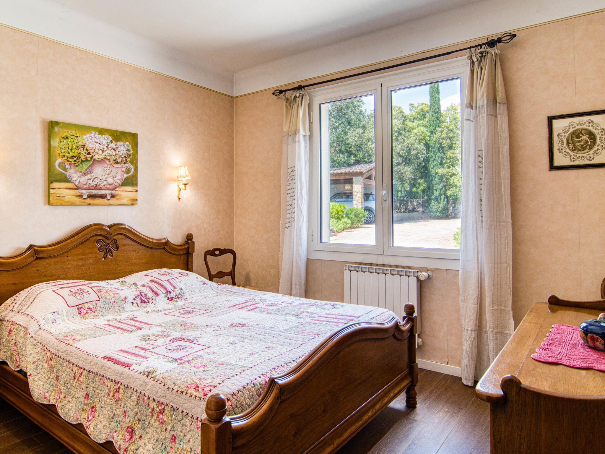 "Le Clos des Oliviers", 4-room house 150 m2. Comfortable furnishings: living/dining room with open-hearth fireplace, dining table and satellite TV. Exit to the terrace. 2 rooms, each room with 1 french bed (160 cm). 1 room with 1 x 2 bunk beds. Kitchen (1 hot plate, oven, dishwasher, 3 gas rings, toaster, microwave, freezer, electric coffee machine) with small dining table. Exit to the terrace. Shower, sep. WC, double hand-basin. Oil heating. Large terrace roofed. Terrace furniture, barbecue, deck chairs. View of the garden and the countryside. Facilities: washing machine, iron, mosquito net, baby cot. Internet (WiFi, free). Please note: non-smoking house. Smoke alarm. 83032000005EB