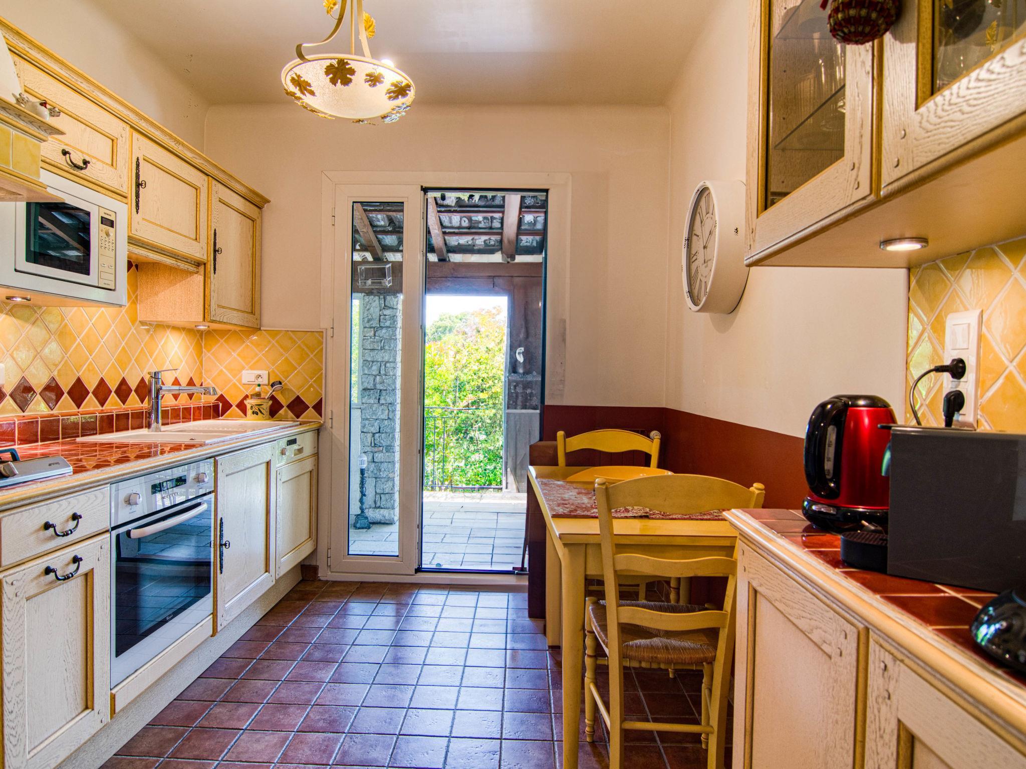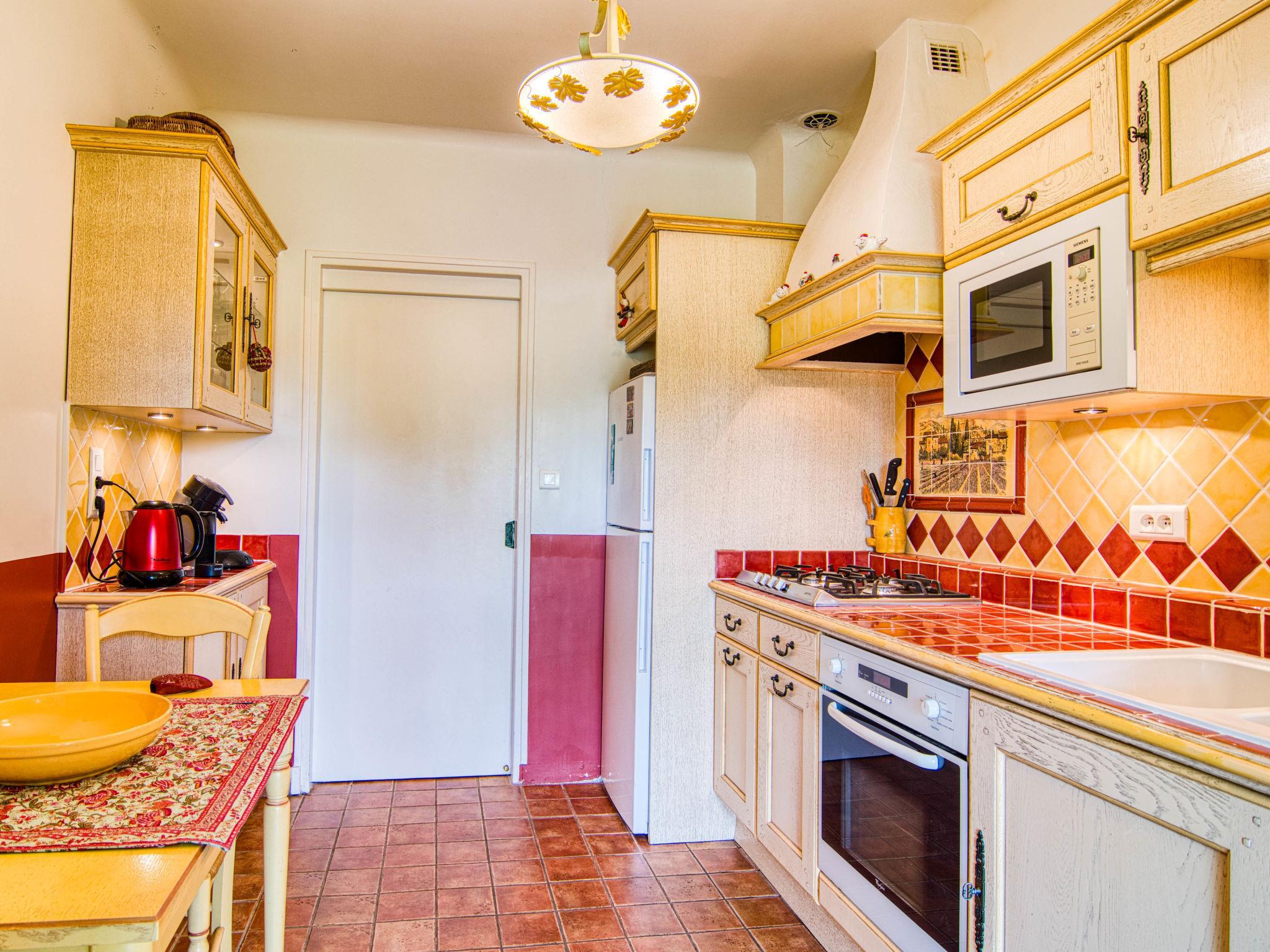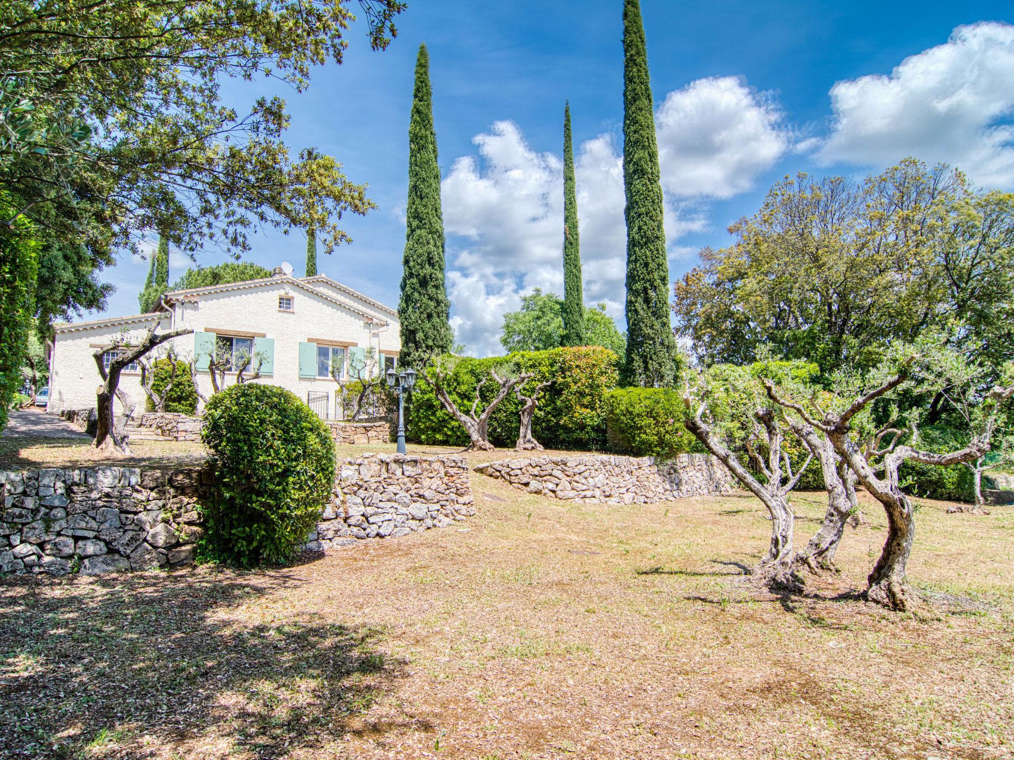 "Le Clos des Oliviers", 4-room house 150 m2. Comfortable furnishings: living/dining room with open-hearth fireplace, dining table and satellite TV. Exit to the terrace. 2 rooms, each room with 1 french bed (160 cm). 1 room with 1 x 2 bunk beds. Kitchen (1 hot plate, oven, dishwasher, 3 gas rings, toaster, microwave, freezer, electric coffee machine) with small dining table. Exit to the terrace. Shower, sep. WC, double hand-basin. Oil heating. Large terrace roofed. Terrace furniture, barbecue, deck chairs. View of the garden and the countryside. Facilities: washing machine, iron, mosquito net, baby cot. Internet (WiFi, free). Please note: non-smoking house. Smoke alarm. 83032000005EB