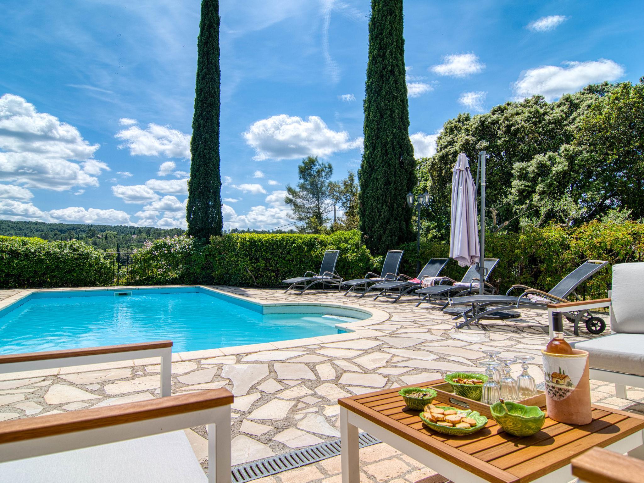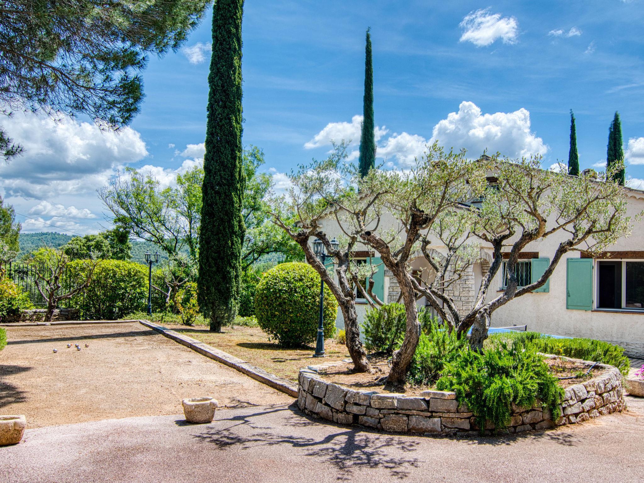 Beautiful, comfortable house "Le Clos des Oliviers". 1 km from the centre of Carcès, 20 km from the centre of Brignoles, in the residential district, in the countryside. Private: beautiful, well-kept garden 1'500 m2 (fenced) with lawn and trees, swimming pool fenced (8 x 5 m, depth 150 - 200 cm, seasonal availability: 01.Jan. - 31.Dec.). Outdoor shower, boules, terrace, roofed, parking on the premises. Shop 800 m, supermarket 1 km, bus stop 1.6 km, railway station "Les Arcs Draguignan" 31 km, bathing lake "Sainte Croix" 46 km. Golf course (18 hole) 20 km. Nearby attractions: Chute du Grand Baou 9 km, Grottes de Villecroze, La cascade de Sillans, Cotignac, Vallon Sourn, Abbaye du Thoronet. Well-known lakes can easily be reached: Carcès 3 km. Hiking paths: Gorges du Verdon.