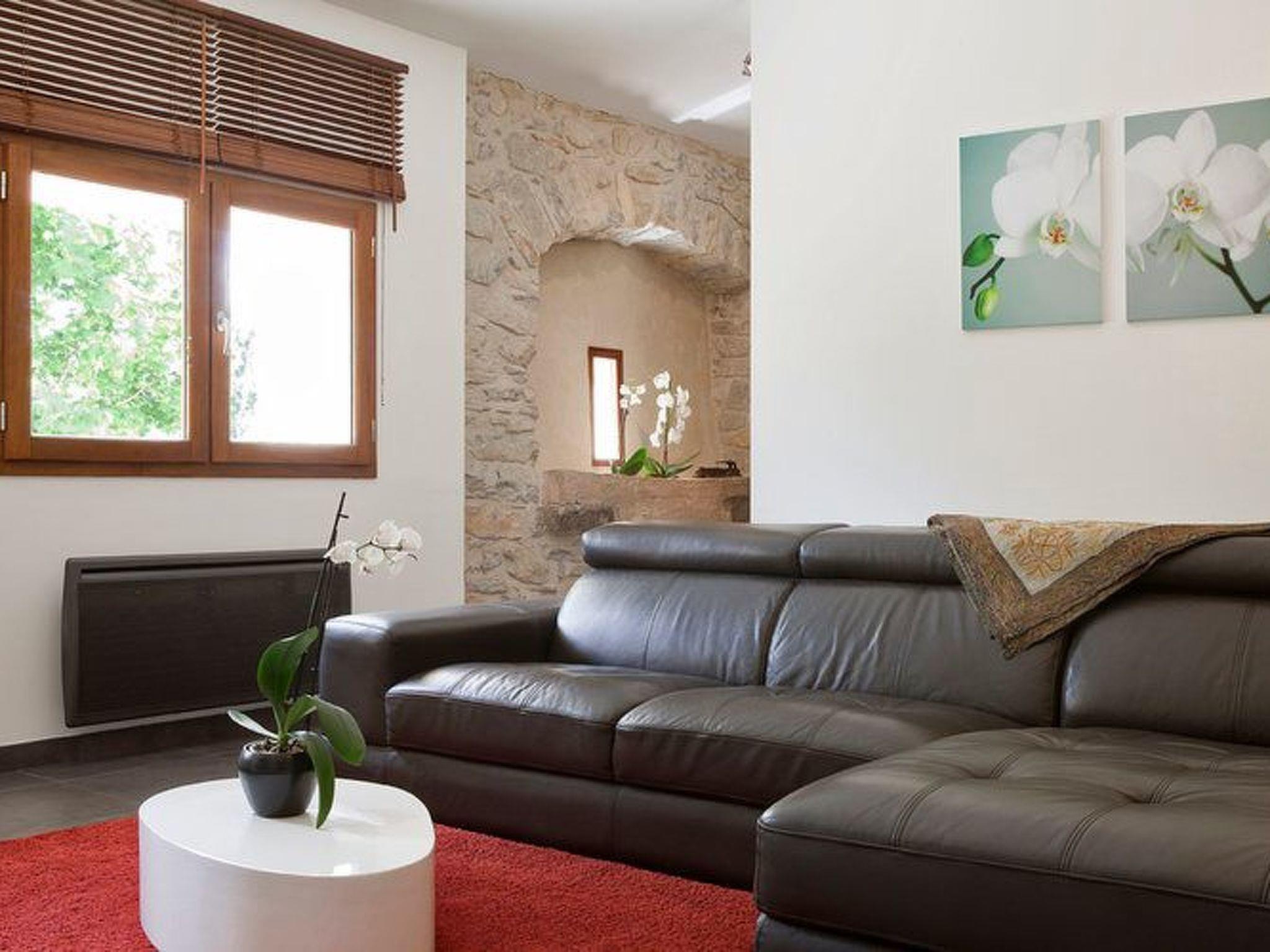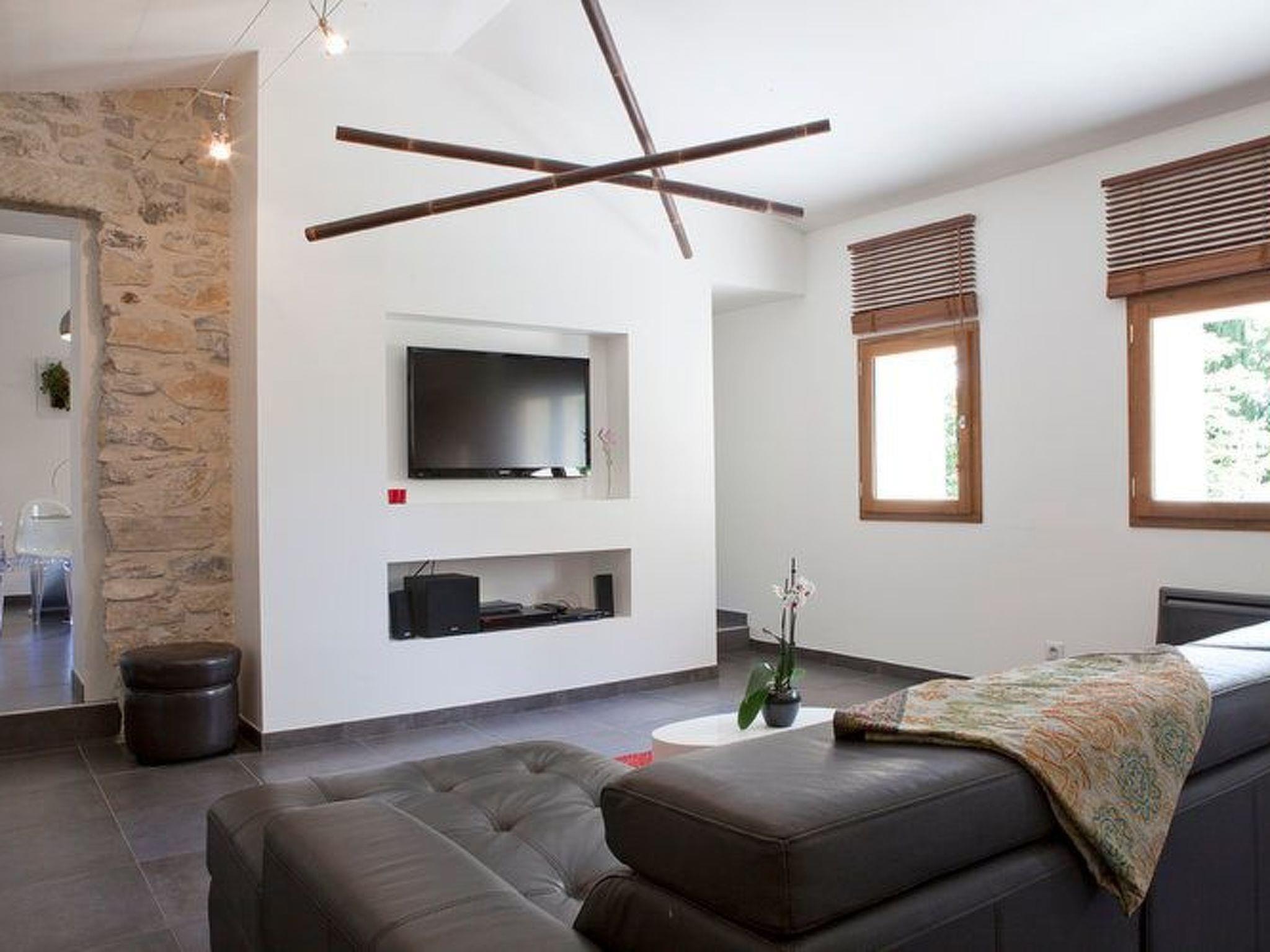 In the heavenly setting of the Domaine de Monteils, a former priory that has been completely renovated, this 74 m2 designer flat enjoys morning-to-night sunshine and lovely panoramic views over the estate's grounds, the surrounding vineyards and the hills in the distance. The estate and its grounds are located in Carnas, between Nîmes and Montpellier near Sommières, surrounded by vineyards in a heavenly setting.
