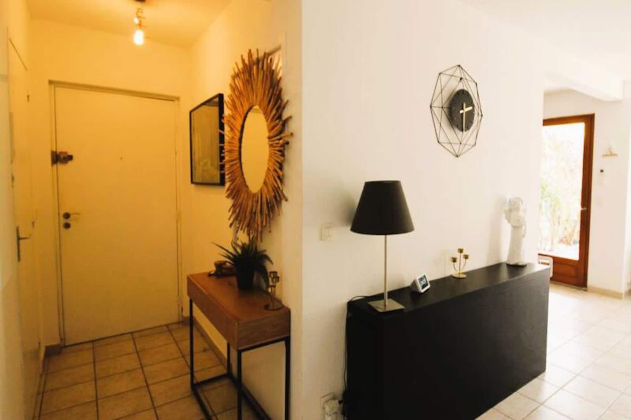 Dette elegante triplex-feriehuset tilbyr et rolig tilfluktssted i en privat, sikker bolig med tilgang til et felles basseng. Eiendommen strekker seg over 110 m², og har en hage og en romslig stue/spisestue med klimaanlegg. Det ?pne kj?kkenet flyter s?ml?st ut p? en terrasse og hage, perfekt for utend?rs avslapning. F?rste etasje rommer tre innbydende soverom: to med dobbeltsenger (140x200 cm) og ett med en queen-size seng (160x200 cm), som ?pner ut mot en privat terrasse. I toppetasjen gir en sovesofa (140x200 cm) og et eget bad med dusj og WC ekstra komfort. Senget?y kan ordnes p? foresp?rsel, noe som sikrer et praktisk opphold for alle gjester. Eiendommen ligger kun 15 minutter fra Hy?res og den fantastiske halv?ya Giens, og er en inngangsport til fantastiske attraksjoner. Utforsk de gylne strendene i Le Pardon, Les Pins Pench?s og Le Peno, eller vandre gjennom skjulte perler som Le Canebas og Le Cabro. Den lokale landsbyen, kun 2 km unna, tilbyr et pulserende marked hver torsdag, sammen med en sjarmerende havn og herlige restauranter. For natur- og historieentusiaster gir det n?rliggende Bayarde-fortet og blomstermarker en pittoresk flukt. Ytterligere fasiliteter inkluderer et moderne kj?kken utstyrt med viktige apparater, inkludert oppvaskmaskin og mikrob?lgeovn. F?rste etasje har praktisk oppbevaring, separat WC og en godt designet spiseplass. Gjestene kan nyte parkering p? stedet, noe som gj?r det enkelt ? utforske omr?dene rundt.