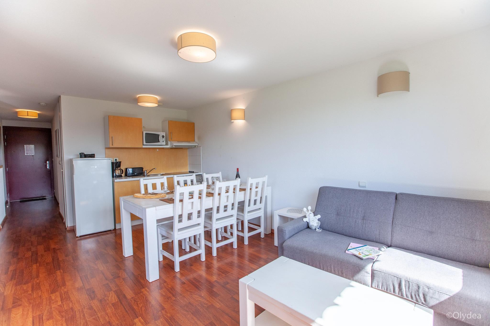 Denne velplanlagte leiligheten ligger i det fredelige landskapet i Cassen, i residensen Adonis Cassen – Les Hameaux de Chalosse, og tilbyr en rolig base for gjester som ønsker grøntområder, frisk luft og et enkelt ferieopphold. Ideelt for par, små familier eller venner, kombinerer hjemmet praktisk innendørskomfort med innbydende uteområder og felles fritidsfasiliteter. Inne er stuen/spisestuen innredet for avslappende kvelder sammen, med en dobbel sovesofa, TV og spisebord. Kjøkkenkroken er kompakt, men fullt utstyrt med kaffemaskin, oppvaskmaskin og kjøleskap, slik at du kan tilberede enkle måltider når det passer deg. Soverommet har to enkeltsenger, og det moderne badet har dusj og toalett for hverdagsbruk. Klimaanlegg og oppvarming sikrer komfort i alle årstider. Gå ut, og du vil finne det som gjør dette oppholdet spesielt hyggelig: tilgang til både balkong og terrasse, samt en hage møblert for avslapning og rolige morgener. Det felles utendørsbassenget, åpent fra april til september, blir et velkomment tilfluktssted på varmere dager. Parkering er tilgjengelig på stedet, og eiendommen er kjæledyrvennlig, noe som gjør den egnet for gjester som reiser med sine pelskledde følgesvenner. En barnestol og barneseng er også tilgjengelig for familier med små barn. Den omkringliggende Chalosse-regionen er kjent for sitt bølgende landskap, rolige landsbyer og autentiske sørvestfranske sjarm. Du kan utforske lokale markeder, nyte naturskjønne turer gjennom jordbruksland og skoger, eller ta korte kjøreturer til spabyer som Dax. Dagsturer mot Atlanterhavskysten, inkludert strender i nærheten av Hossegor, er lett mulige, og tilbyr en blanding av landlig ro og kystoppdagelser under oppholdet.