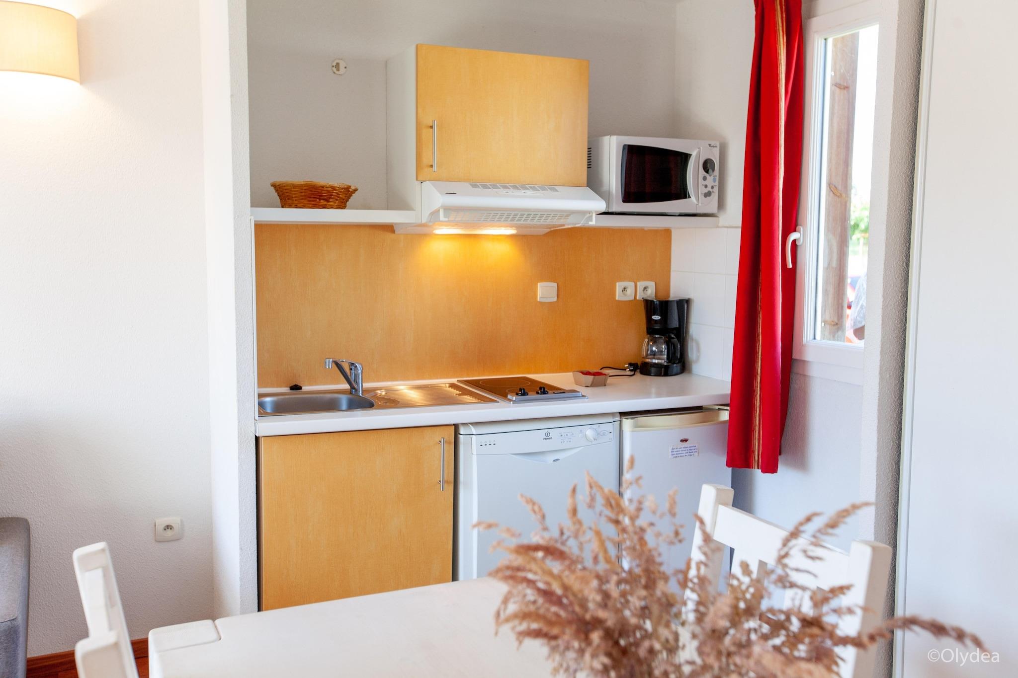 Åpent kjøkke(komfyr med kokeplater(keramisk), vannkoker, kaffetrakter, mikrobølgeovn, oppvaskmaskin, kjøleskap), Stue/spisestue(dobbel sovesofa(140 x 190 cm), TV, spisebord), soveværelse(2x enkeltseng(80 x 190 cm)), bad(dusj, toalett), balkong eller terrasse, klimaanlegg, hagemøbler, svømmebasseng(deles med andre gjester, utendørs, opened from 1/2 Apr upto and including Sep), høy barnestol, baby crib(free)