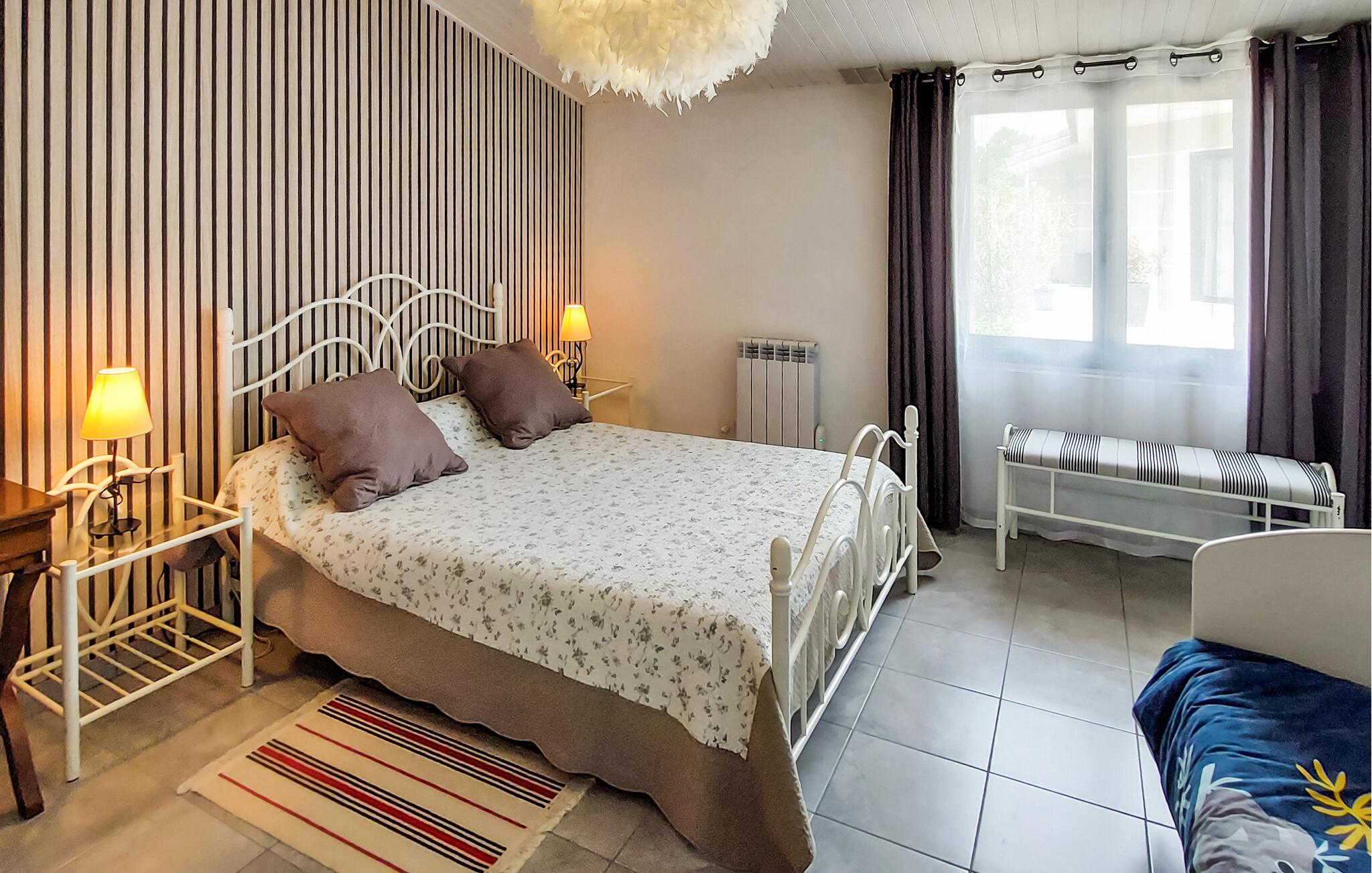 Dette koselige feriehuset inviterer deg som par eller liten familie til å nyte en variert ferie ikke langt fra den rolige badesjøen Lac de Clarens. Her kan du nyte avslappede måltider, planlegge aktiviteter ved det innbydende spisebordet og slappe av i den åpne stuen etter en aktiv dag i naturen.