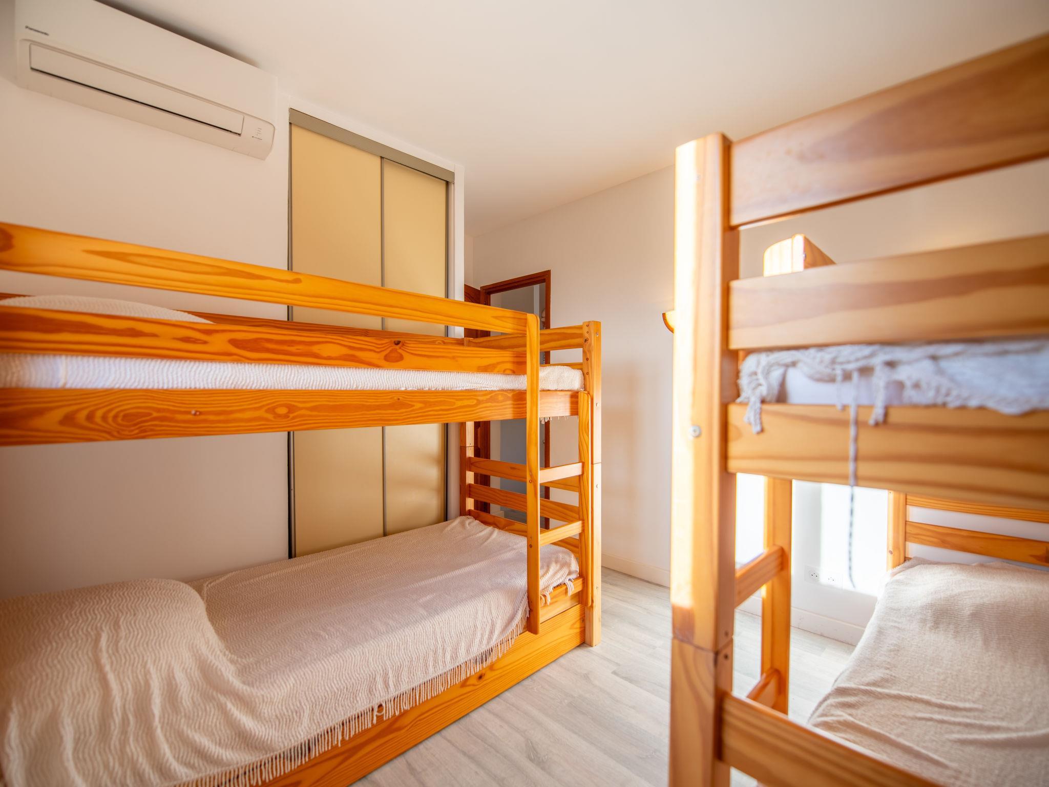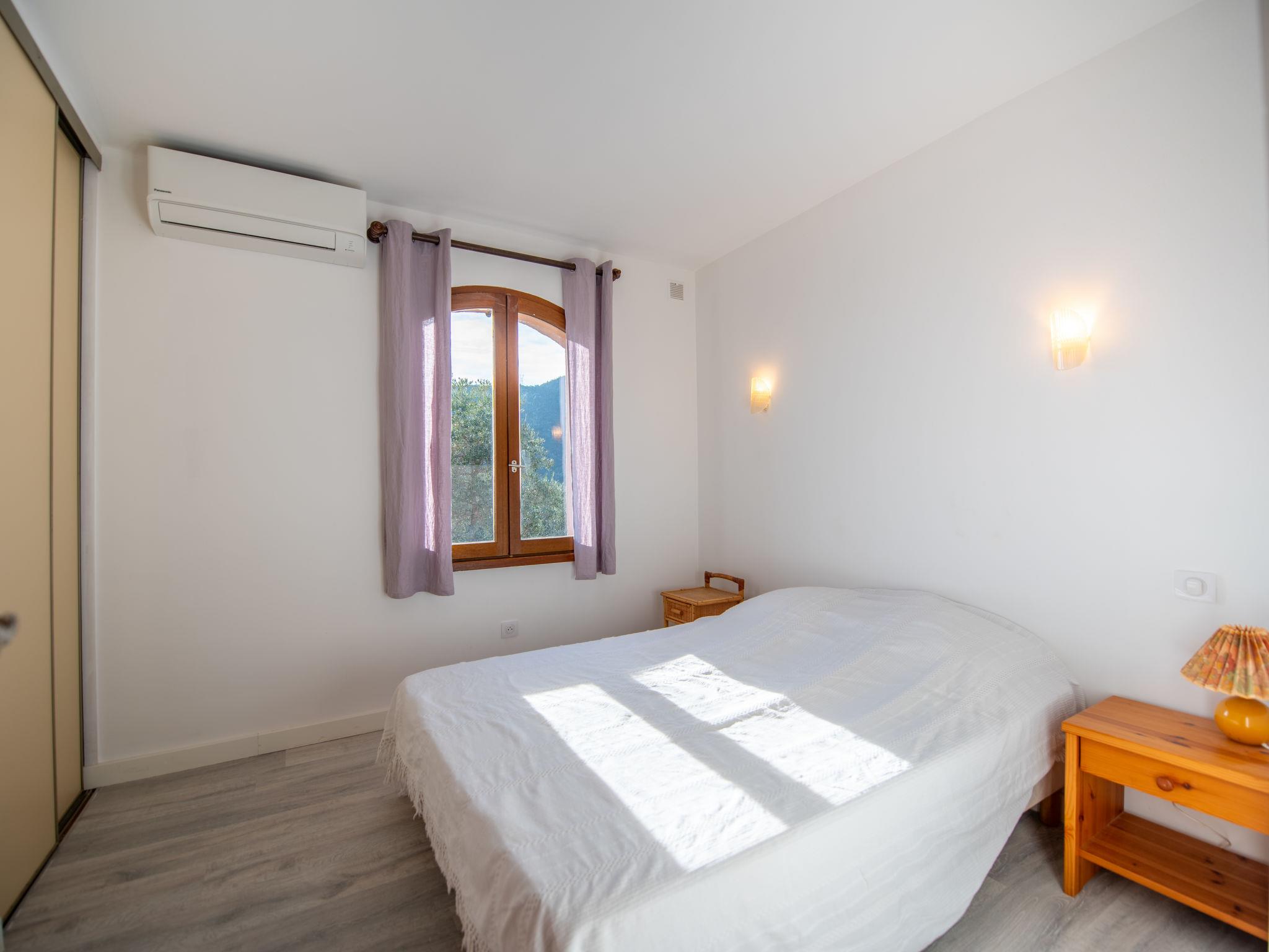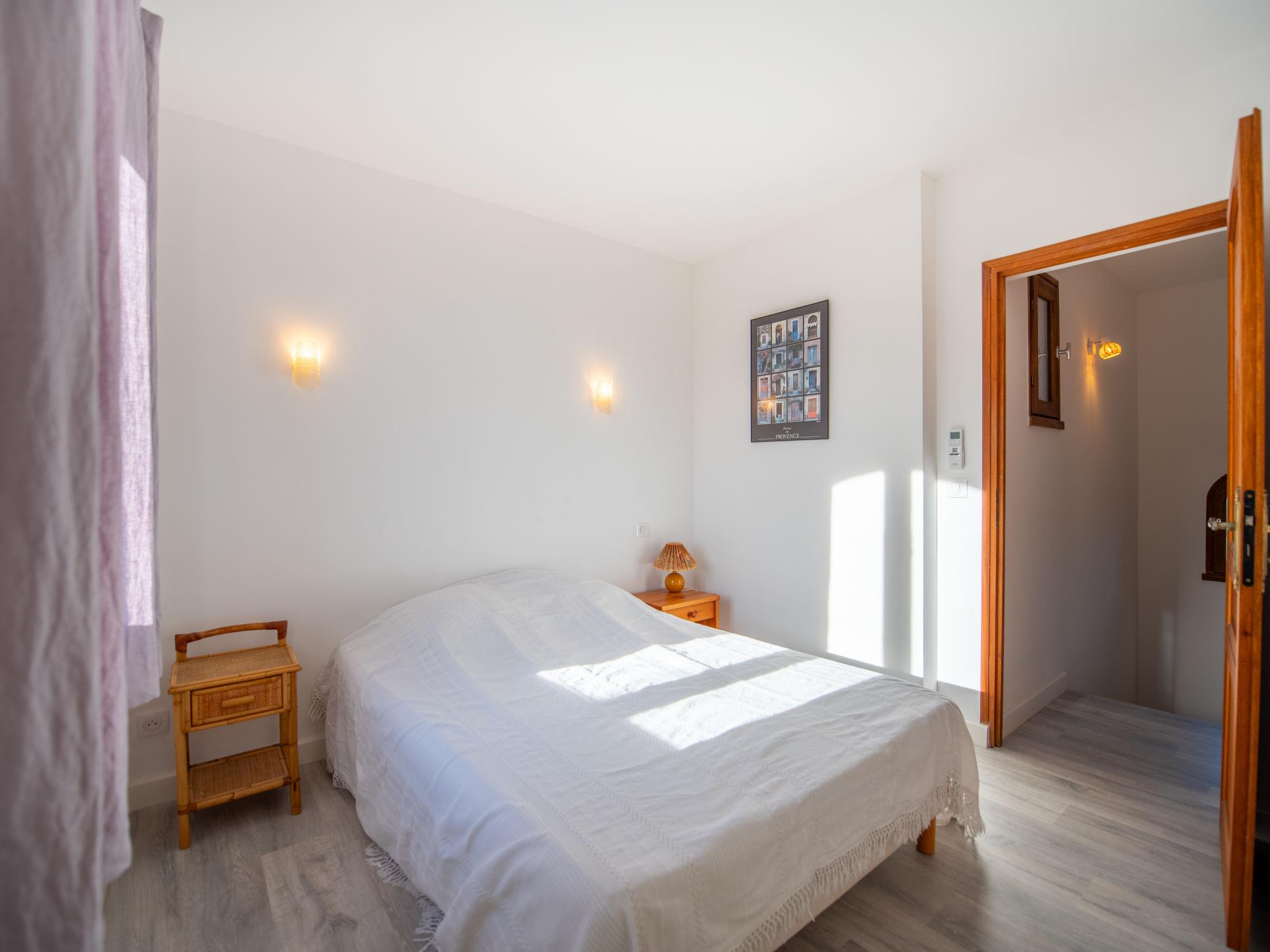 4-room terraced house 110 m2 on 2 levels, south facing position. Practical and beautiful furnishings: living/dining room with TV (flat screen). Exit to the terrace, to the swimming pool. 1 room with 1 french bed (160 cm, length 200 cm). Kitchen (4 hot plates, oven, dishwasher, toaster, kettle, microwave, freezer, electric coffee machine, Capsules for coffee machine (nespresso) extra). Bathroom, sep. WC. Upper floor: 1 room with 1 french bed (140 cm, length 190 cm). 1 room with 2 x 2 bunk beds (80 cm, length 190 cm). Shower/WC. Electric heating. Terrace 20 m2, roofed, south facing position. Terrace furniture, deck chairs (4). Facilities: washing machine, dryer, iron. Internet (WiFi, extra). Parking (fenced). Please note: maximum 1 pet/ dog allowed. Smoke alarm. The barbecue is in the rear courtyard of the house, by the kitchen. Sea view from the 1st floor of the villa.