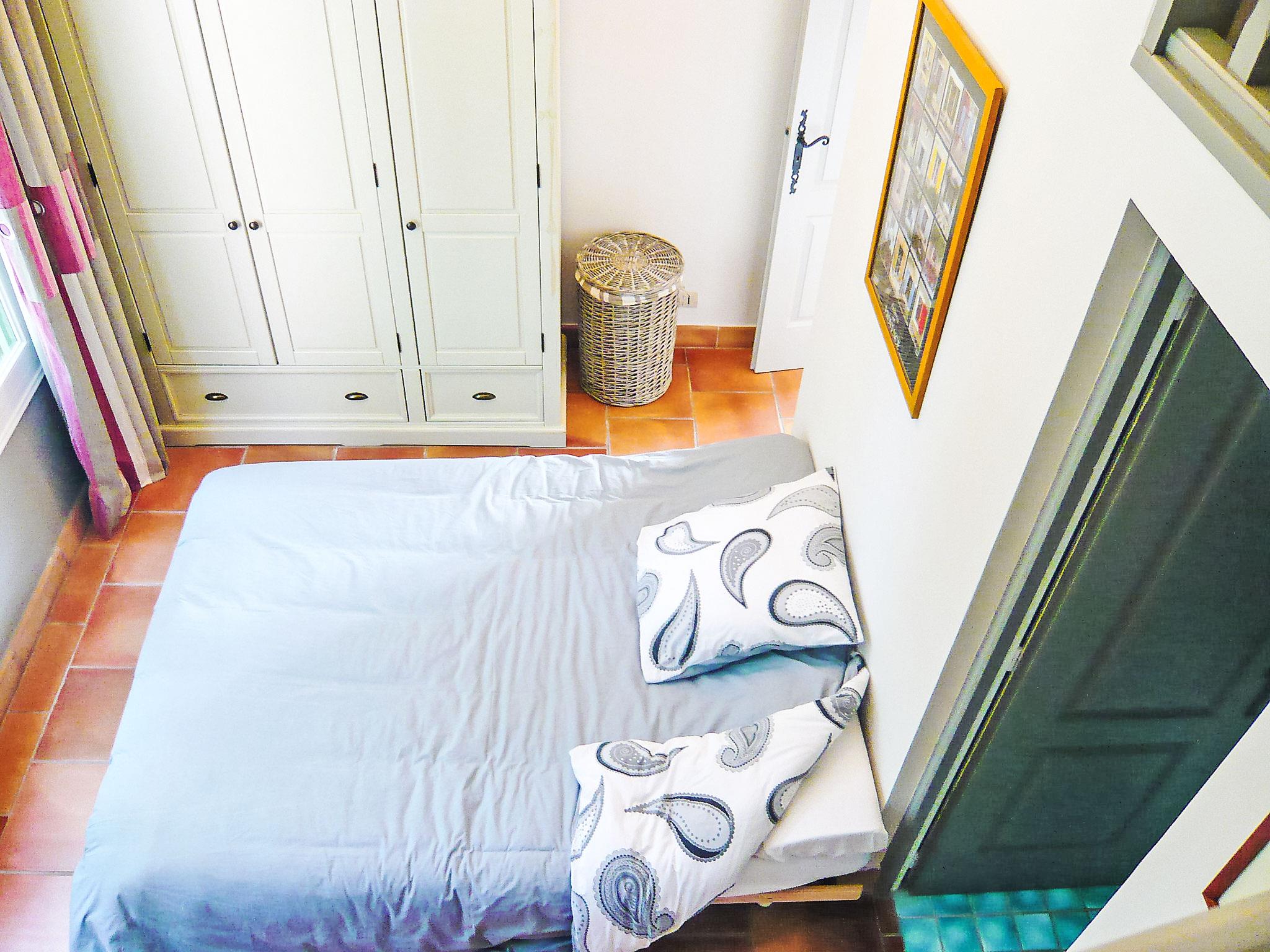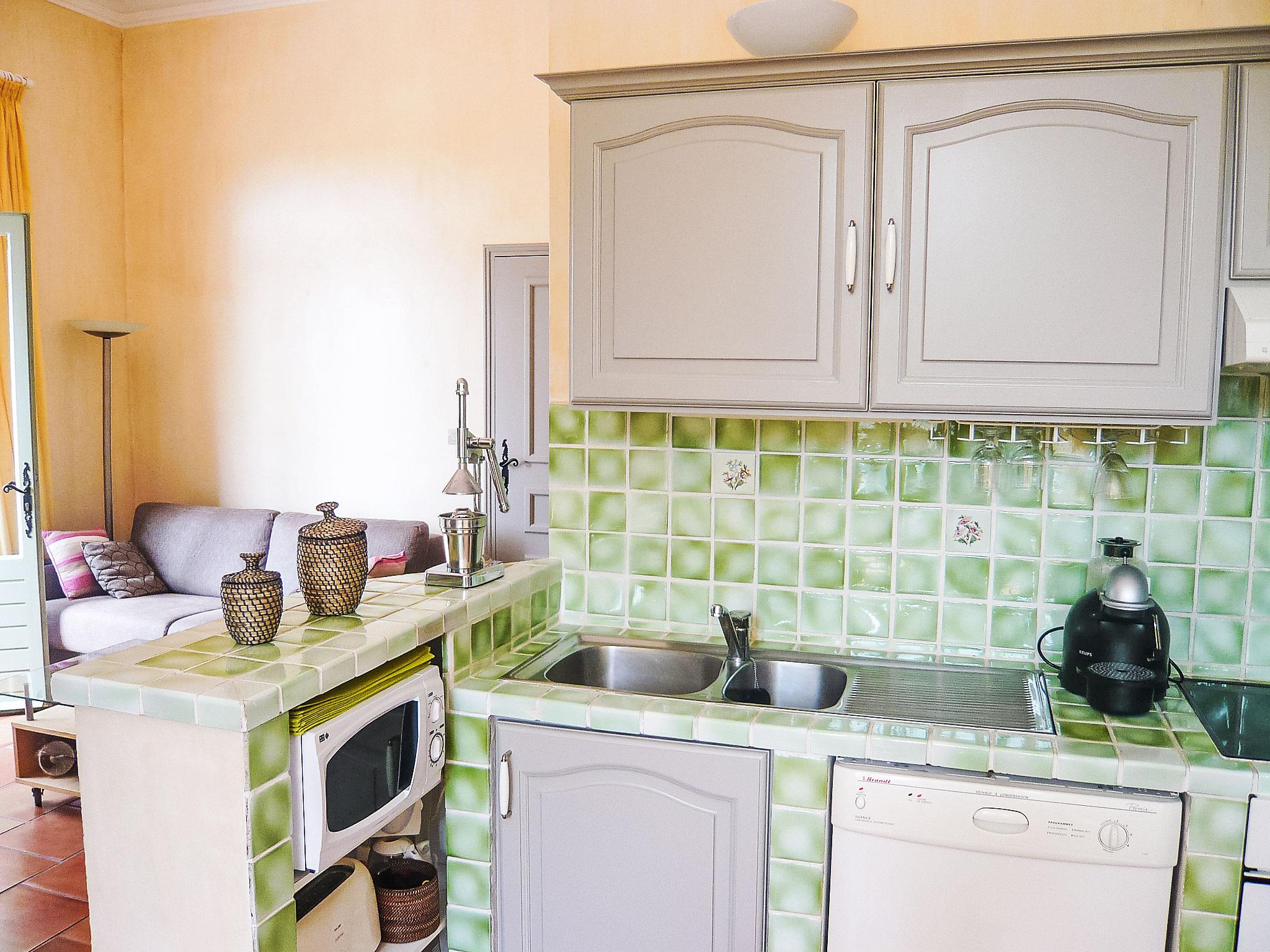 2-room apartment 52 m2 on 1st floor, south facing position. Practical and beautiful furnishings: living/dining room with 1 double sofabed (140 cm, length 190 cm), TV (flat screen). Exit to the terrace. 1 room with 1 french bed (140 cm, length 190 cm), shower/WC. Open kitchen (oven, dishwasher, toaster, kettle, microwave, electric coffee machine). Shower/WC. Electric heating. And south facing position. View of the countryside. Facilities: washing machine, safe. Internet (WiFi, free). Parking (fenced). Please note: maximum 1 pet/ dog allowed. Smoke alarm. In the bedroom is on the 1st floor a small open bedroom, attic (height 1.30m) with 2 trundle beds, 2X90 cm, 190 cm Length (access by a steep staircase). passage through the master bedroom. Access to the residence by secure gate.