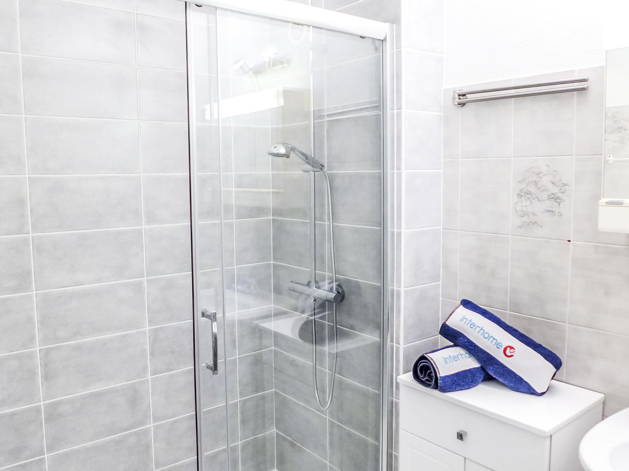2-room apartment 35 m2 on 2nd floor, south facing position. Practical furnishings: living/dining room with 1 x 2 bunk beds (90 cm, length 190 cm), TV and fan. Exit to the terrace. 1 room with 1 french bed (160 cm, length 190 cm). Exit to the terrace. Kitchenette (4 ceramic glass hob hotplates, toaster, kettle, microwave, electric coffee machine, Capsules for coffee machine (Nespresso) extra). Shower, sep. WC. Electric heating. Terrace 14 m2, south facing position and, east facing position. Terrace furniture. Beautiful view of the sea. Facilities: iron, hair dryer. Internet (WiFi, extra). Parking space n 224. Please note: maximum 1 pet/ dog allowed. Smoke alarm.
