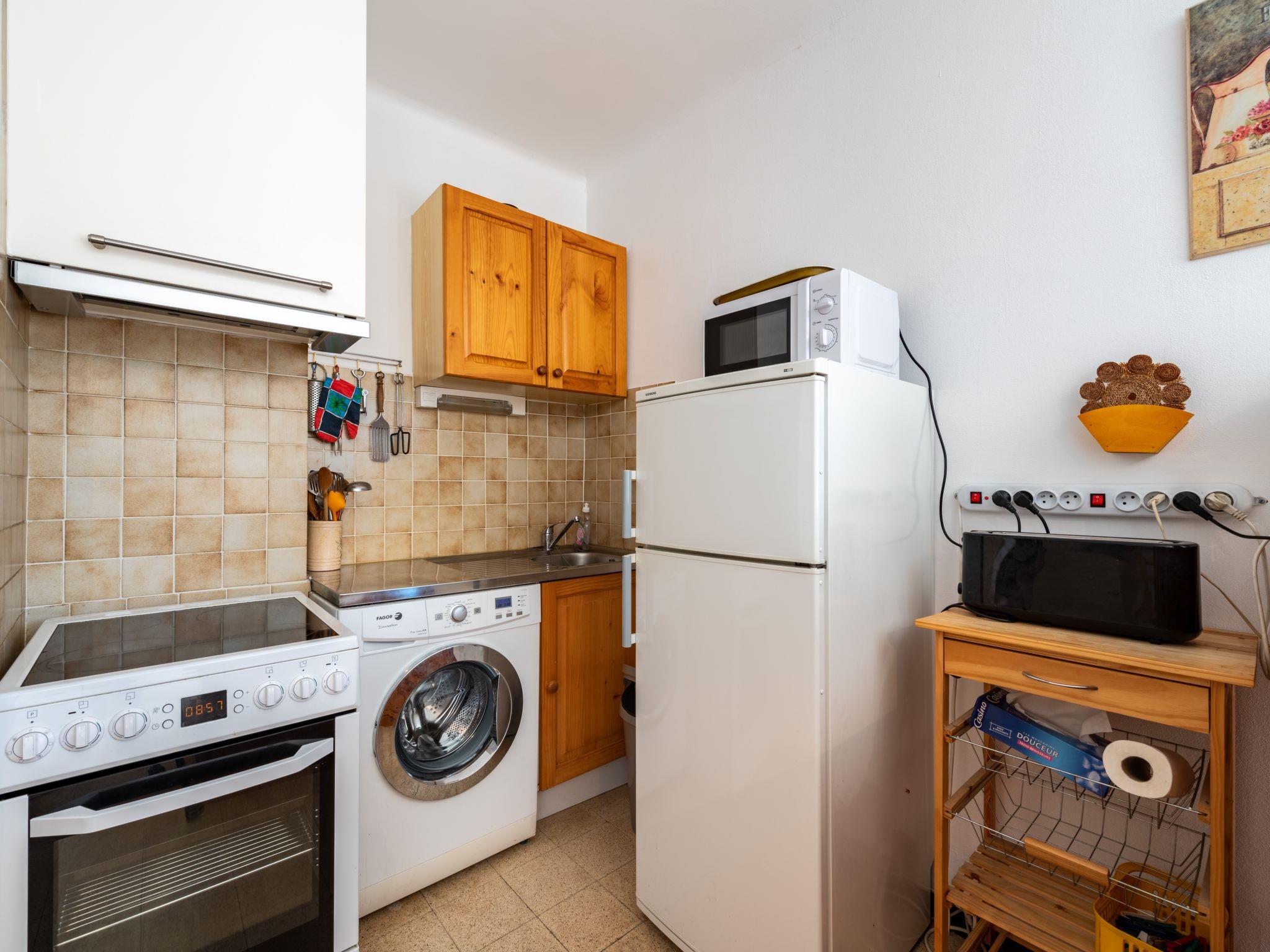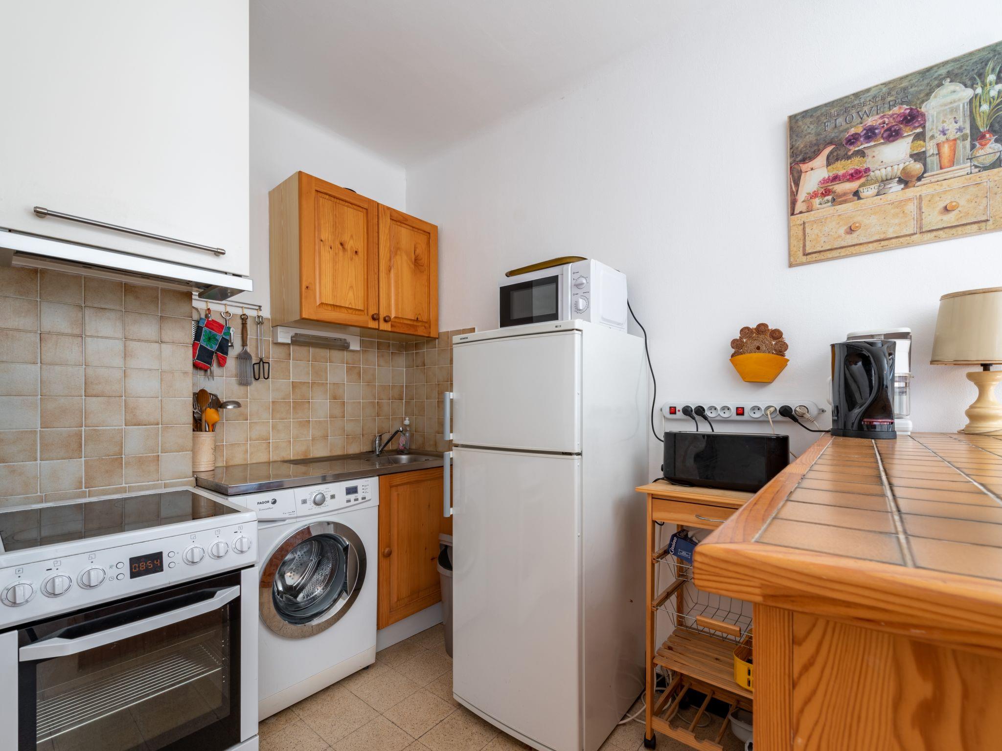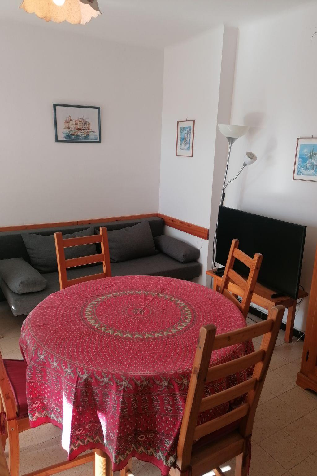 2-room apartment 37 m2 on 3rd floor, south facing position. Practical and comfortable furnishings: living/dining room with 1 double sofabed (140 cm, length 190 cm), TV (flat screen), air conditioning. Exit to the terrace. 1 room with 1 french bed (140 cm, length 190 cm). Kitchenette (oven, 4 ceramic glass hob hotplates, toaster, kettle, microwave, electric coffee machine). Shower/WC. Electric heating. Small balcony 4 m2. Balcony furniture. Partial view of the port. Facilities: washing machine, iron, hair dryer. Internet (WiFi, free). Please note: apartment street side. Non-smokers only, no parking. Smoke alarm.
