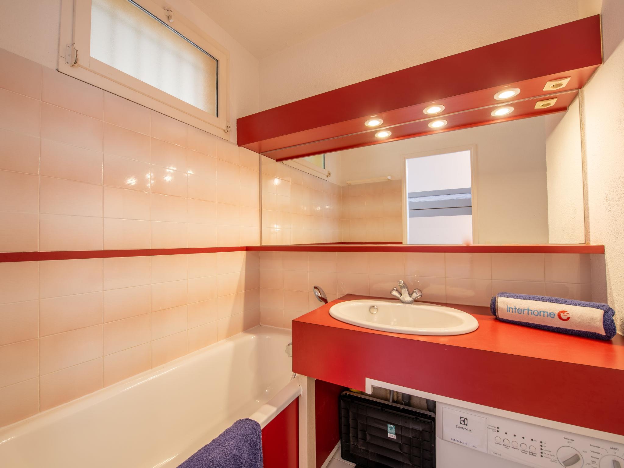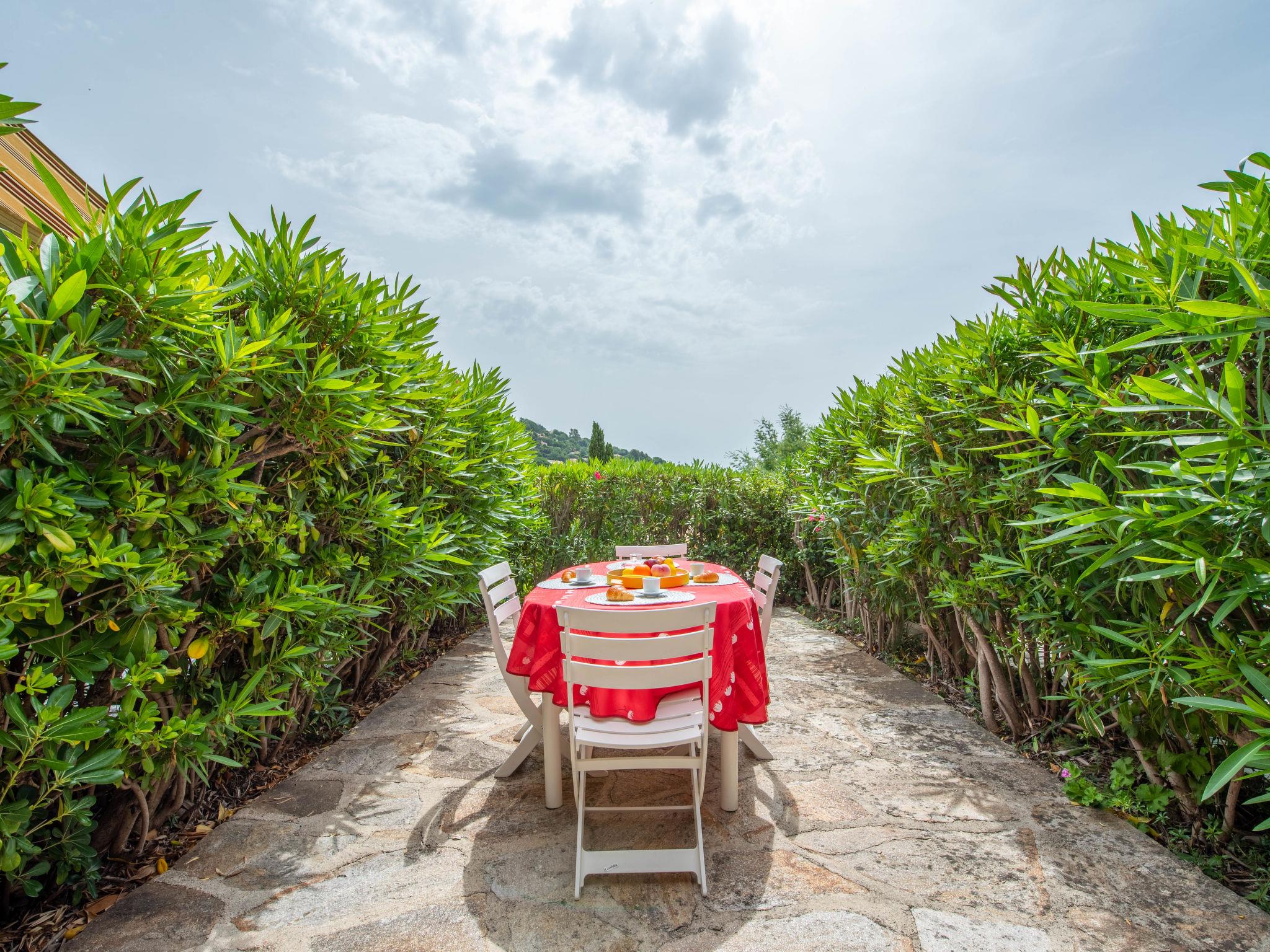 1-room studio 20 m2, on the ground floor. Beautiful furnishings: living/dining room with 1 double sofabed (160 cm, length 200 cm), TV. Sleeping alcove, 2 bunk beds (80 cm, length 190 cm). Kitchenette (2 hot plates, oven, dishwasher, toaster, kettle, freezer, electric coffee machine, Capsules for coffee machine (Dolce Gusto) extra). Bath/WC. Electric heating, boiler (150 litres). Terrace 12 m2, roofed, east facing position, patio 20 m2. Terrace furniture, deck chairs (2). Partial view of the sea and the swimming pool. Facilities: washing machine, iron, hair dryer. Internet (WiFi, extra). Parking space n 21 (fenced). Please note: 1 small pet/ dog allowed. Smoke alarm. Instead of an enclosed bedroom, some sleeping areas are located in an open-plan area (gallery, alcove, etc.). Offer by a private individual according to Art. 155, IV of CGI.