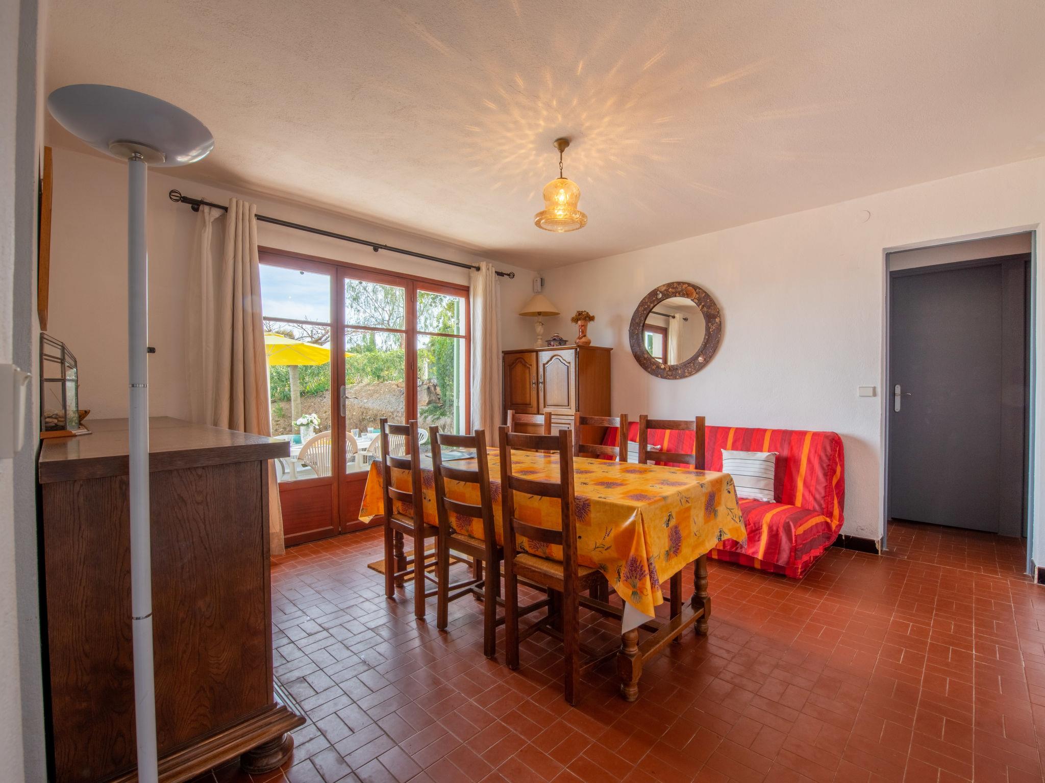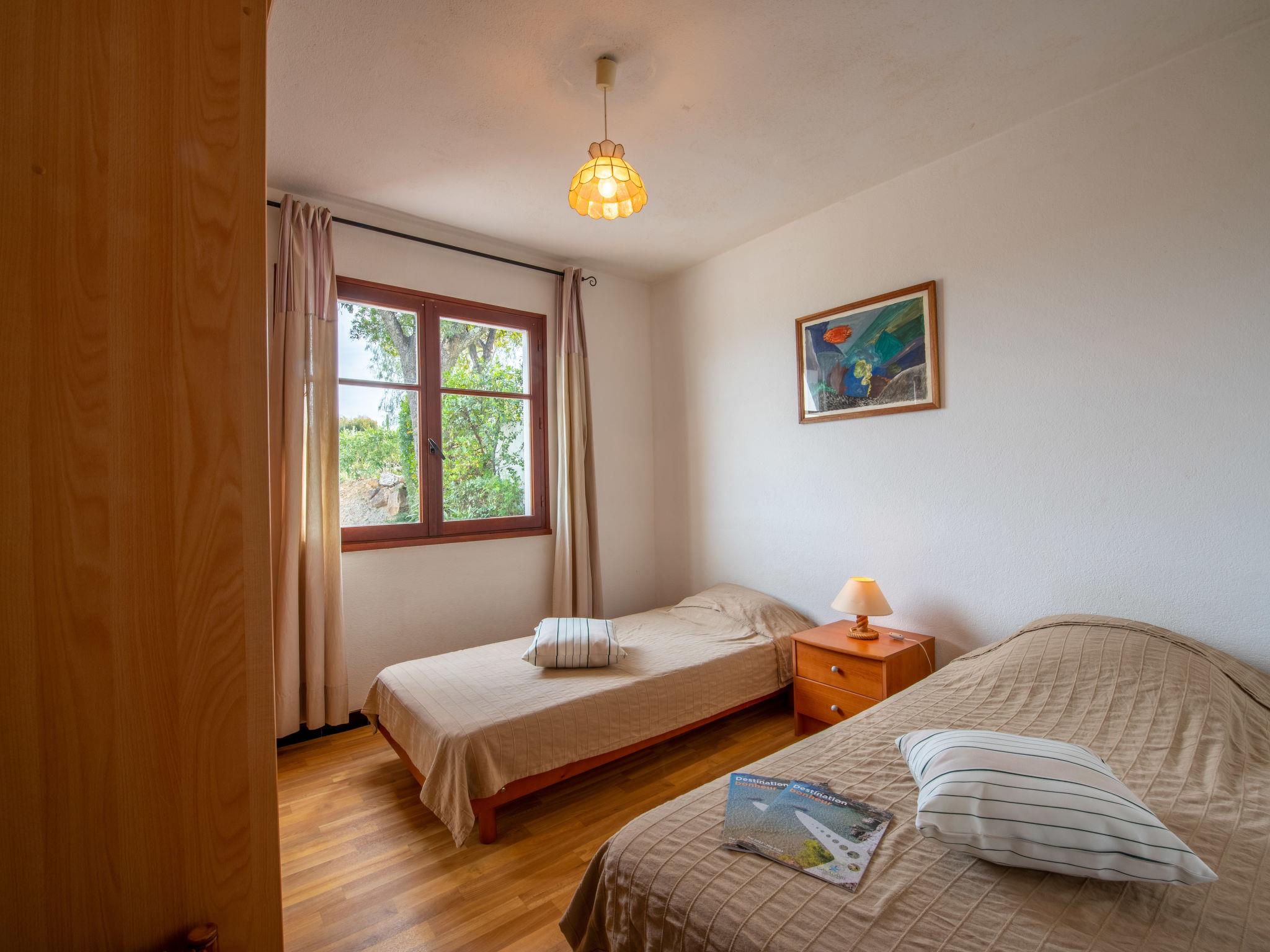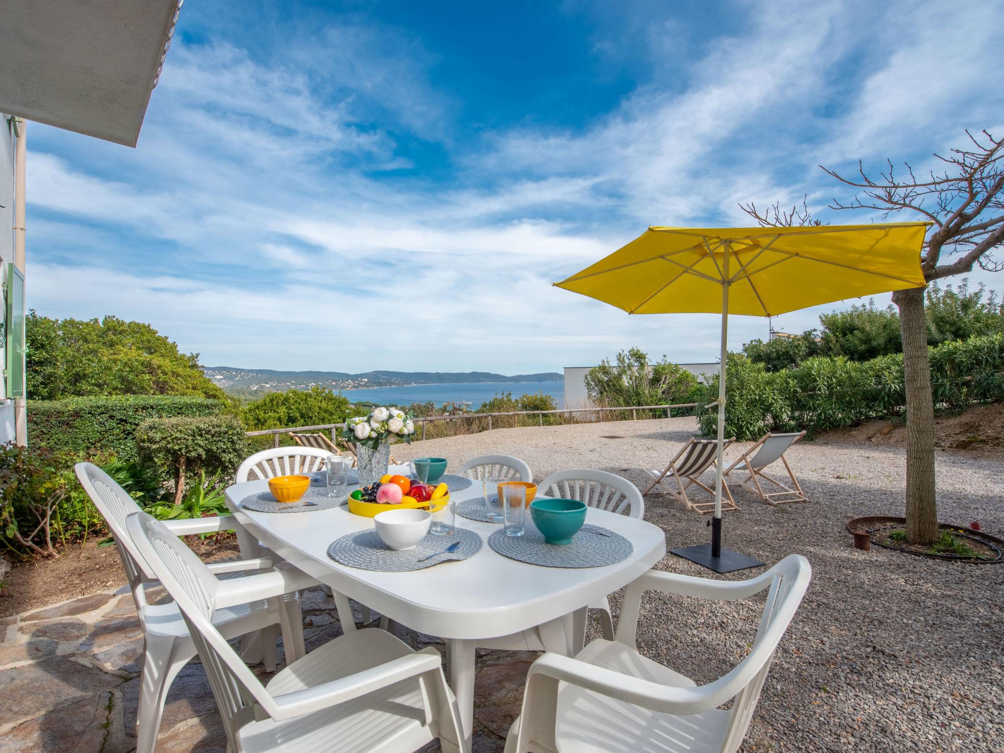 "Les Arbousiers", 4-room apartment 75 m2, on the ground floor. Beautiful furnishings: living/dining room with dining table, TV and air conditioning. Exit to the terrace. 1 room with 1 french bed (140 cm, length 190 cm), air conditioning. 2 rooms, each room with 2 beds (90 cm, length 190 cm), air conditioning. Kitchen (oven, dishwasher, 4 gas rings, toaster, kettle, microwave, freezer, electric coffee machine). Bathroom, sep. WC. Electric heating. Terrace 15 m2, south facing position and, east facing position, garden 800 m2. Terrace furniture, deck chairs (4). Beautiful view of the sea. Facilities: washing machine, iron, hair dryer. Internet (WiFi, free). Parking (fenced 2 cars). Please note: maximum 1 pet/ dog allowed. Smoke alarm.