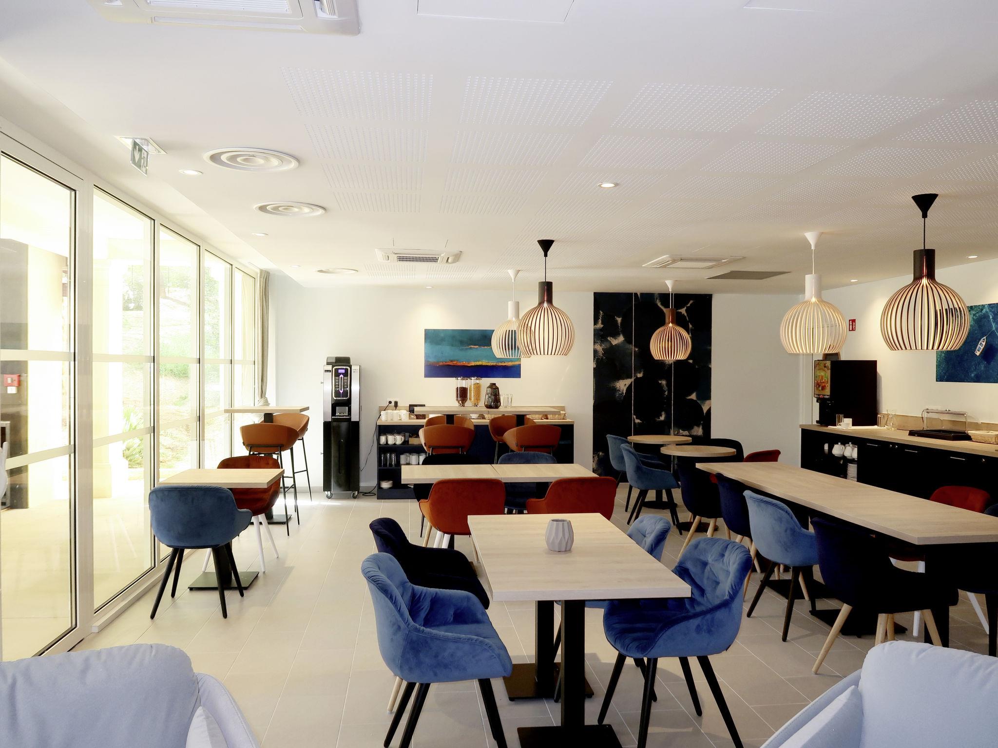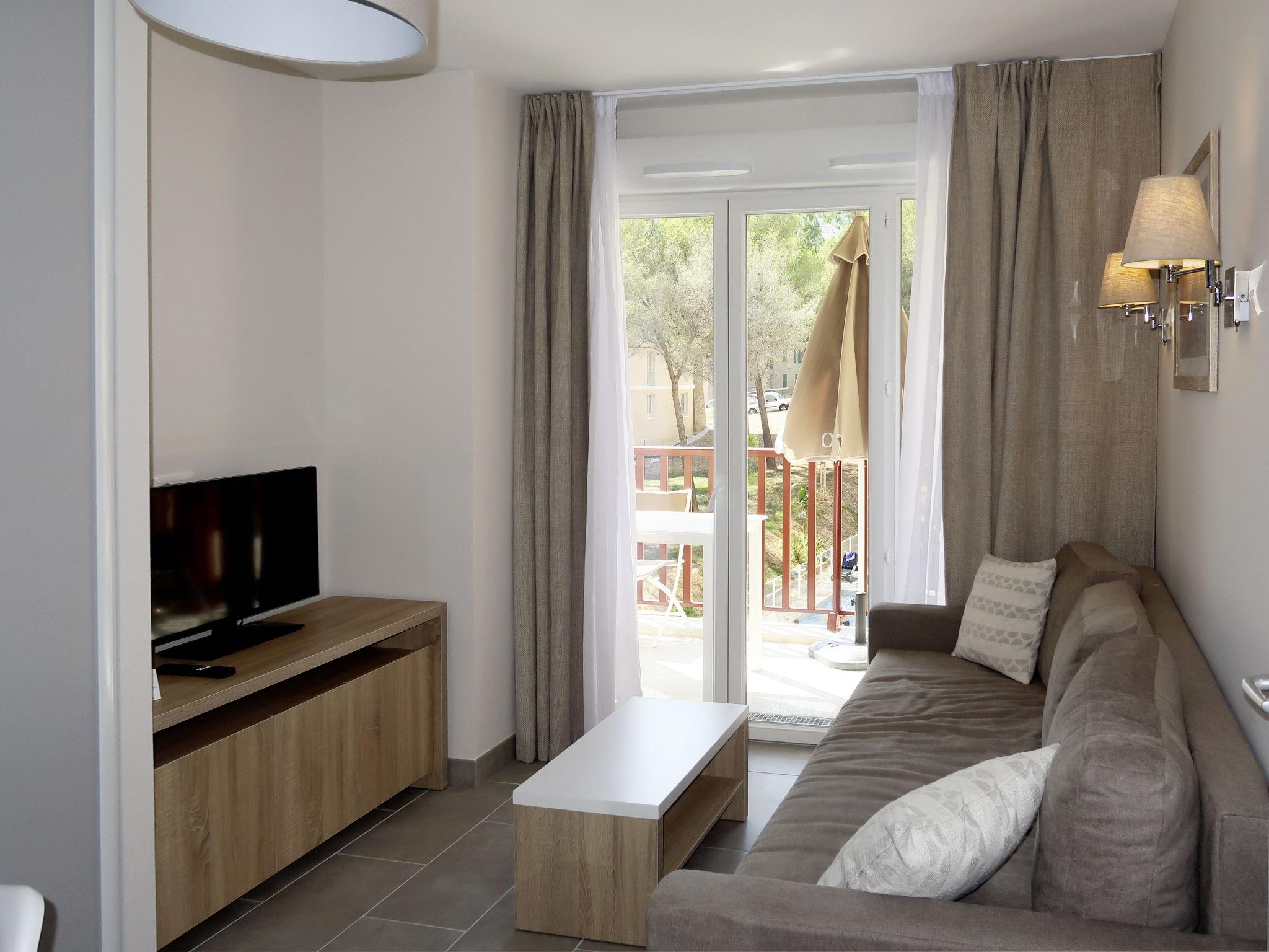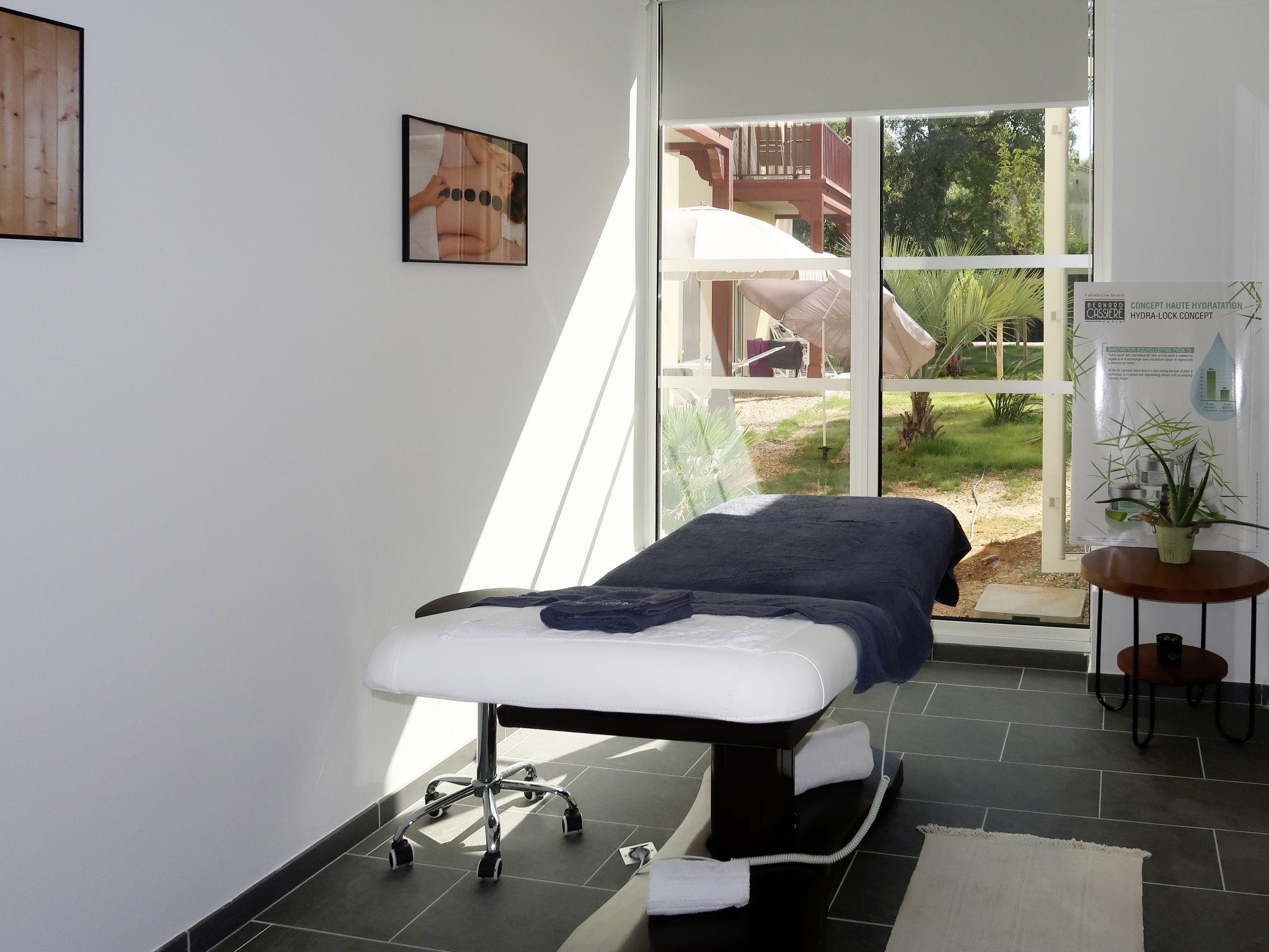 Resort "Les Canissons", built in 2019. 95 apartments in the residence. 800 m from the centre of Cavalaire, 20 km from the centre of St. Tropez, 59 km from the centre of Toulon, 700 m from the sea. For shared use: property (fenced), swimming pool heated (7 x 20 m, depth 140 cm, seasonal availability: 15.Apr. - 15.Oct.). Children's pool, outdoor shower, boccia. In the complex: reception, breakfast room, sauna, fitness room, massage (extra). Steam room, washing machine, tumble dryer (for shared use, extra). Breakfast (extra). Parking (limited number of spaces), communal covered parking. Shop 300 m, restaurant, sandy beach "Bonporteau" 700 m. Please note: residence with electric gates. The photograph shows a typical example. The holiday properties may differ in living space, floorplan, equipment and furnishing.