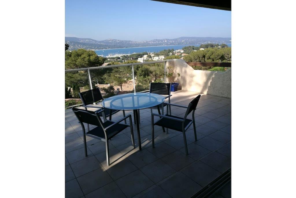 Enjoy the fantastic view over the Bay of Cavalaire from the roof terrace of our holiday apartment.