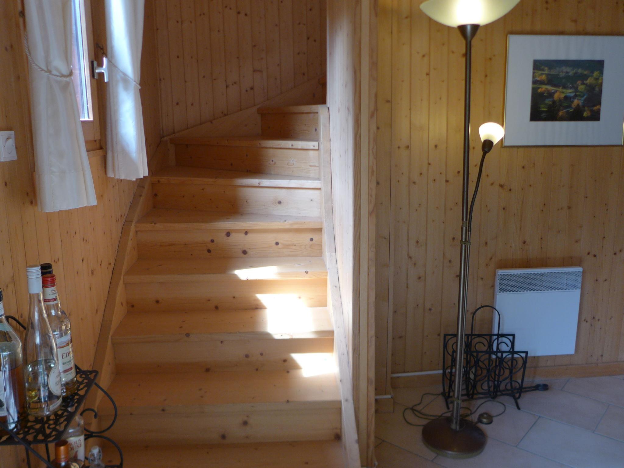 "Le Jet d'Eau 19", 6-room chalet 250 m2. Comfortable and tasteful furnishings: living/dining room with Scandinavian wood stove and TV. Exit to the terrace. 1 room with 1 double bed (2 x 90 cm, length 200 cm), shower/WC. Kitchen (oven, dishwasher, 4 ceramic glass hob hotplates, toaster, kettle, freezer, electric coffee machine, Capsules for coffee machine (Nespresso)). On the lower ground floor: 1 room with 1 double bed (2 x 90 cm, length 200 cm), bath/WC, double hand-basin and with corner bath. Upper floor: 2 rooms, each room with 1 double bed (90 cm, length 200 cm), shower/WC. Exit to the balcony. 1 room with 1 bed (90 cm, length 200 cm), shower/WC. Balcony, terrace. Terrace furniture. Very beautiful view of the mountains and the countryside. Facilities: washing machine, dryer, iron, hair dryer. Internet (WiFi, free). Please note: non-smokers only. Smoke alarm. 7406300069008