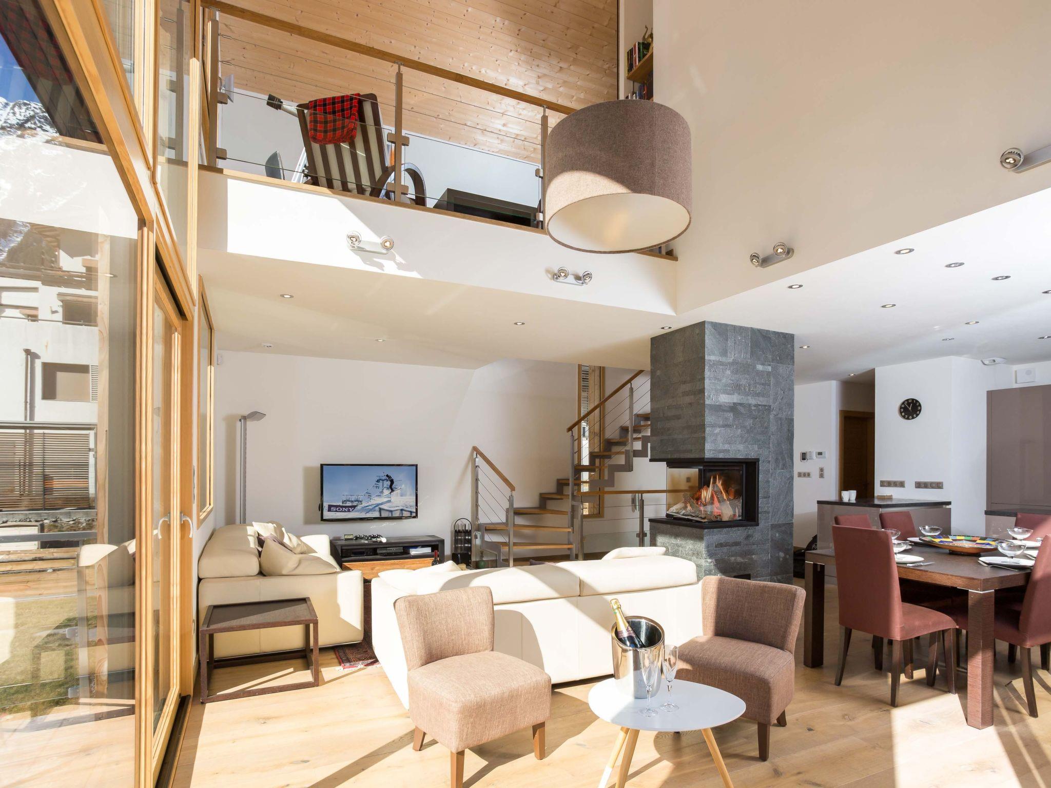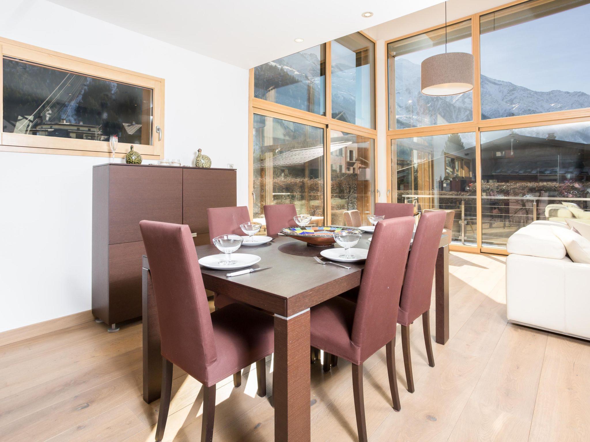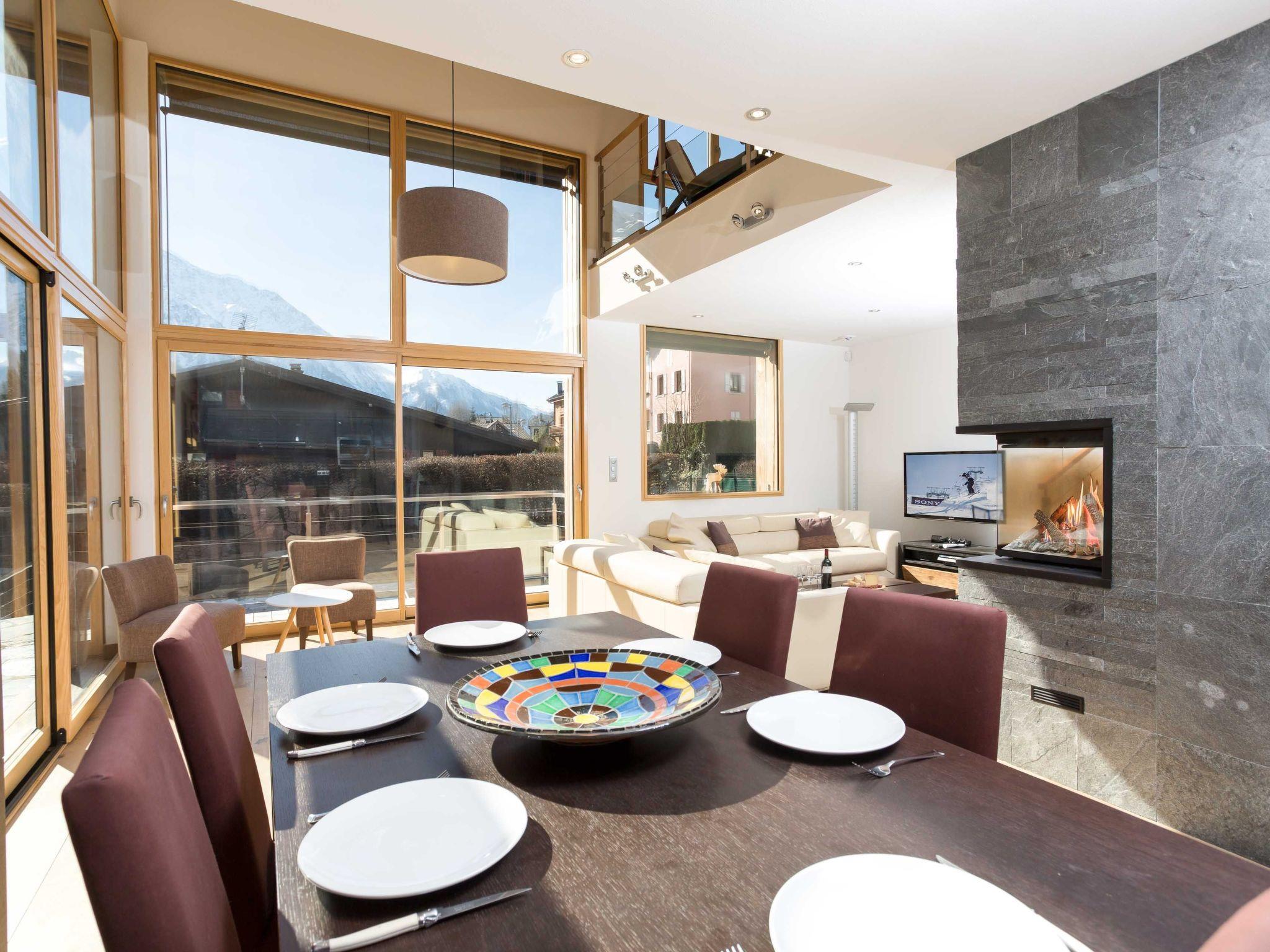 Chalet Raphael is a stunning, newly built, luxury Chamonix chalet, located right in the centre of Chamonix town centre, which benefits from a sunny terrace and garden facing Mont Blanc. The large picture windows from the living area and spacious terrace and garden offer unrivalled views of Mont Blanc, Aiguille du Midi and Glacier des Bossons. The Chamonix chalet has 4 bedrooms and 3 bathrooms, plus open-plan living and dining area centred around a log fire, as well as a peaceful separate reading snug on the first floor. The kitchen is well-equipped to make your stay comfortable, with oven / microwave, raclette and Nespresso coffee machine, and the dining table seats 8. There is a telescope provided at Chalet Raphael for your enjoyment in the living room, as well as French satellite TV channels, Apple TV, Playstation 4 and DVD player. There are DVDs and CDs to choose from, and an upright piano.The lower ground level also offers gym equipment for your use and there is ski storage in the garage, while the driveway offers external parking.