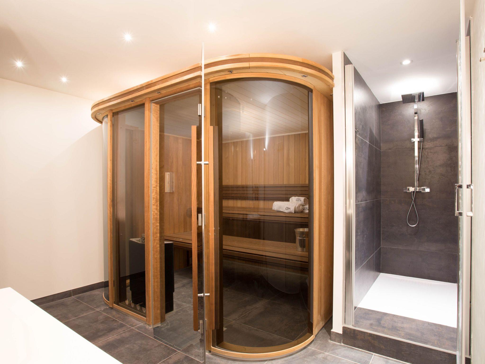 The Chamonix chalet’s master bedroom is a sumptuous retreat for any couple with its comfortable double bed, walk-in wardrobe and ensuite bathroom. There are three additional bedrooms which can be made up as doubles or twin configurations to suit your group, 2 on the first floor and one on the ground floor. Finally, the cinema room on the lower ground floor has four clever stowaway bunk beds – complete with individual plug and USB sockets for convenient charging of portable devices! On the ground floor, you'll also find the sauna which is large enough for 8-10 people to enjoy at once.