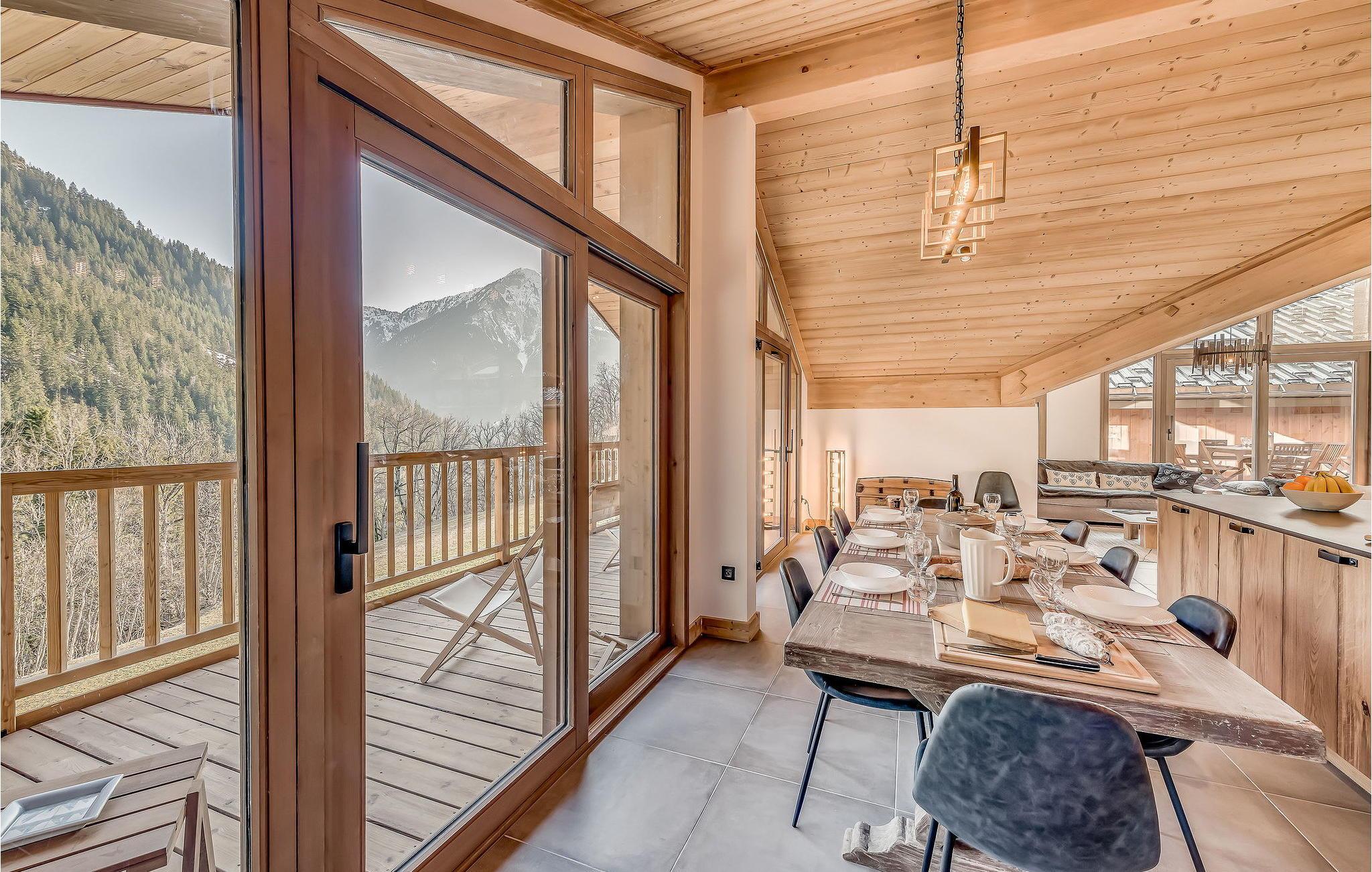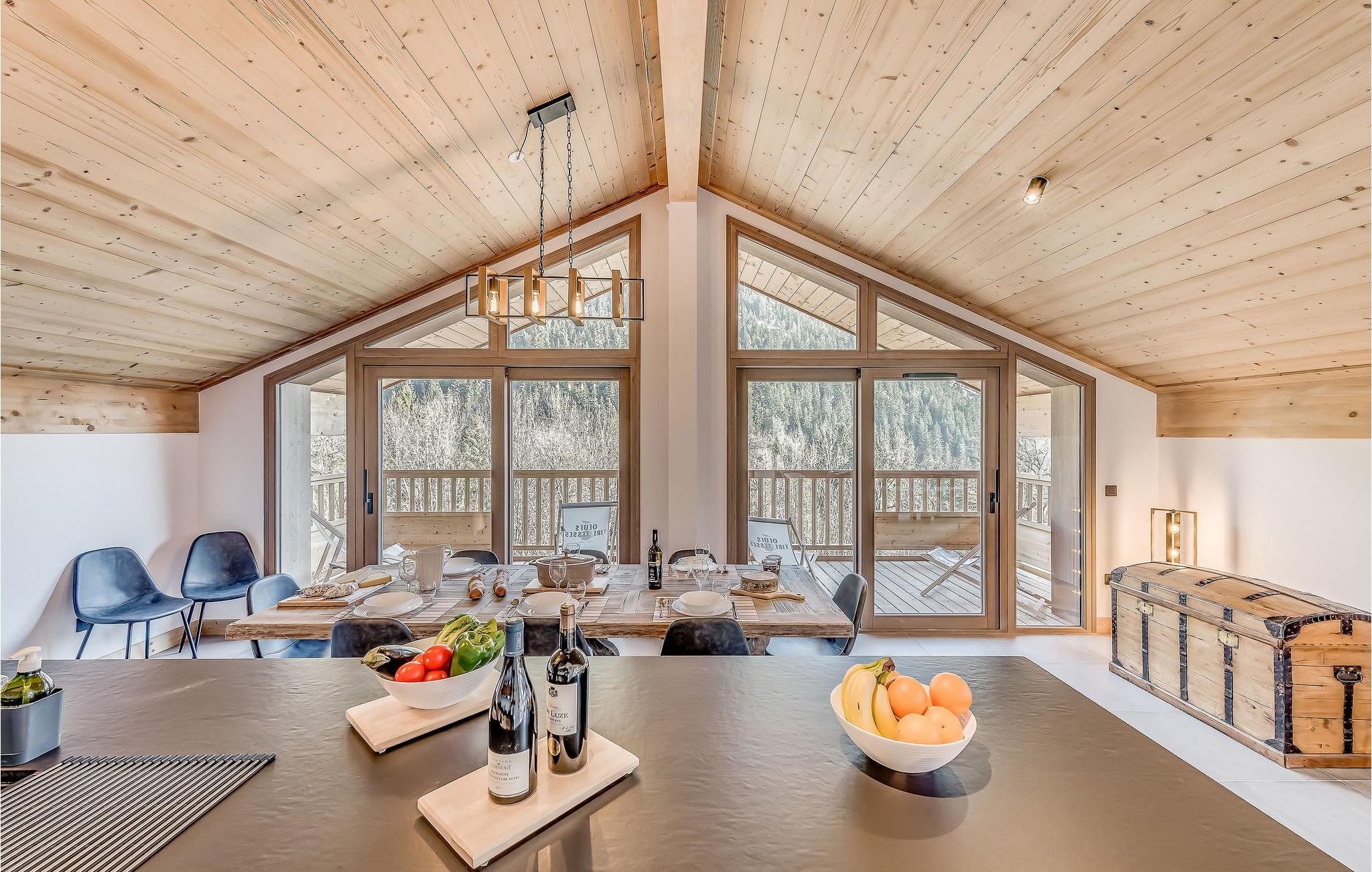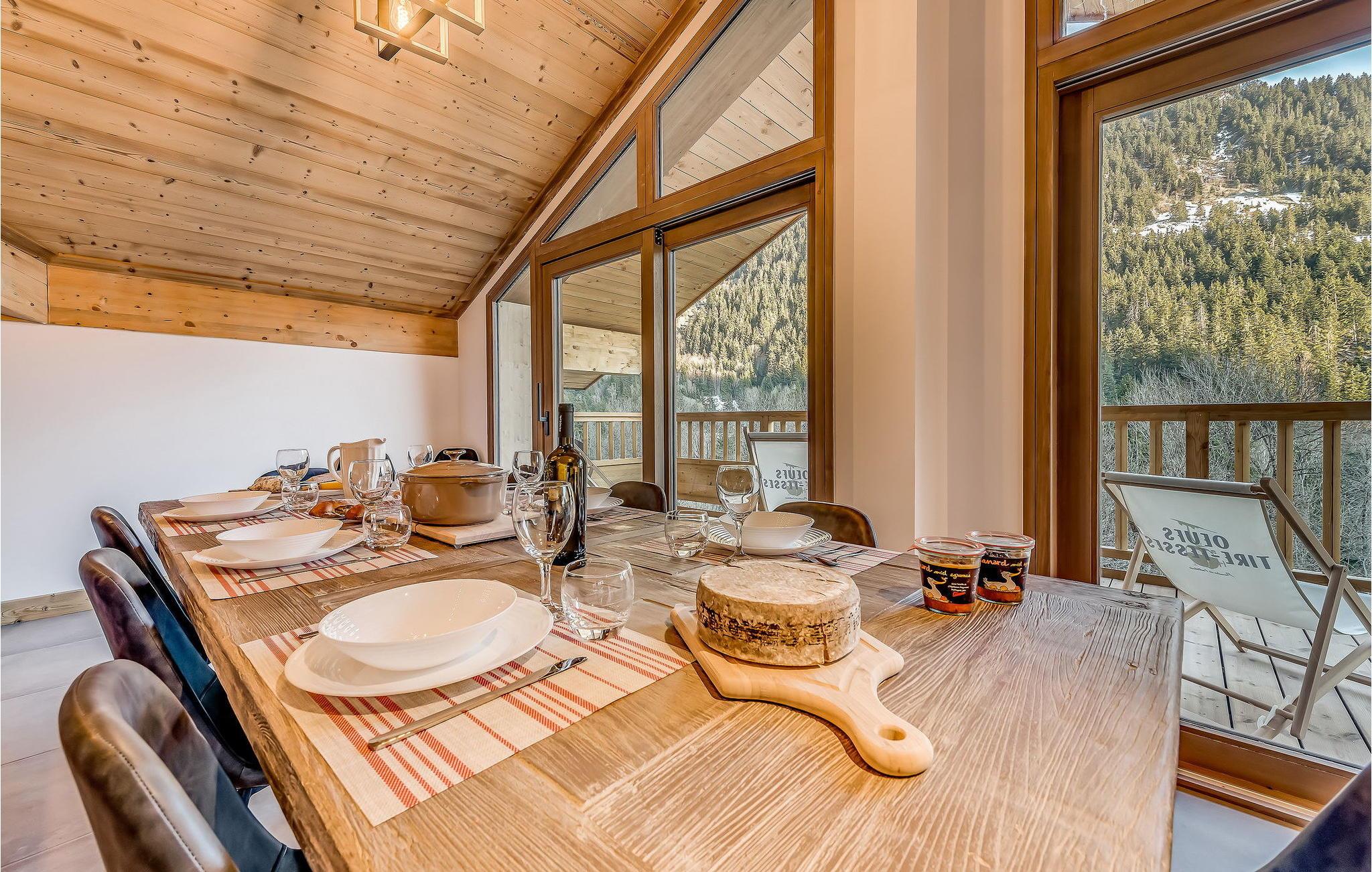 Oppdag en luksuriøs ferieleilighet i Champagny en Vanoise, som ligger i skiområdet Paradiski og byr på god plass og savoyardisk sjarm. Denne utsøkte maisonette-leiligheten er innbegrepet av komfort og eleganse. På plan 0 er det to soverom, hvorav det ene har balkong og fantastisk utsikt over landsbyen. Opp en sikker tretrapp til plan 1 finner du et romslig oppholdsrom med en koselig stue, spiseplass og åpent kjøkken fullt utstyrt med moderne bekvemmeligheter. På dette nivået finner du også store terrasser og balkonger med panoramautsikt over fjellene. Utendørsområdene har et boblebad som er perfekt for avslapping. I denne etasjen finner du fire soverom med eget bad, hvorav to har sjarmerende skråtak som gir rommet karakter. Det er to parkeringsplasser i parkeringskjelleren, et skirom med støveltørker og praktisk tilgang til skyttelbuss til taubanen rett foran boligen. Barneseng og barnestol kan ordnes på forespørsel ved bestilling. Rengjøring av leiligheten er inkludert, forutsatt at den leveres tilbake i noenlunde ren stand. Nyt et luksuriøst opphold i dette velutstyrte ferieparadiset. Leiligheten ligger ved inngangen til Champagny, og har en ideell beliggenhet for skikjøring, afterski, vinter- og sommerturer og terrengsykling. Alle lokale butikker ligger i landsbyen, ca. 500 meter unna, i gangavstand. I landsbyen Bozel (5 km) finner du alt du måtte savne i Champagny. Det vakre langrennsområdet i Champagny le Haut vil glede langrennsløpere. Syklister vil glede seg over de mange fjellovergangene i området. Skiområdet Paradiski er direkte tilgjengelig med gondol når du ankommer La Grande Plagne eller Plagne Bellecôte. Skiområdet Three Valleys med skistedene Courchevel, Méribel, Les Ménuires og Val Thorens ligger 20 km unna. Svømmebassenget og tennisbanene ligger 200 meter fra boligen.