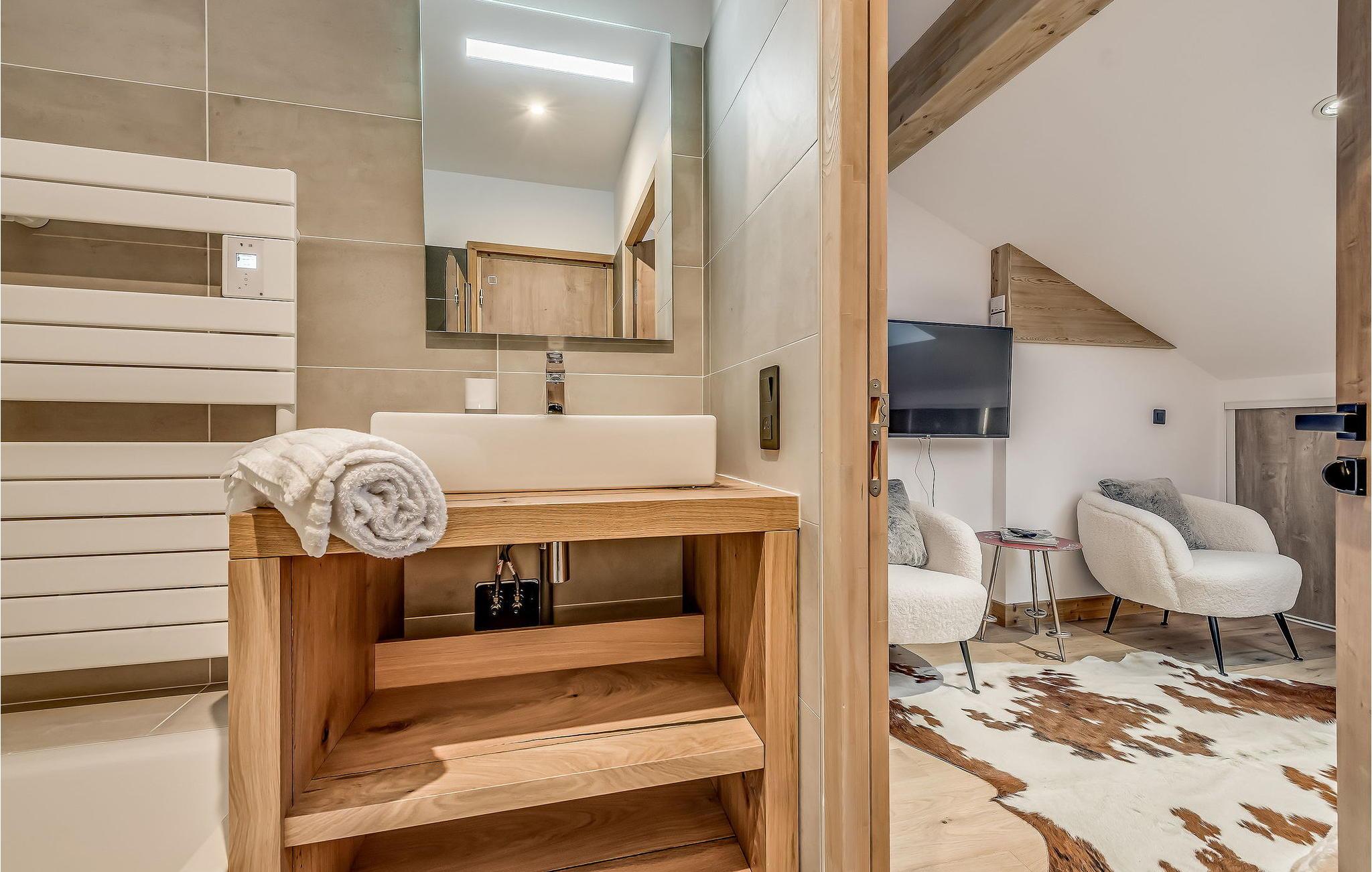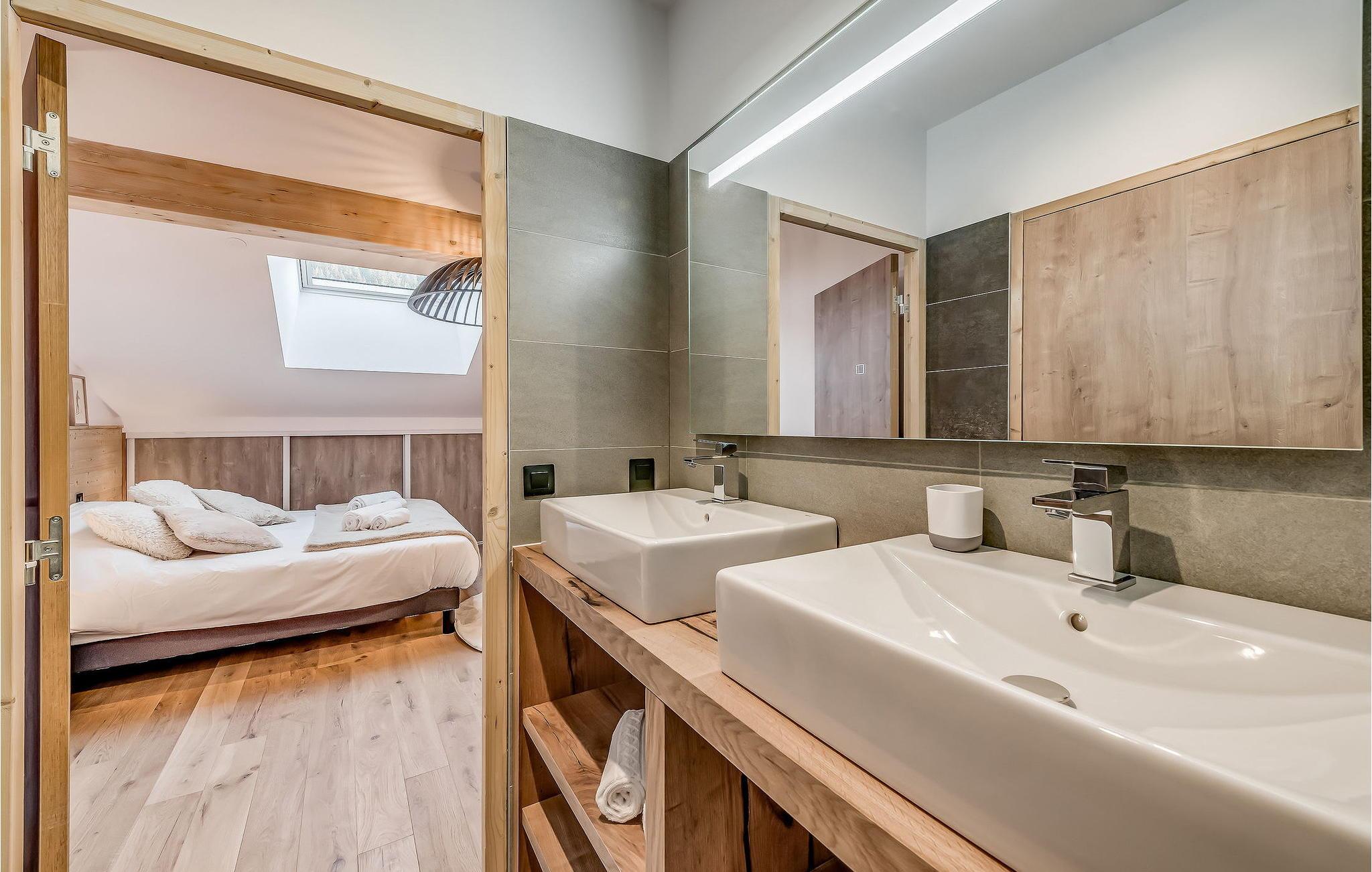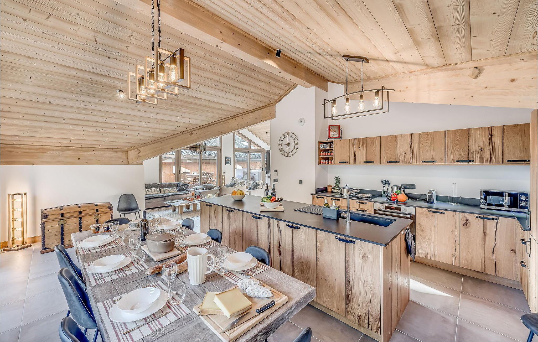 Oppdag en luksuriøs ferieleilighet i Champagny en Vanoise, som ligger i skiområdet Paradiski og byr på god plass og savoyardisk sjarm. Denne utsøkte maisonette-leiligheten er innbegrepet av komfort og eleganse. På plan 0 er det to soverom, hvorav det ene har balkong og fantastisk utsikt over landsbyen. Opp en sikker tretrapp til plan 1 finner du et romslig oppholdsrom med en koselig stue, spiseplass og åpent kjøkken fullt utstyrt med moderne bekvemmeligheter. På dette nivået finner du også store terrasser og balkonger med panoramautsikt over fjellene. Utendørsområdene har et boblebad som er perfekt for avslapping. I denne etasjen finner du fire soverom med eget bad, hvorav to har sjarmerende skråtak som gir rommet karakter. Det er to parkeringsplasser i parkeringskjelleren, et skirom med støveltørker og praktisk tilgang til skyttelbuss til taubanen rett foran boligen. Barneseng og barnestol kan ordnes på forespørsel ved bestilling. Rengjøring av leiligheten er inkludert, forutsatt at den leveres tilbake i noenlunde ren stand. Nyt et luksuriøst opphold i dette velutstyrte ferieparadiset. Leiligheten ligger ved inngangen til Champagny, og har en ideell beliggenhet for skikjøring, afterski, vinter- og sommerturer og terrengsykling. Alle lokale butikker ligger i landsbyen, ca. 500 meter unna, i gangavstand. I landsbyen Bozel (5 km) finner du alt du måtte savne i Champagny. Det vakre langrennsområdet i Champagny le Haut vil glede langrennsløpere. Syklister vil glede seg over de mange fjellovergangene i området. Skiområdet Paradiski er direkte tilgjengelig med gondol når du ankommer La Grande Plagne eller Plagne Bellecôte. Skiområdet Three Valleys med skistedene Courchevel, Méribel, Les Ménuires og Val Thorens ligger 20 km unna. Svømmebassenget og tennisbanene ligger 200 meter fra boligen.