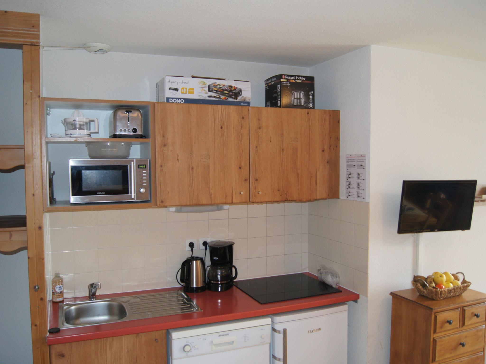 "V du Bachat Joubarbes A", 1-room studio 34 m2, on the ground floor. Object suitable for 6 adults. Living room with 1 sofabed and 1 x 2 bunk beds, 1 double bed, 1 pull-out bed and TV. Kitchen, open kitchen (dishwasher, toaster, kettle, microwave, electric coffee machine). Bath/WC. Balcony. View of the mountains. Facilities: washing machine, sauna. Please note: non-smokers only. 1 pet/ dog allowed. Smoke alarm. Offer by a commercial proprietor according to Art. 155, IV, CGI