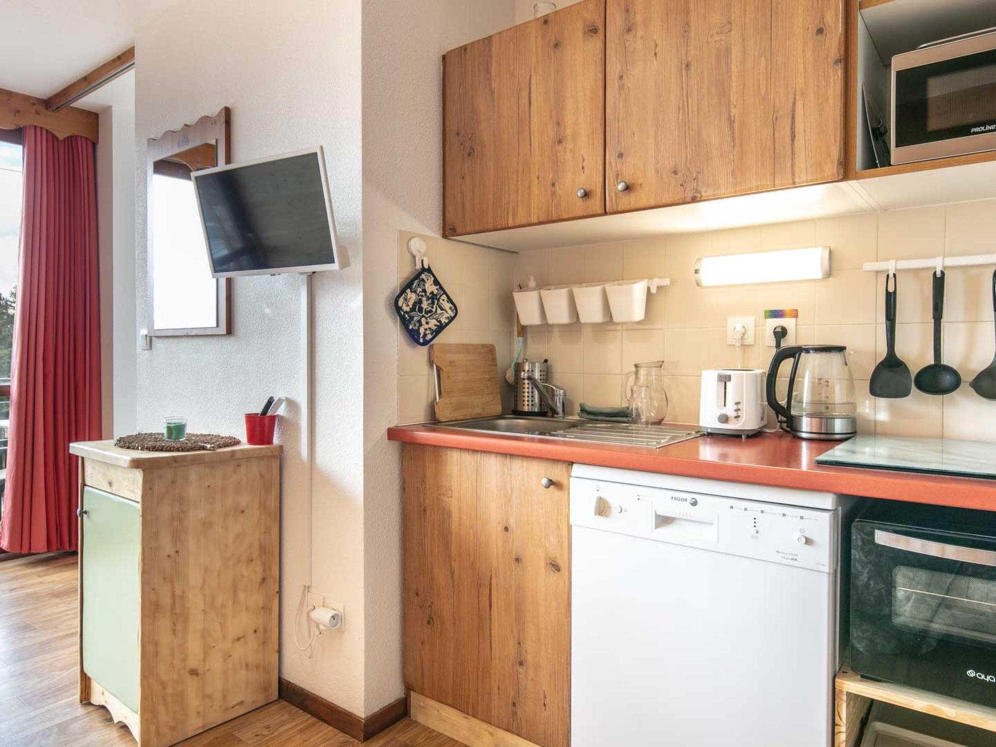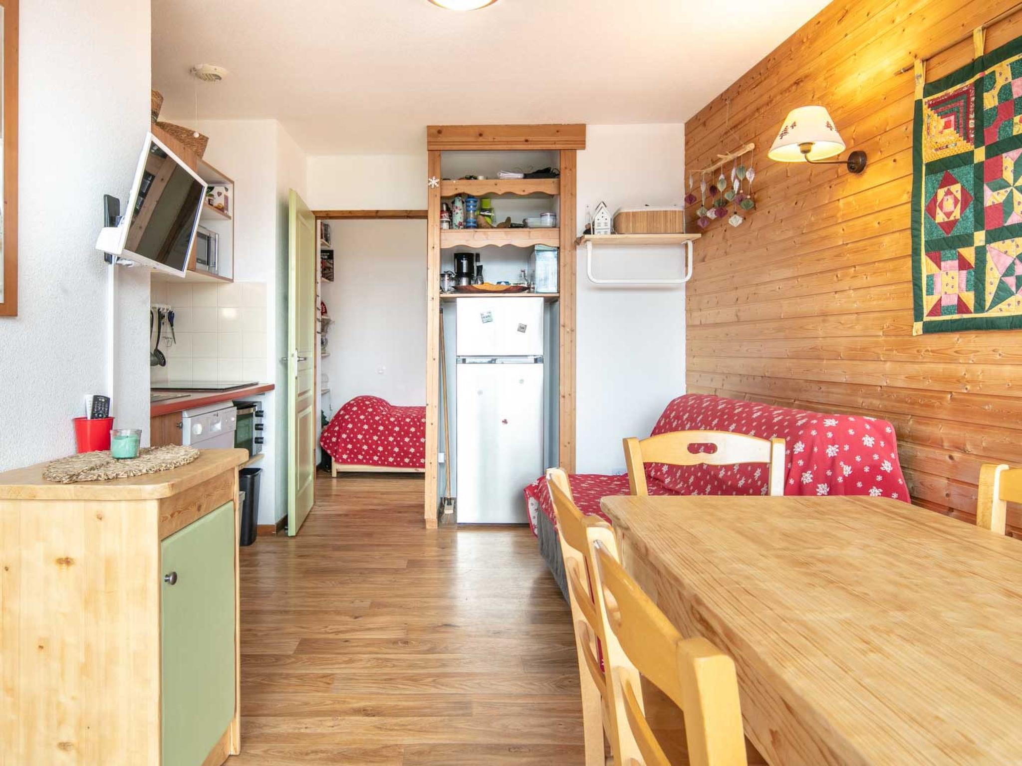 "V du Bachat Droseras A", 1-room studio 33 m2 on 1st floor. Object suitable for 5 adults. Living room with 1 bed, 1 sofabed, 1 double bed, 1 pull-out bed, TV and DVD. Kitchen (2 hot plates, oven, dishwasher, toaster, kettle, microwave, freezer, electric coffee machine). Bath/WC. Terrace 11 m2. Please note: non-smokers only. Offer by a commercial proprietor according to Art. 155, IV, CGI