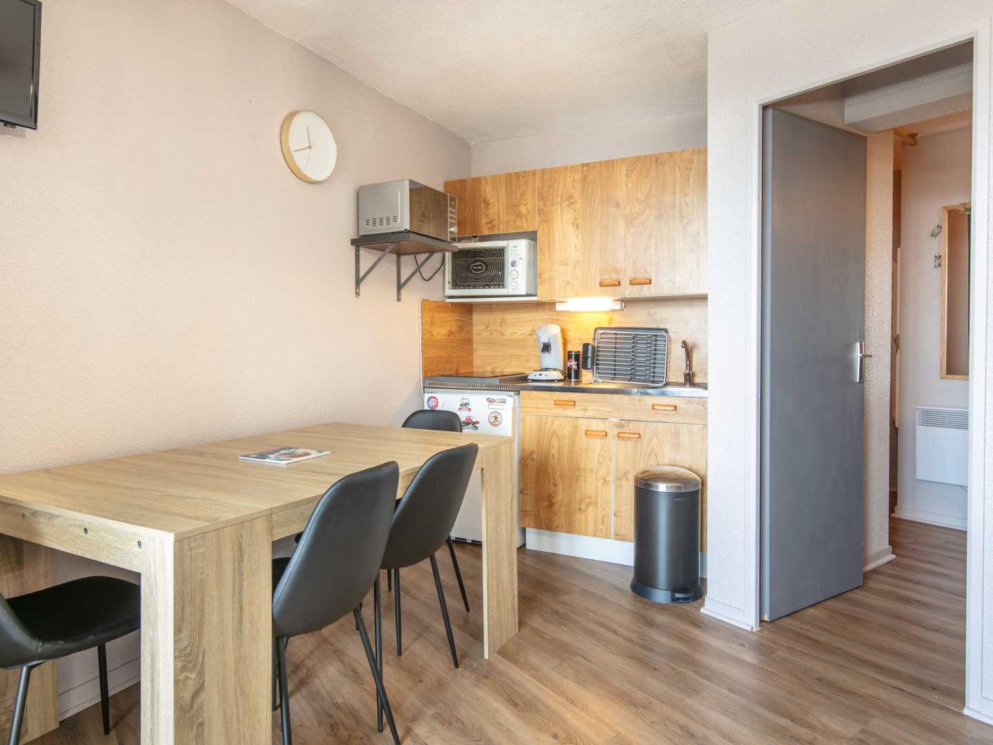 "Les Marmottes", 2-room apartment 28 m2 on 3rd floor. Object suitable for 6 adults. 1 room with 1 double bed and TV. Living room with 1 sofabed and 1 x 2 bunk beds, 1 pull-out bed. Open kitchen (4 hot plates, oven, toaster, kettle, microwave, electric coffee machine). Bath/WC. Balcony. View of the mountains. Facilities: Internet (WiFi, free). Please note: non-smokers only. Offer by a commercial proprietor according to Art. 155, IV, CGI