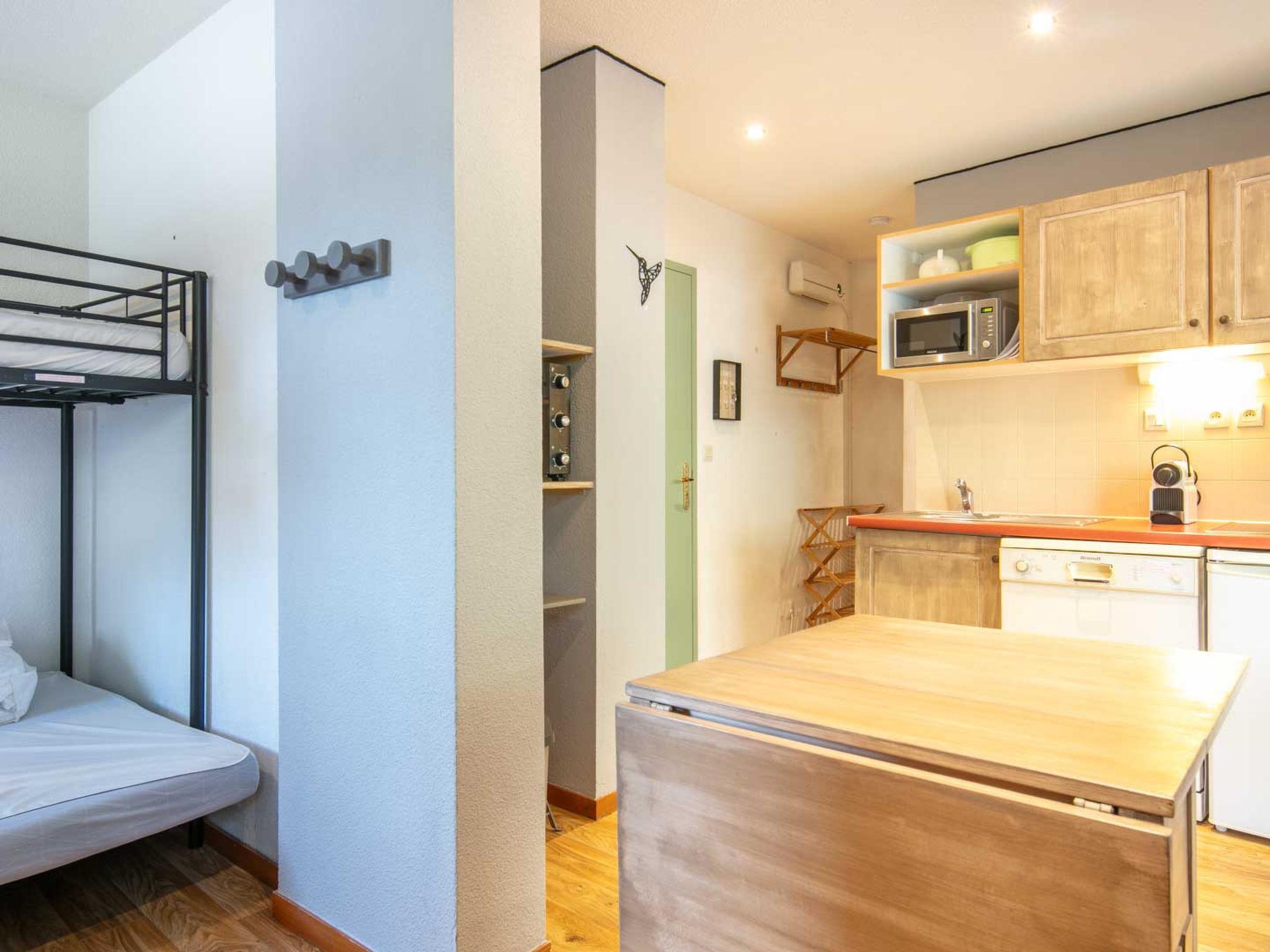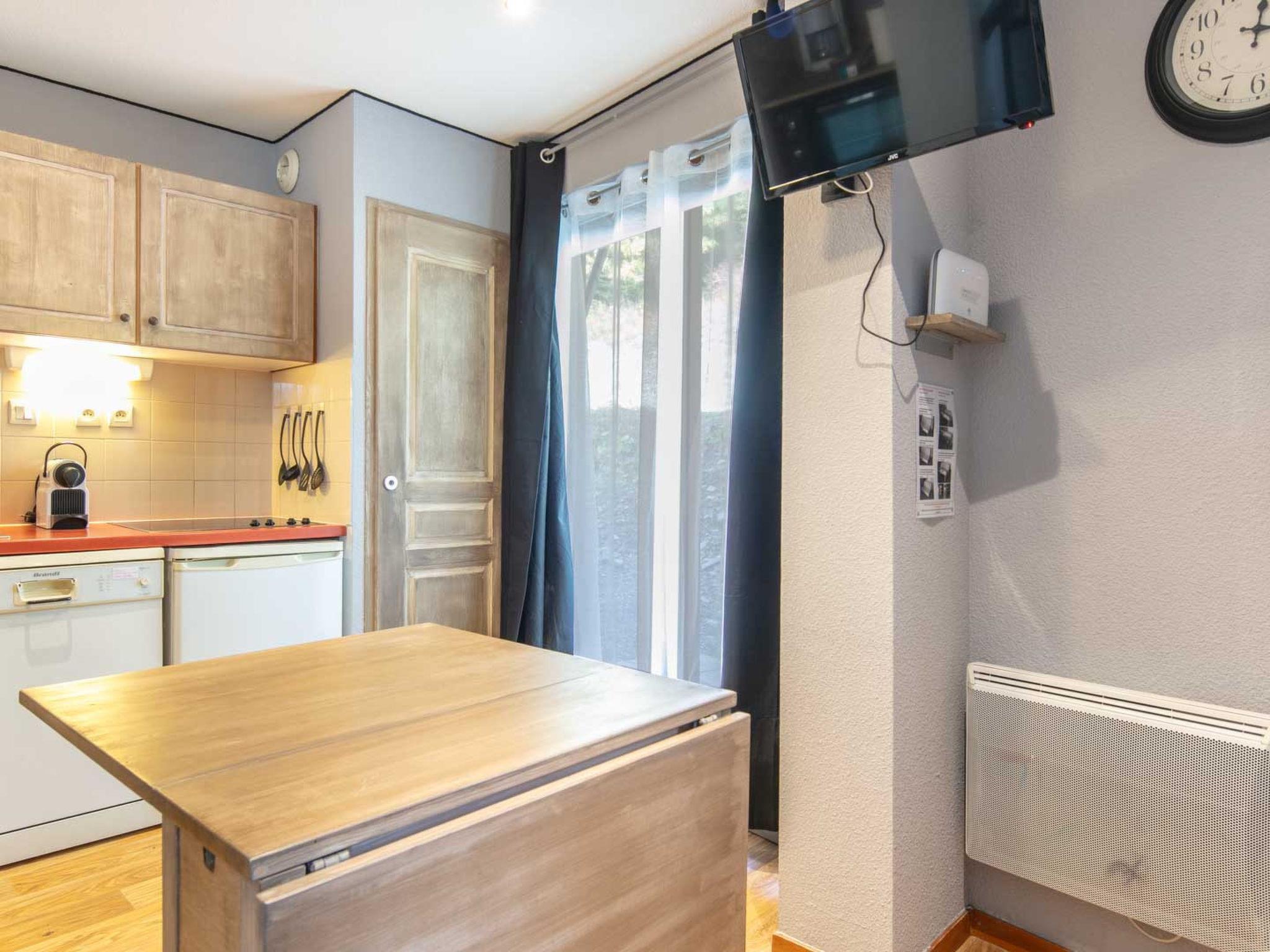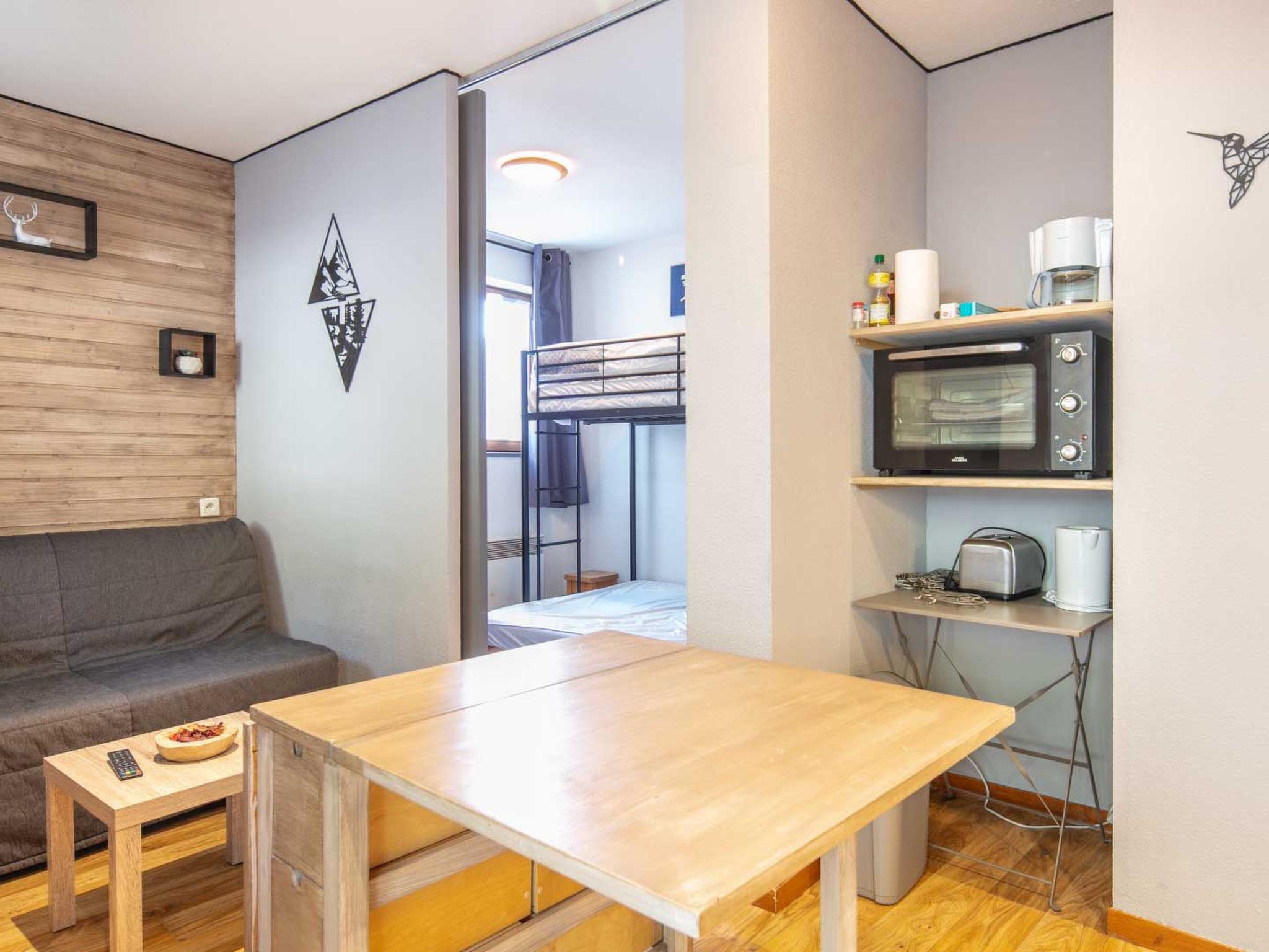 "V du Bachat Melezes E", 2-room apartment 30 m2, on the ground floor. Object suitable for 5 adults. 1 room with 1 x 2 bunk beds, 1 double bed and TV. Living room with 1 sofabed and 1 pull-out bed. Open kitchen (4 hot plates, oven, dishwasher, toaster, kettle, microwave). Bath/WC. Terrace. Facilities: Internet (WiFi, free). Please note: non-smokers only. 1 pet/ dog allowed. Smoke alarm. Offer by a commercial proprietor according to Art. 155, IV, CGI