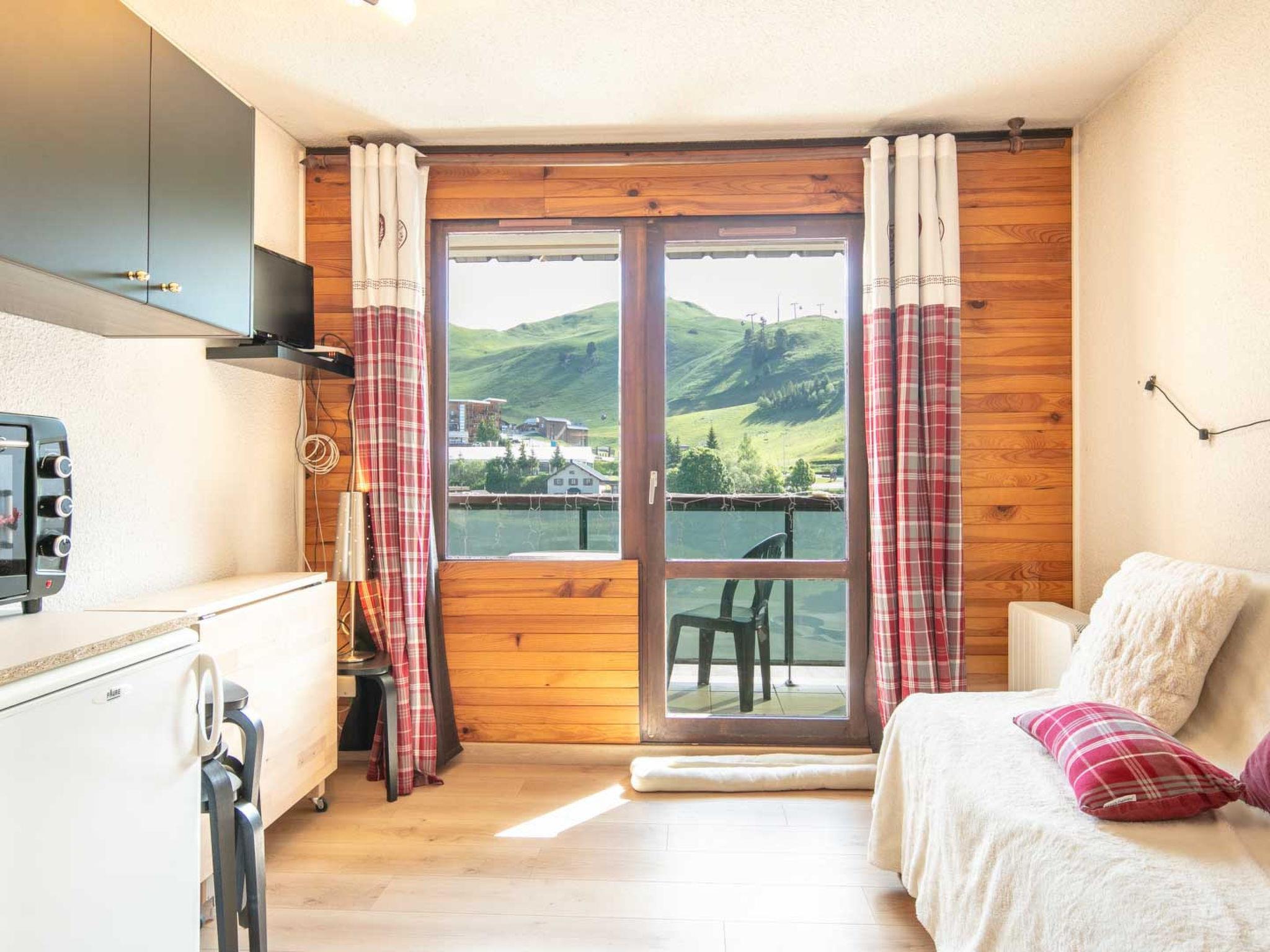 "LE Vernon", 1-room studio 20 m2 on 6th floor. Object suitable for 4 adults. Living room with 1 sofabed and 2 x 2 bunk beds, 1 pull-out bed and TV. Open kitchen (2 hot plates, dishwasher, toaster, kettle, microwave, electric coffee machine). Shower/WC. Balcony. View of the mountains and the ski run. Facilities: Internet (WiFi, free). Please note: non-smokers only. Offer by a commercial proprietor according to Art. 155, IV, CGI