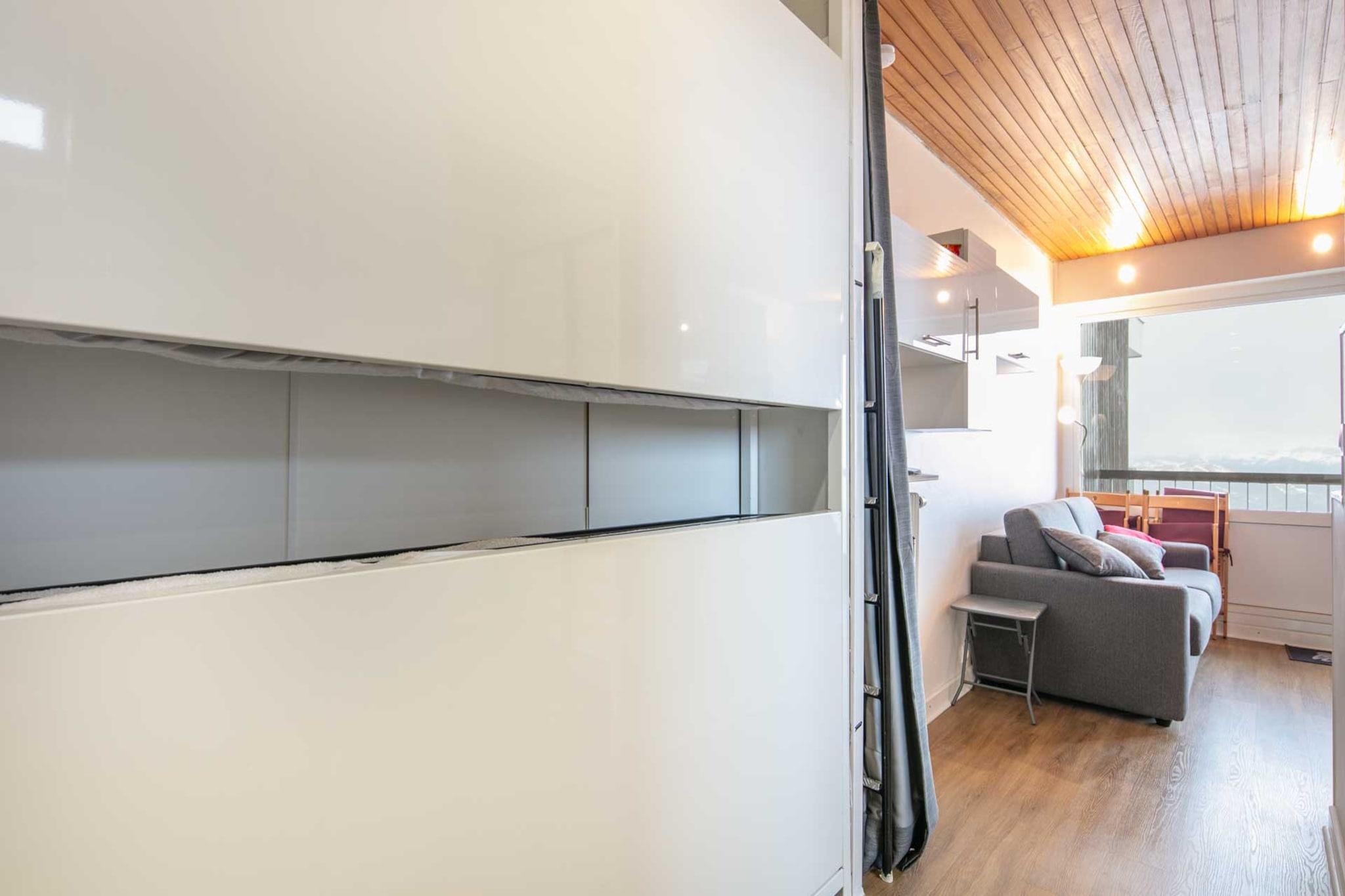 Denne fjellleiligheten ligger i Chamrousses høye høyde, og tilbyr en uslåelig beliggenhet for de som ønsker å ha bakkene rett utenfor døren. Huset er designet med en smart og effektiv planløsning, og huser komfortabelt gruppen din med et privat soverom med en dobbeltseng, mens stuen gir ekstra soveplass med en køyeseng og en sovesofa. Etter en dag med utforsking av toppene er heisen som tar deg opp til etasjen din et velkomment syn, og fører deg til et privat fristed helt for deg selv. Høydepunktet av oppholdet ditt er utvilsomt den private balkongen, hvor du kan puste inn den friske alpeluften og fortape deg i den vidstrakte fjellutsikten. Innvendig er huset et mesterverk av kompakt komfort, med et fullt utstyrt kjøkken som gjør selvhusholdning til en lek. Med oppvaskmaskin, mikrobølgeovn og kaffemaskin til din disposisjon kan du nyte en rolig morgenfrokost før du drar ut. Det moderne private badet med en forfriskende dusj sikrer at du alltid er klar for det neste eventyret. Eventyret venter bokstavelig talt rett utenfor døren din, da du bare er 200 meter fra Bachat Bouloud skiheis. Enten du jager morgenens første spor eller kommer tilbake etter en siste tur i solnedgangen, er overgangen uanstrengt. Når du ikke er på snøen, er de lokale smakene i Chamrousse bare en kort 250 meters spasertur unna på restauranter som Chez Georges eller Le Chamroussien. Dette røykfrie tilfluktsstedet kombinerer en førsteklasses beliggenhet med alle nødvendige moderne bekvemmeligheter, og er den ultimate basen for en minneverdig flukt i de franske Alpene.