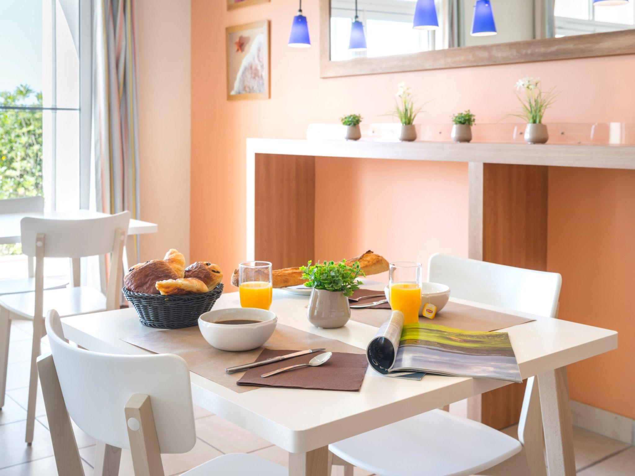 Resort "L'Estran", 2 storeys. 6 houses in the resort. 162 apartments in the residence. 4 km from the centre of Château d'Olonne, 4 km from the centre of Les Sables d'Olonne, 200 m from the sea. For shared use: property, well-kept garden with lawn, swimming pool heated (seasonal availability: 01.Apr. - 30.Sep.). Table tennis, children's playground. In the complex: reception, lift. Parking. Shop 200 m, bus stop "La Mouzinière" 2.8 km, sandy beach "du Tanchet" 2 km. Please note: the photograph shows a typical example. The holiday properties may differ in living space, floorplan, equipment and furnishing.