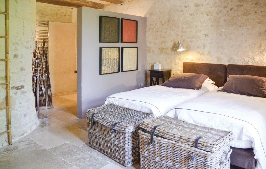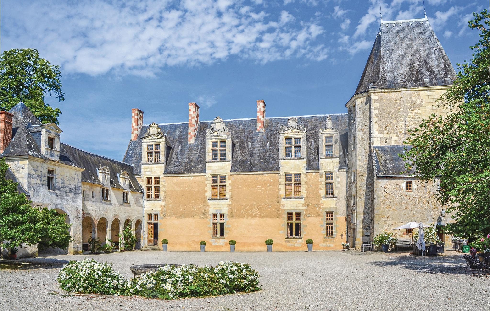 Dette huset fra 1400-tallet ligger på en høyde med utsikt over landskapet i nærheten av Azay-le-Rideau, ved siden av eiernes slott fra 1600-tallet. Originale detaljer, en imponerende trapp, bjelker og tregulv. Det attraktive interiøret har moderne bekvemmeligheter, lokale antikviteter. Eiendommen har skog, hager, store plener. Loire-dalen ligger rett utenfor døren med slottene Azay, Ussé, Villandry, Chinon, Langeais, Saumur og Tours. Over 100 sykkelstier langs elvebredden, sykler til leie. Salg av hjemmelaget mat, hester og esler på stedet. Du er på en gård i drift. Bratte trapper uten rekkverk.