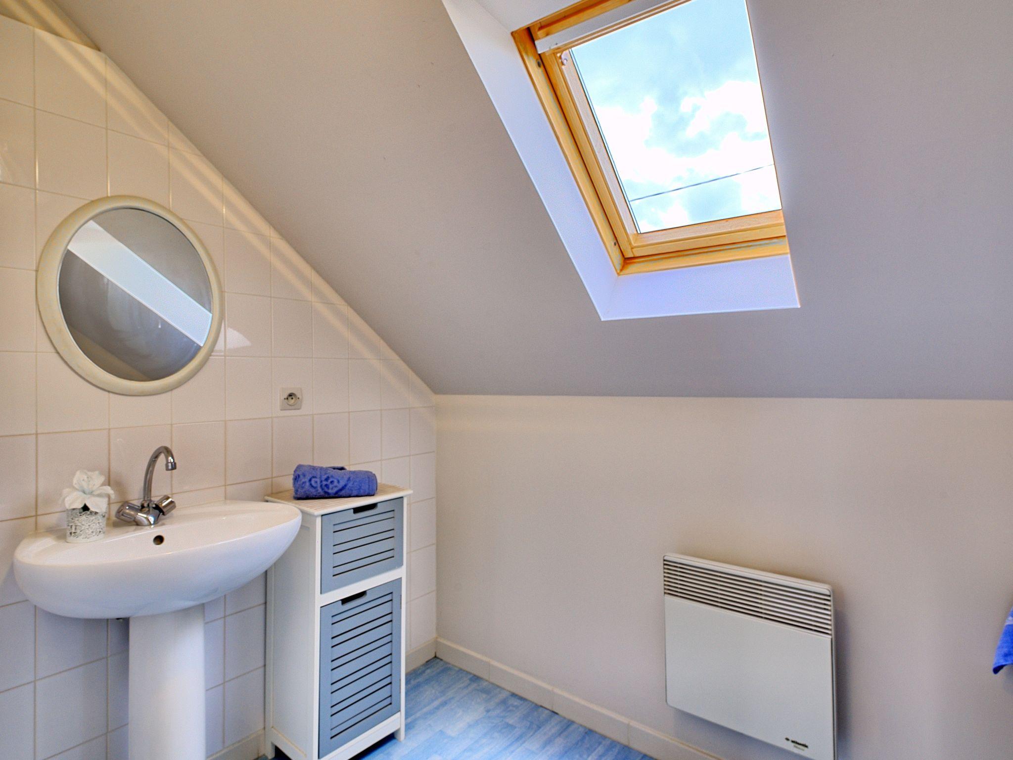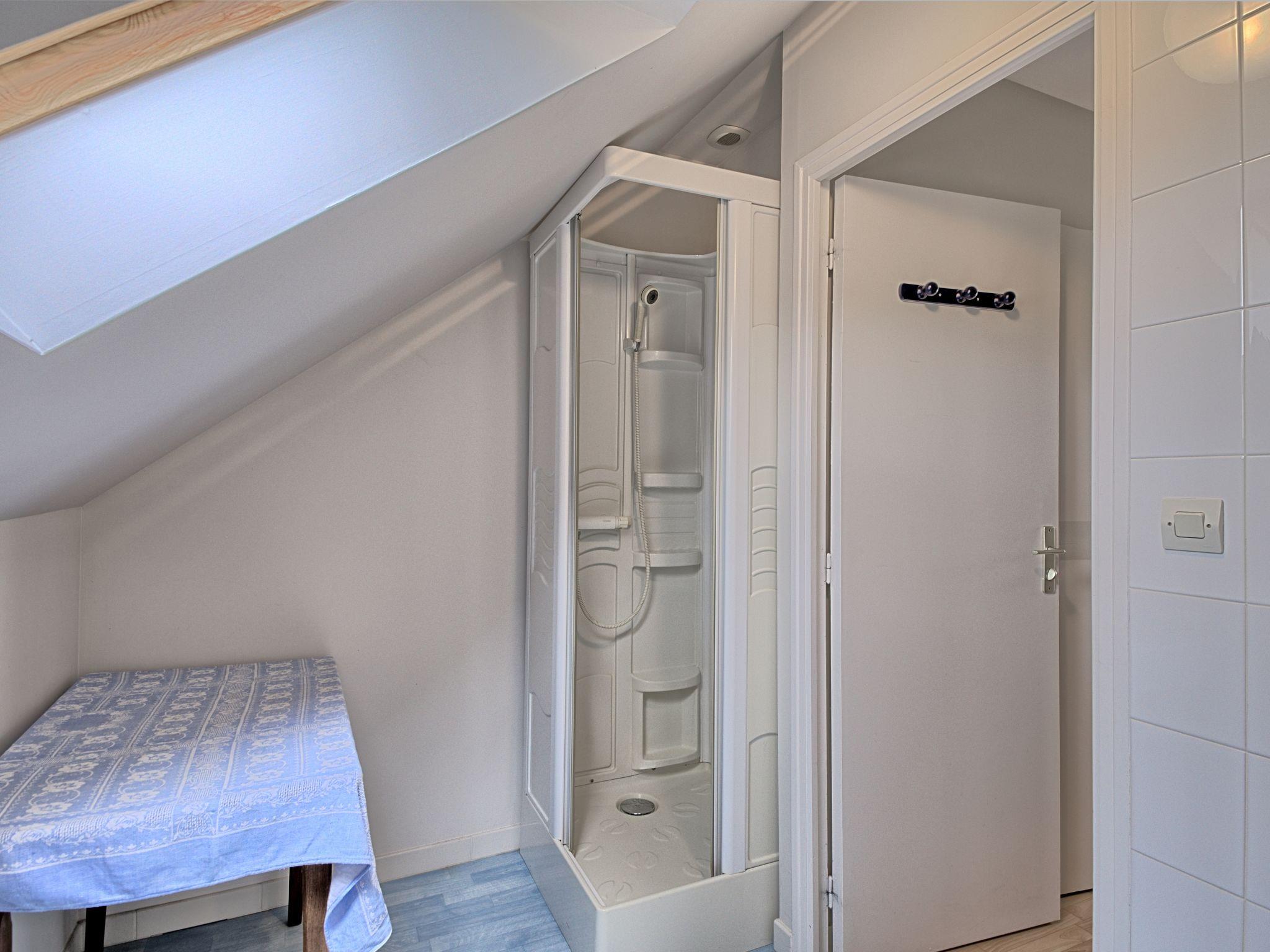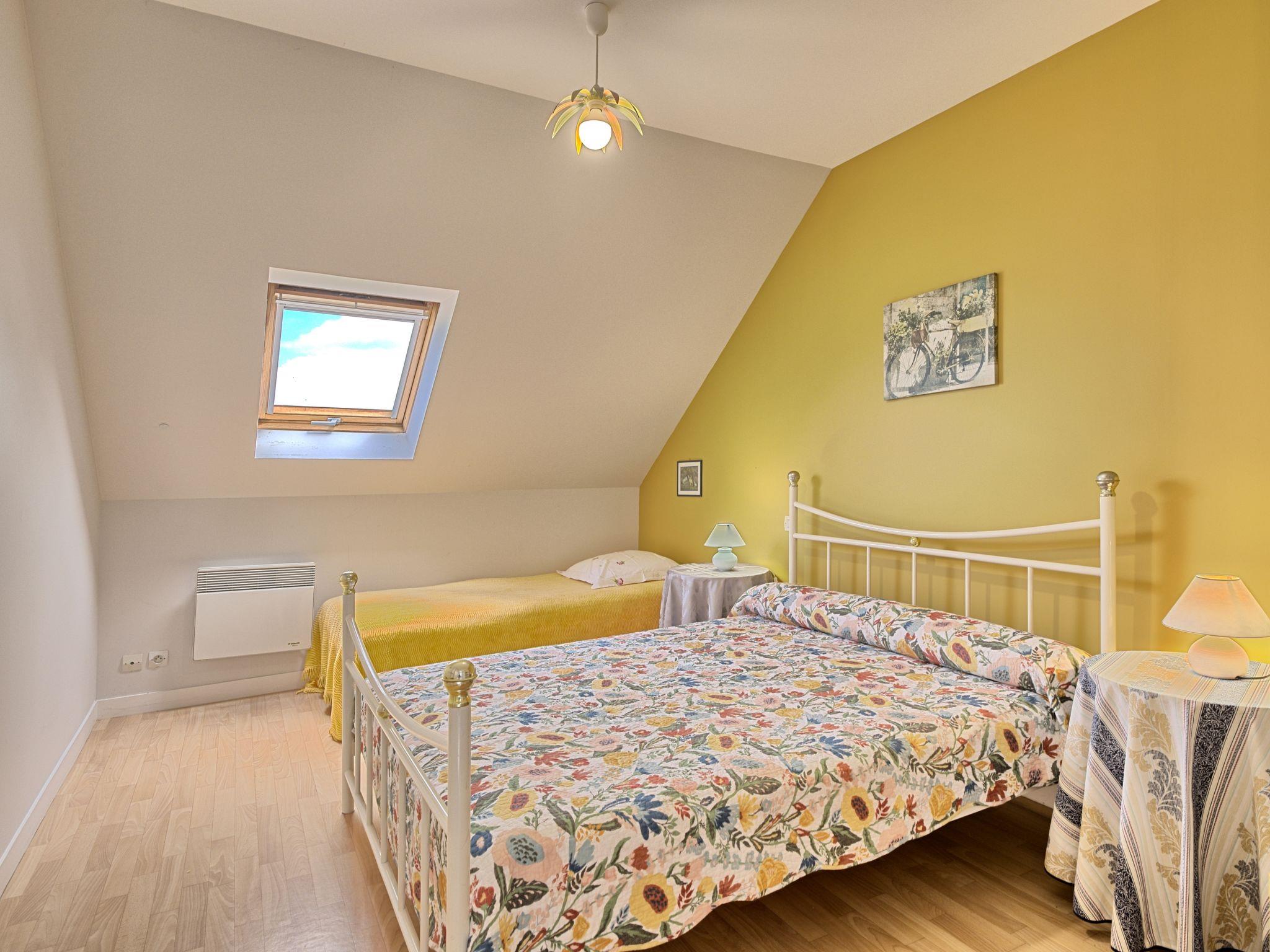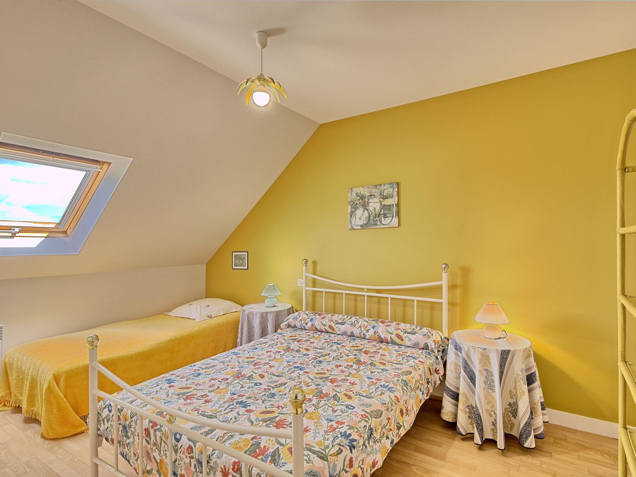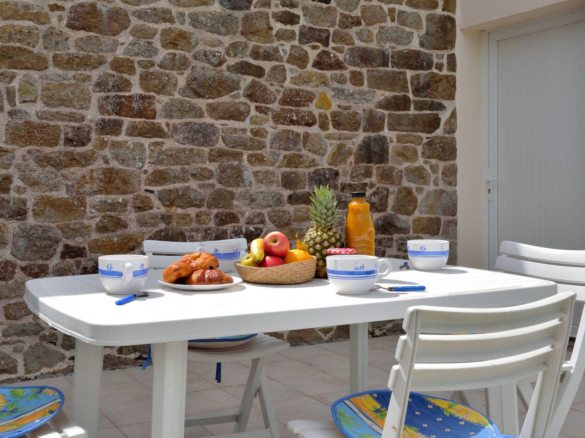"Au Coeur de la Baie", 2-room semi-detached house 40 m2 on 2 levels. Practical furnishings: living/sleeping room with 1 double sofabed, dining table and TV (flat screen), radio. Exit to the terrace. Kitchenette (1 hot plate, oven, 3 gas rings, toaster, microwave, freezer, electric coffee machine). Upper floor: 1 room with sloping ceilings with 1 bed (90 cm, length 190 cm), 1 french bed (140 cm, length 190 cm), separate WC and shower. Electric heating. Terrace. Terrace furniture, deck chairs (2). Beautiful view of the sea. Facilities: washing machine, iron, children's high chair, baby cot. Internet (WiFi, free). Please note: non-smoking house. Smoke alarm. Bed layout is flexible. There are more sleeping options available than the maximum number of people allowed which may, however, not be exceeded.