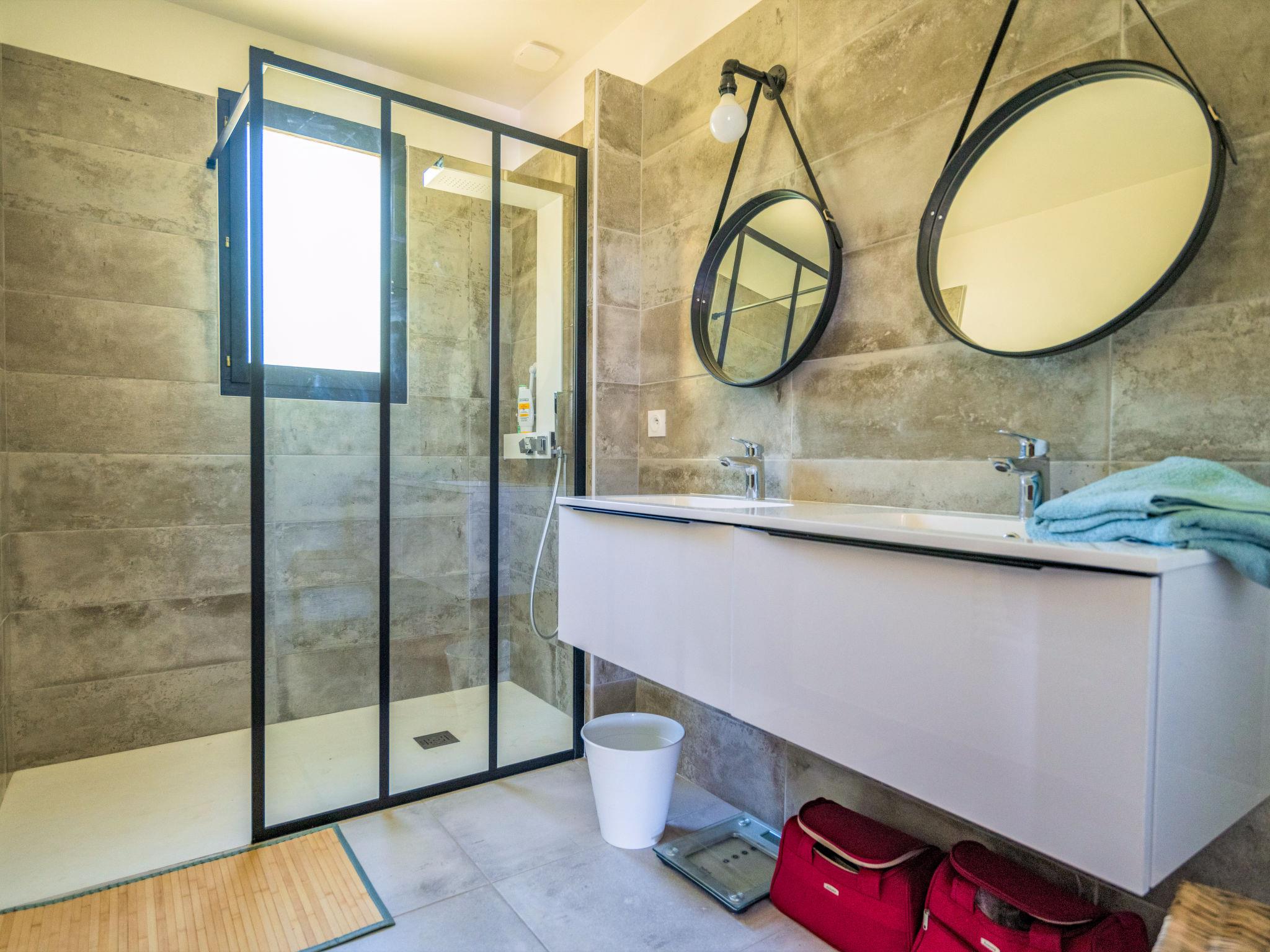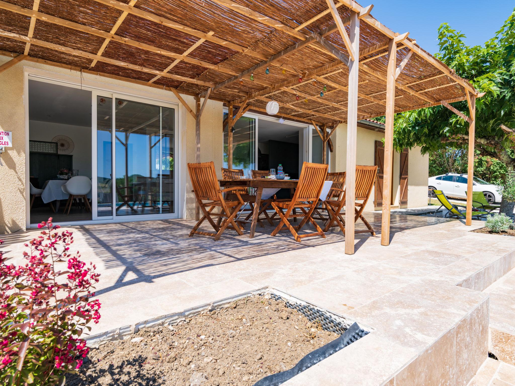 4-room house 100 m2. Object suitable for 4 adults + 2 children. Bright, fully renovated in 2023, beautiful and cosy furnishings: living/dining room with panoramic window with dining table. Exit to the terrace. Small lounge with TV (flat screen). 1 room with 1 french bed (160 cm, length 200 cm). Exit to the garden. 1 room with 1 french bed (140 cm, length 200 cm). 1 room with 2 beds (90 cm, length 200 cm). Open kitchen (oven, dishwasher, 3 induction hot plates, toaster, kettle, microwave, freezer, electric coffee machine). Shower, sep. WC, double hand-basin. Electric heating. Large terrace 90 m2, south-east facing position. Terrace furniture, barbecue (portable), deck chairs (6). Beautiful view of the countryside. Facilities: washing machine, iron, baby cot, hair dryer. Internet (WiFi, free). Please note: suitable for families. Non-smoking house. Smoke alarm. Offer by a private individual according to Art. 155, IV of CGI.