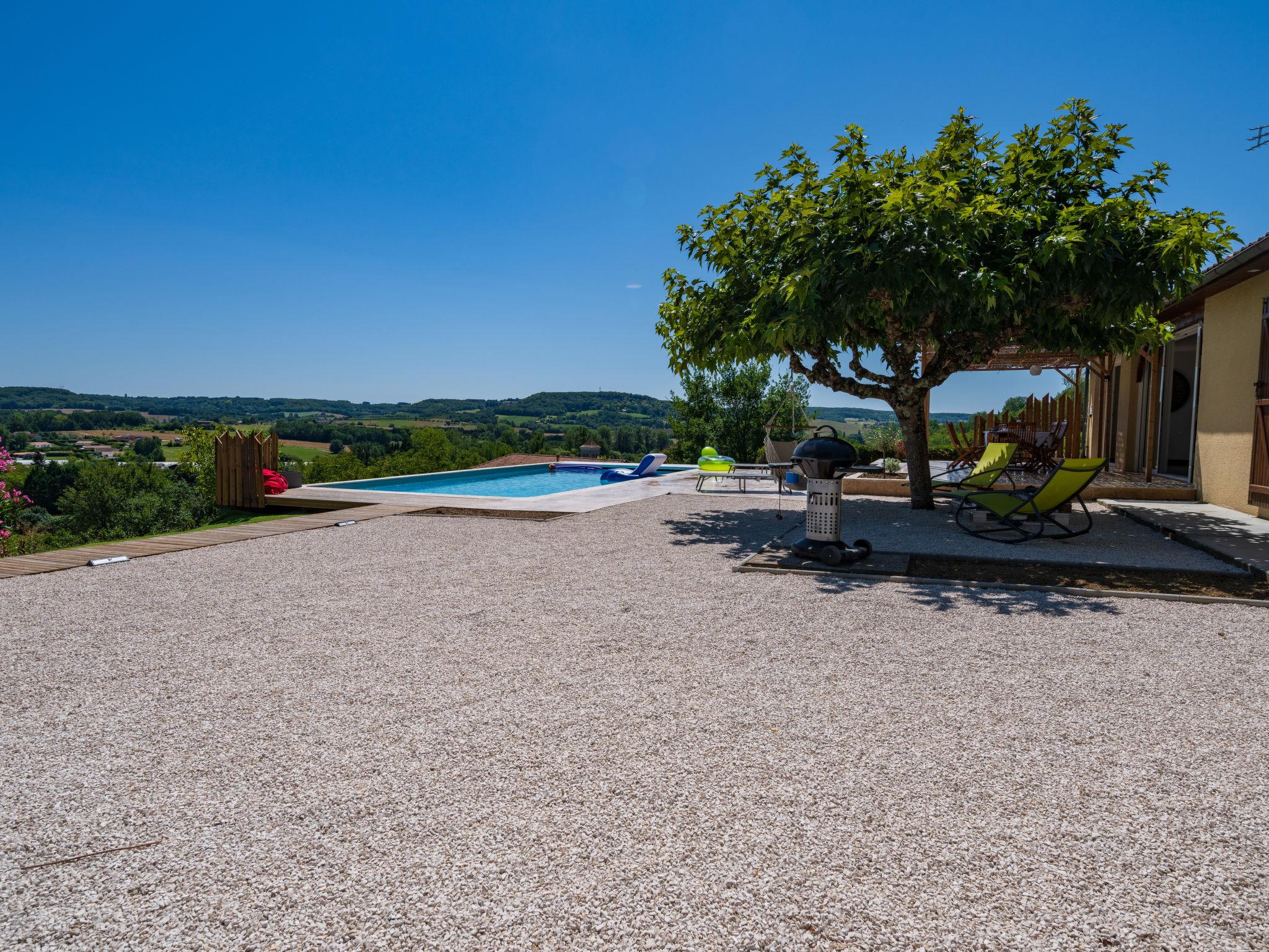 Single-family house "Bourgat". 250 m from the centre of Dausse, 6 km from the centre of Penne-d'Agenais, 10 km from the centre of Tournon-d'Agenais, on top of a hill. Private: natural state property 2'800 m2, swimming pool angular (11 x 6 m, depth 140 cm, seasonal availability: 01.May. - 30.Sep.) with internal staircase and shutter cover. Outdoor shower, terrace, parking (for 2 cars) at the house on the premises. Shop, grocery 300 m, supermarket 10 km, bus stop "St Sylvestre" 8 km. Golf course (18 hole) 24 km, riding stable 9 km. Nearby attractions: Villeneuve-sur-Lot 17 km, Montflanquin 26 km, Agen (centre parachutisme) 35 km, Cahors 53 km, Montauban 65 km, Non adapté pers à mobilité réduite.