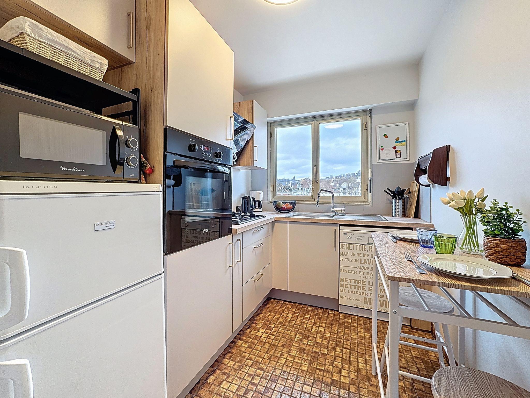 Trouville sur mer: Residence "Laetitia". 1.3 km from the sea, 1.3 km from the beach. In the complex: lift. (3 steps). Shop, grocery 200 m, supermarket 2.1 km, restaurant 200 m, bus stop "Gare routière" 600 m, railway station "Deauville-Trouville" 350 m, indoor swimming pool 1.2 km, thermal baths "Trouville sur mer" 1.1 km. Golf course (18 hole) 4.5 km, sailing school 2.5 km, tennis 1.3 km. Nearby attractions: Hippodrome Deauville La Touques 2.4 km, Honfleur 14 km, Mémorial de Caen 54 km, Plages du Débarquement D'Arromanches 86 km. The keys‘ handover takes place by the agency Interhome in Deauville.