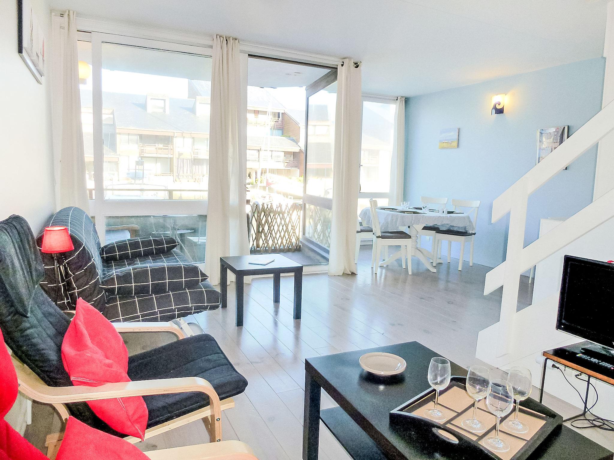 Deauville: Residence "Les Marinas". In the district of Port Deauville, 800 m from the centre, 500 m from the sea, 500 m from the beach. In the complex: lift. (20 steps). Public parking on the road. Shop 650 m, grocery, supermarket 950 m, restaurant 650 m, bus stop 400 m, railway station "Deauville-Trouville" 1.2 km, indoor swimming pool 1.1 km, thermal baths "Deauville" 1.1 km. Golf course (18 hole) 4.1 km, tennis, riding stable 750 m. Nearby attractions: Centre International Deauville - CID 900 m, Hippodrome Deauville-La Touques 1.3 km, Mémorial de Caen 55 km, Plage du débarquement d'Arromanches 87 km. Please note: Additional accommodations can be booked.