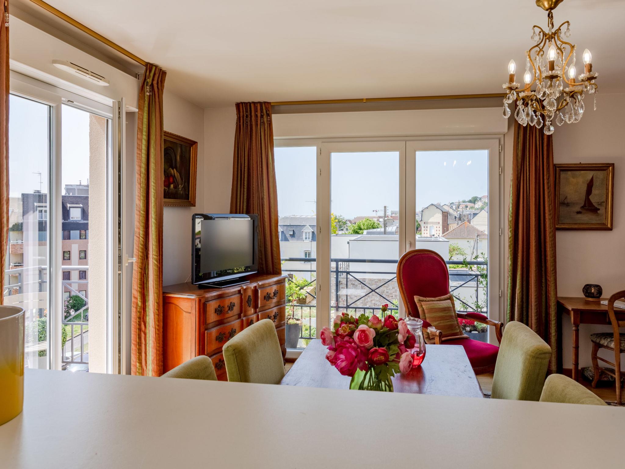 Trouville sur Mer: Residence "Elisa", 4 storeys. 1 km from the centre, on top of a hill, 1.6 km from the sea, 1.6 km from the beach. In the complex: lift. (5 steps). Shop, grocery 500 m, supermarket 1.8 km, restaurant 500 m, bus stop "Centre des impôts" 500 m, railway station "Deauville-Trouville" 1 km, indoor swimming pool 1.5 km, thermal baths "Trouville sur Mer" 1.4 km. Golf course (18 hole) 4.6 km, sailing school 2.4 km, tennis 1.6 km. Nearby attractions: Hippodrome Deauville-La Touques 2.4 km, Honfleur 15 km, Mémorial de Caen 49 km, Plage du débarquement d'Arromanches 85 km. Please note: the keys‘ handover takes place by the agency Interhome in Deauville. Additional accommodations can be booked.