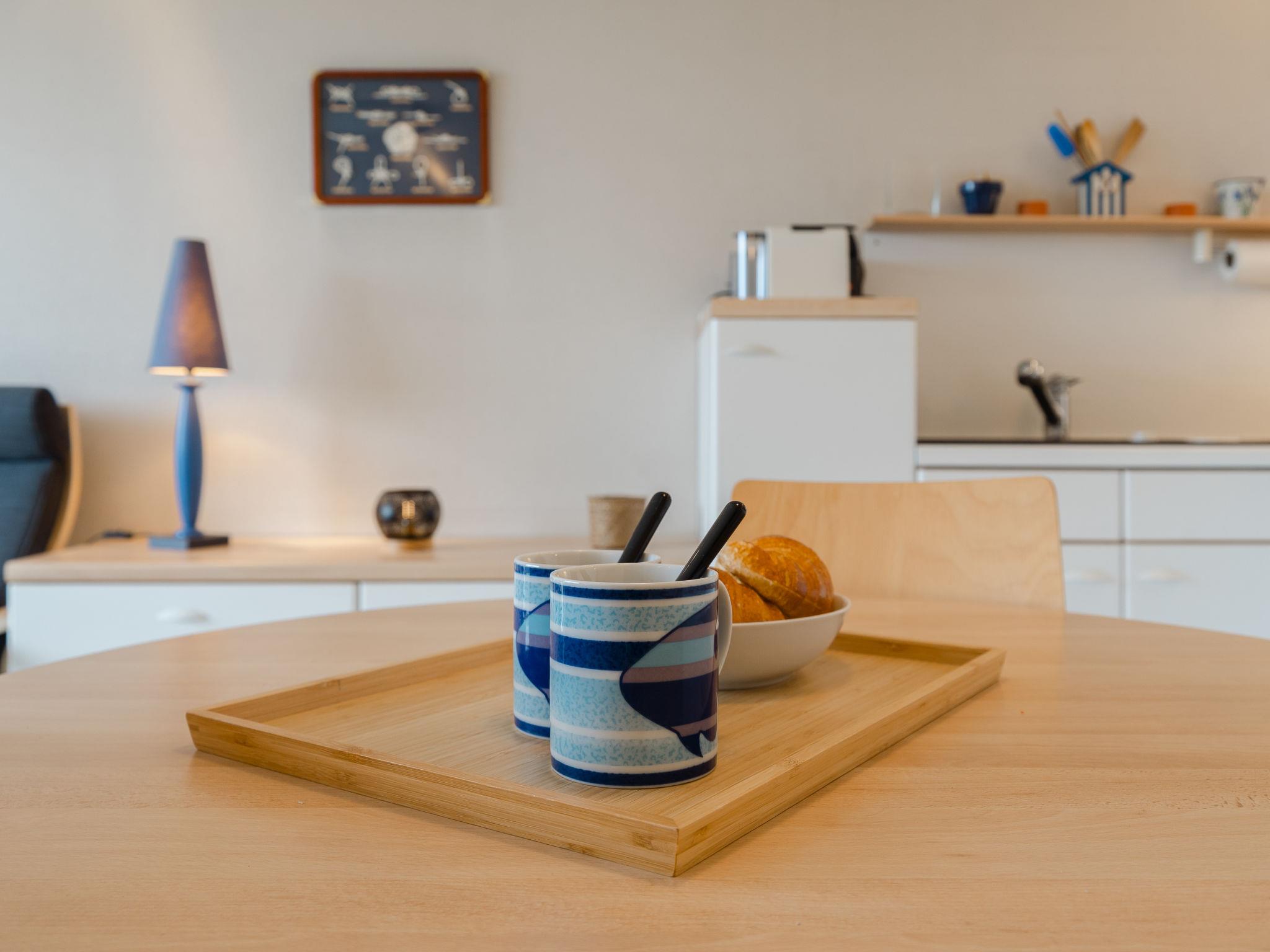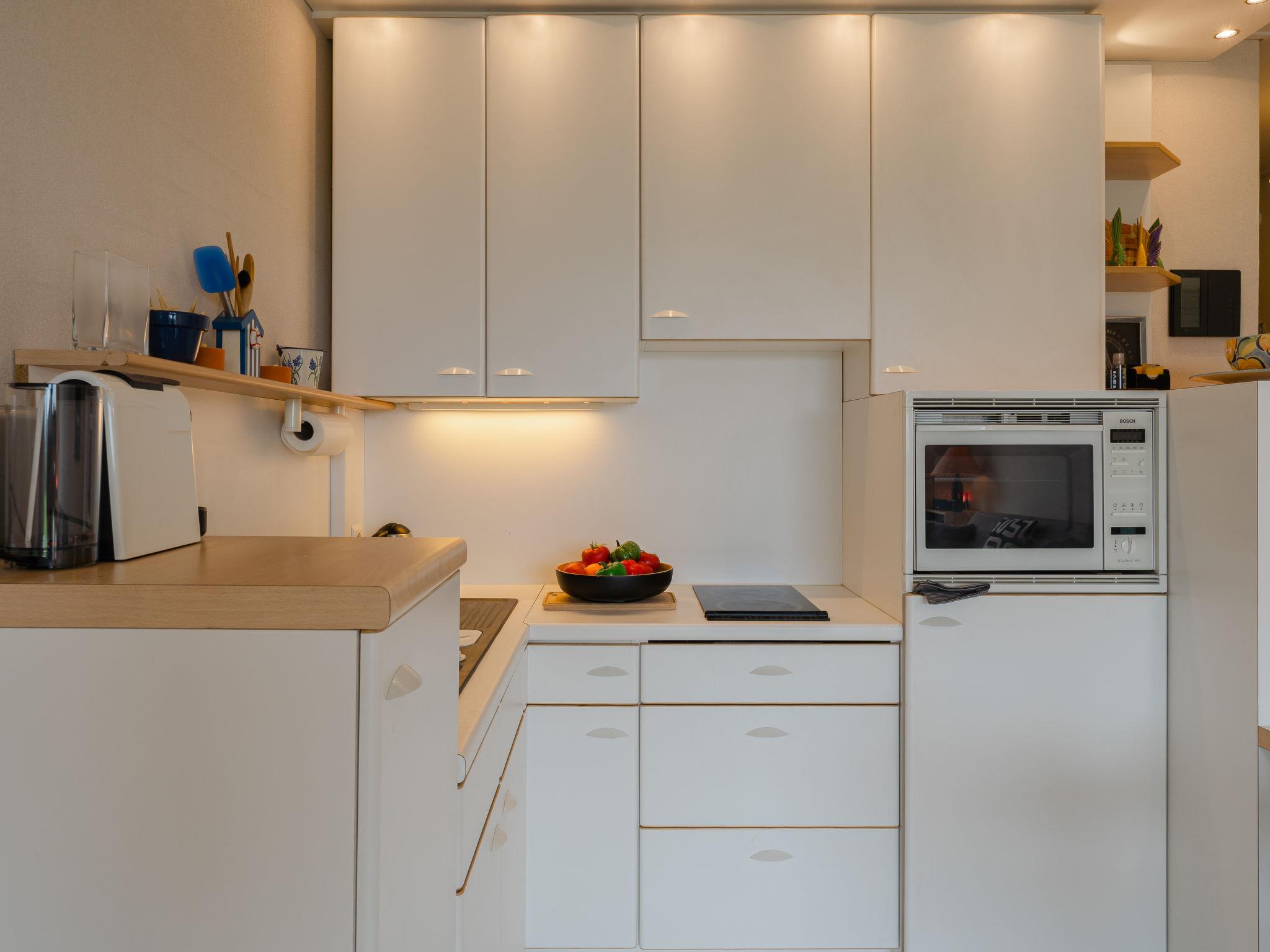 "Le Drakkar", 1-room studio 28 m2, on the ground floor, west facing position. Object suitable for 2 adults. Living/sleeping room 28 m2 with panoramic window west facing position with 1 double sofabed (1 x 160 cm, length 200 cm), TV (flat screen), heating stove. Exit to the patio, west facing position. Open kitchen (2 hot plates, mini-oven, toaster, kettle, electric coffee machine). Shower/WC. Gas heating. Terrace furniture. Distant view of the sea. Facilities: Internet (WiFi, extra). Please note: apartment courtyard side. Non-smokers only, no parking. Maximum 1 pet/ dog allowed. Smoke alarm. Offer by a private individual according to Art. 155, IV of CGI.