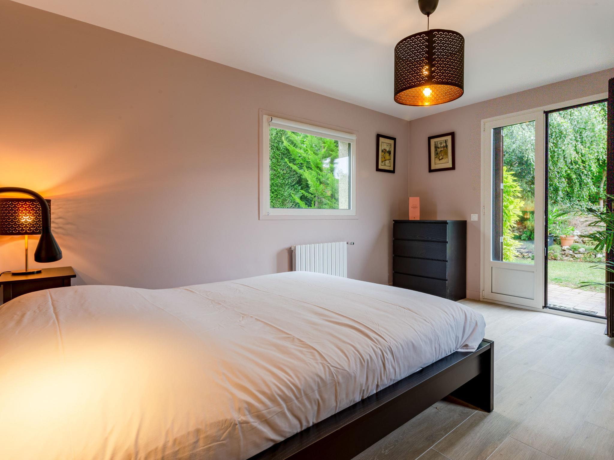 "La Normande", 5-room house 130 m2. Bright, partly renovated in 2023, beautiful and tasteful furnishings: entrance hall. Large living room with 1 sofabed (140 cm, length 190 cm), open-hearth fireplace (only for decoration), TV (flat screen). Exit to the garden, to the terrace, south facing position and east facing position. 1 room with 1 french bed (1 x 140 cm, length 200 cm). 1 large room with 1 french bed (1 x 160 cm, length 200 cm). Exit to the garden, to the terrace. Large kitchen (dishwasher, 4 induction hot plates, toaster, kettle, microwave, electric coffee machine, cooking island). Shower/WC. Upper floor: 1 room with 1 french bed (1 x 140 cm, length 190 cm). 1 room with 1 french bed (1 x 160 cm, length 200 cm). Bath/shower, sep. WC. Electric heating. Terrace furniture, balcony furniture, electric barbecue, deck chairs. Beautiful view of the garden. Facilities: washing machine, dryer, iron, hair dryer. Internet (WiFi, free). Parking (fenced 2 cars). Please note: non-smokers only. Maximum 1 pet/ dog allowed. Smoke alarm. Offer by a private individual according to Art. 155, IV of CGI. FR1804.918.1