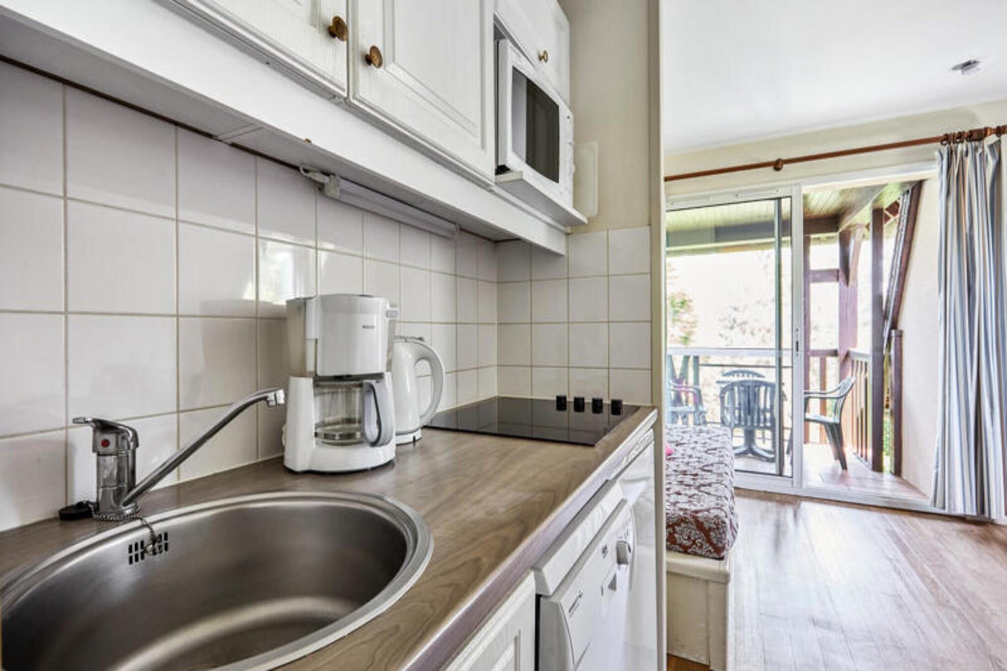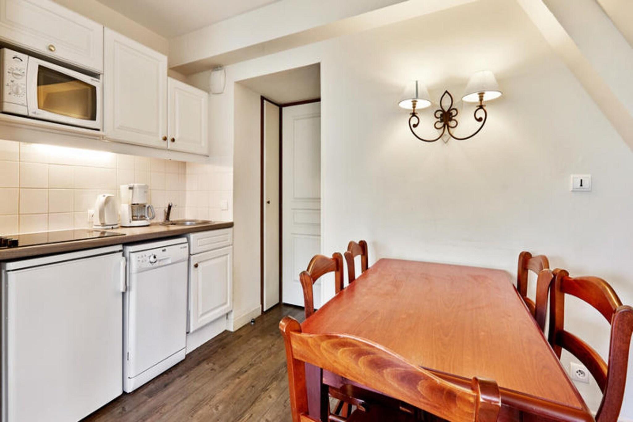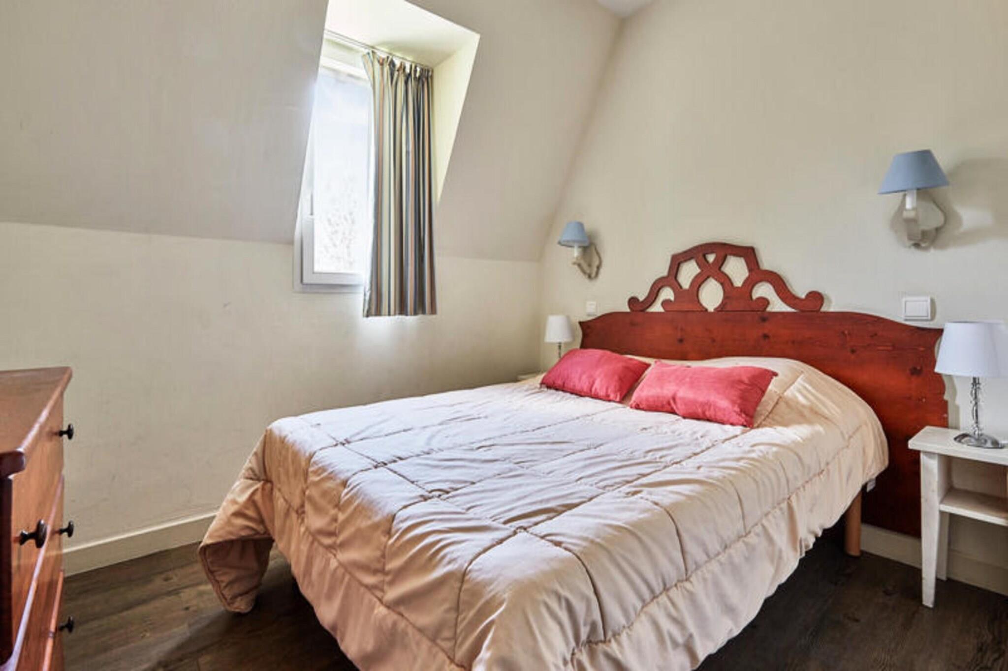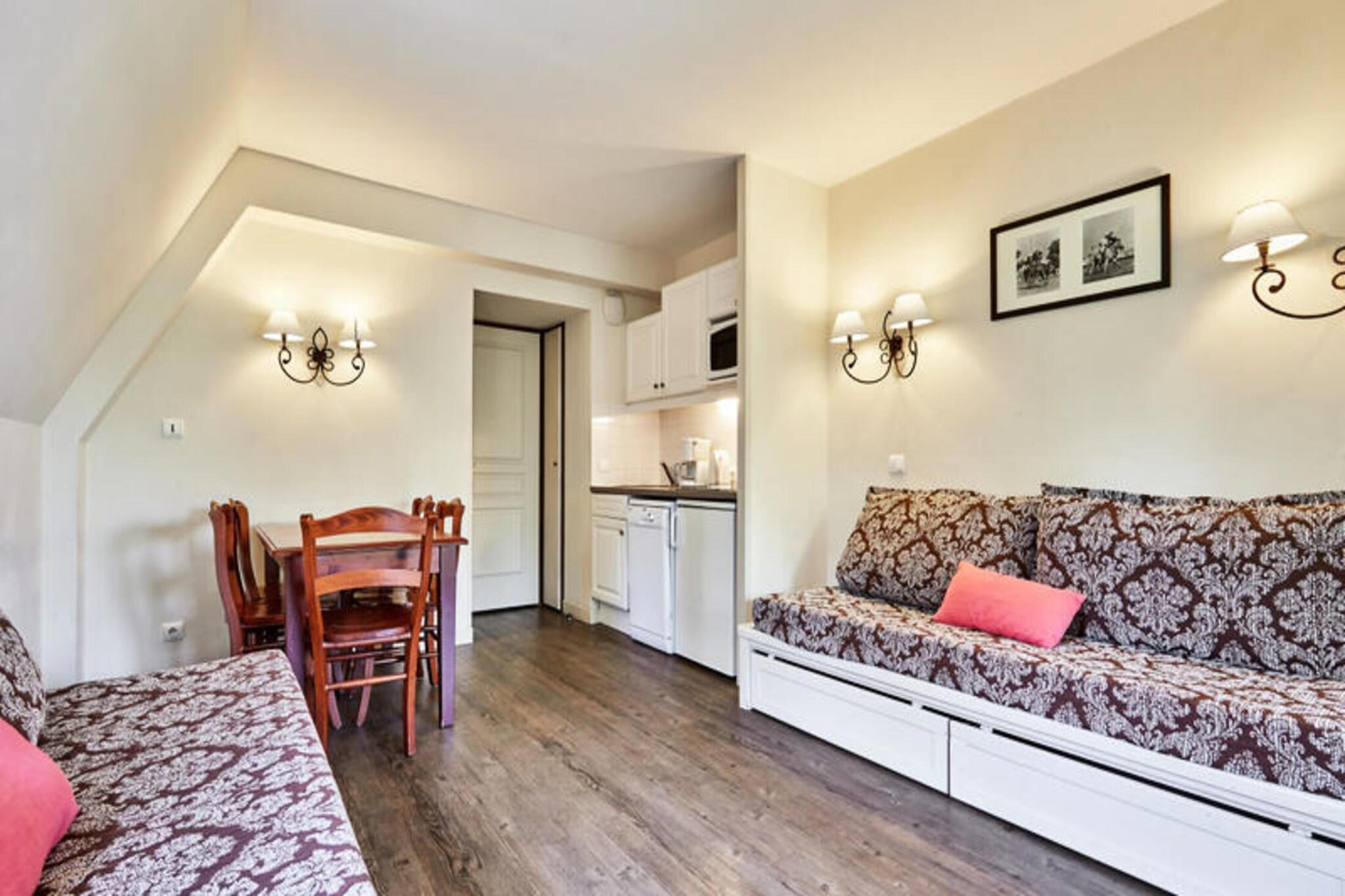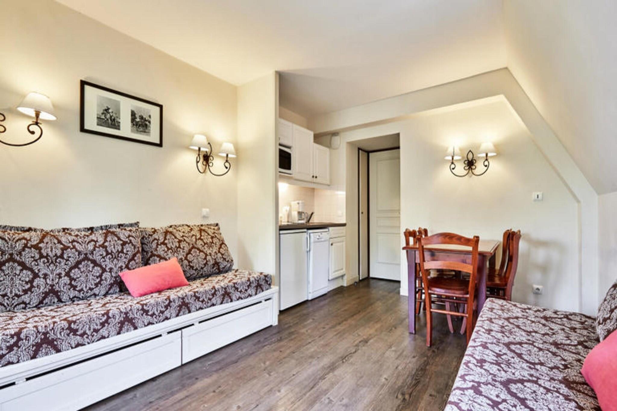 Denne ettromsleiligheten, som ligger i høyden av Deauville, tilbyr en rolig flukt midt i et naturlig miljø. Leiligheten har en stue med en sovesofa (to soveplasser), et soverom med to enkeltsenger, et bad med separat toalett og en balkong med bord og stoler. Leiligheten har plass til opptil fire gjester og kjæledyr er tillatt mot en ekstra avgift. Gjestene har tilgang til et felles oppvarmet svømmebasseng (åpent fra 1. mai til 15. september) og gratis dekket parkering. Denne leiligheten ligger i nærheten av Lucien Barrière golfbane, og tilbyr muligheter for golf, ridning og utforsking av det nærliggende Deauville-området. Deauville-La Touques Hippodrome, kjent for sine hesteveddeløp, ligger et lite stykke unna. De berømte Deauville-plankene ligger 2,5 km fra boligen, og å tilbringe en kveld på Deauville Casino Barrière er en populær aktivitet. Selv om spesifikke detaljer om kafeer og markeder ikke er nevnt, antyder beliggenheten i nærheten av butikker praktisk tilgang til fasiliteter. Leiligheten har en kjøkkenkrok som er åpen mot stuen. Wi-Fi, tilgang til boblebad, leie av babysett, sengetøy, håndklær og sluttrengjøring er tilgjengelig mot et pristillegg.