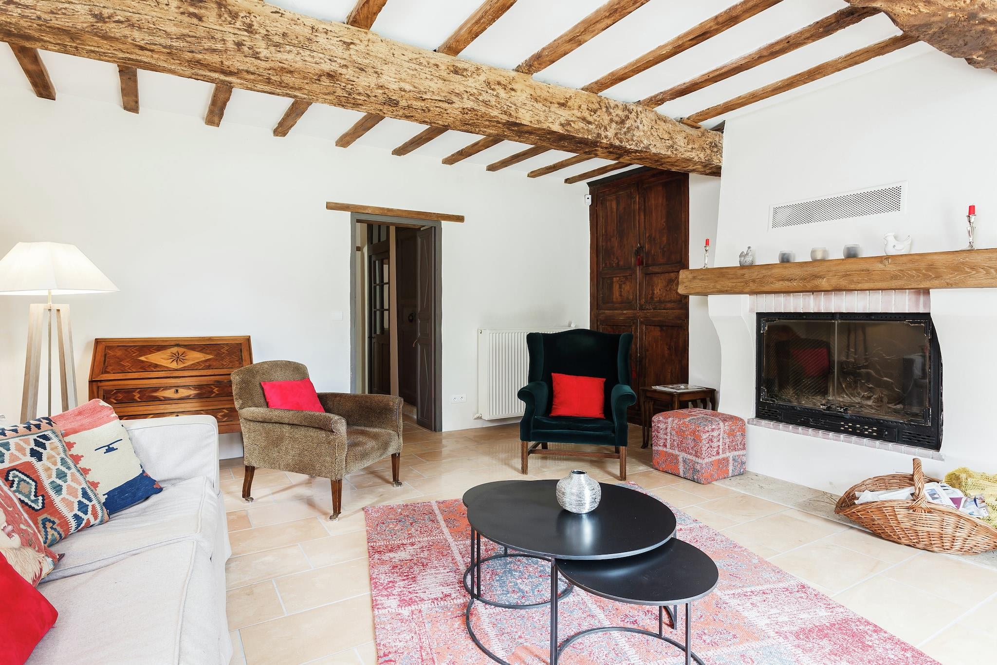 Første etasje: (Stue(vedovn(tre)), spisestue(spisebord(6 personer)), Kjøkken(komfyr, kaffetrakter(kaffepute), stekovn, mikrobølgeovn, oppvaskmaskin, kjøleskap med fryser, vaskemaskin), soveværelse(enkeltseng(90 x 200 cm), enkeltseng(90 x 200 cm)), Sovrum med badrum(dobbeltseng(160 x 200 cm), dusj, håndvask, toalett), bad(badekar, dusj, håndvask, toalett), franske dører, babyseng/sprinkelseng) i 2. etasje: (Sovrum med badrum(dobbeltseng(160 x 200 cm), dusj, håndvask, toalett)) peisen, oppvarming(sentral, tre), terrasse(privat, overdekket), hage(privat, > 1000 m2), hagemøbler, parkering, fluktstoler, Parasoll, svømmebasseng(privat, inngjerdet, 10 x 5 m., opened from May upto and including Sep)
