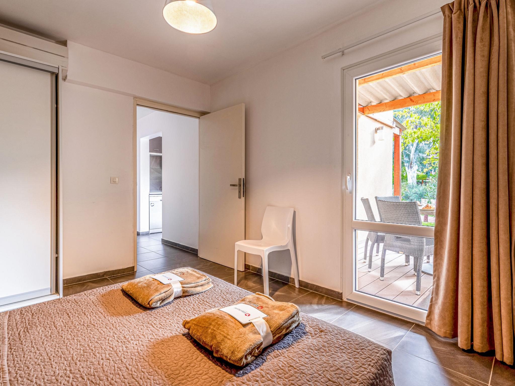"Residence Marina di Favone, T3, 4-6 pers", 3-room apartment 64 m2, on the ground floor. Beautiful and modern furnishings: living/sleeping room with 1 double sofabed and satellite TV. Exit to the terrace. 1 room with 1 french bed. 1 room with 2 beds. Kitchenette (dishwasher, 4 ceramic glass hob hotplates, toaster, microwave, electric coffee machine). Shower/WC. Electric heating, air-conditioning. Terrace 20 m2, roofed, small garden 60 m2. Terrace furniture, deck chairs (2). Please note: non-smokers only. Maximum 1 pet/ dog allowed. Smoke alarm, fire extinguisher. Offer by a commercial proprietor according to Art. 155, IV, CGI