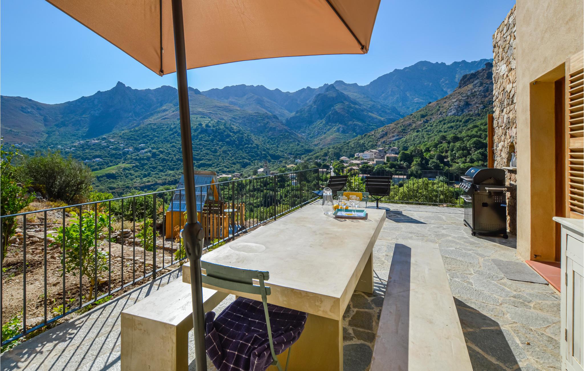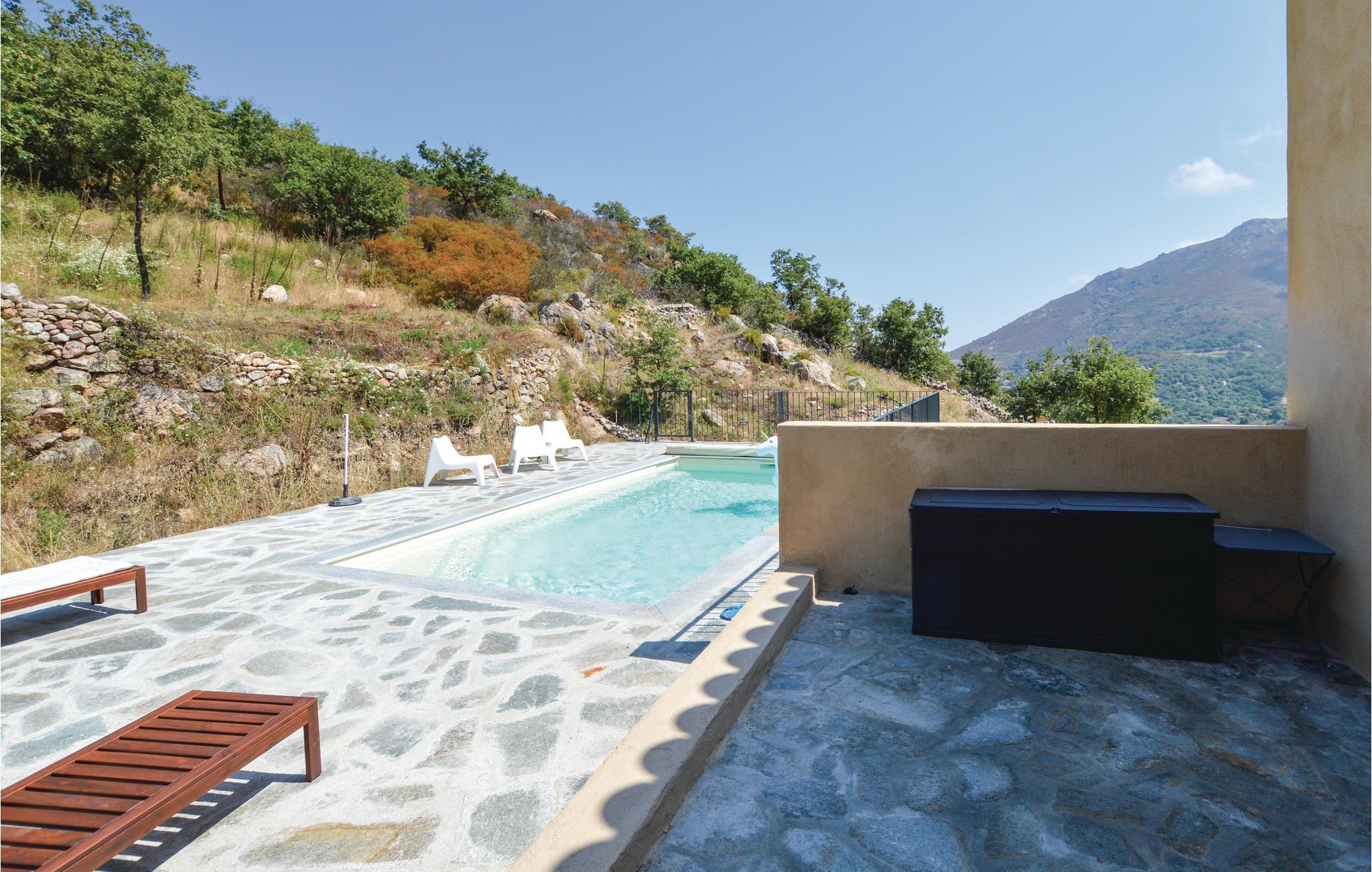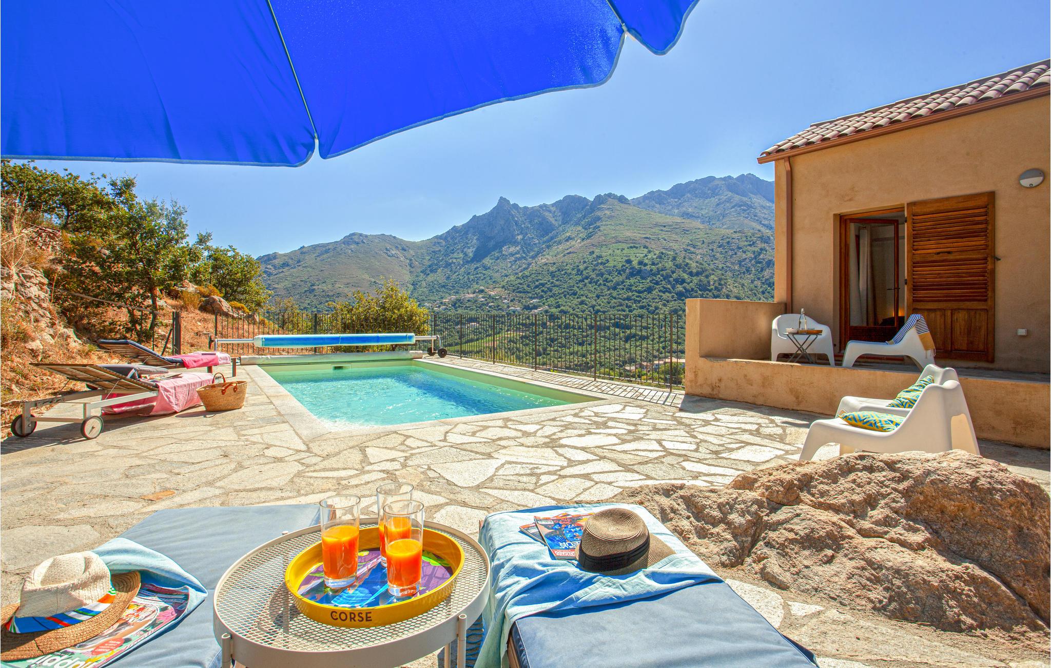 Dette vakre feriehuset med privat basseng og utsikt over landskapet ligger i hjertet av fjellandsbyene i Balagne. Villaen er komfortabelt innredet og har romslige og moderne rom og attraktive bad. Landsbyen Feliceto er livlig og har restauranter og en dagligvarebutikk i sesongen. Eieren ønsker deg velkommen og tilbyr autentisk korsikansk gjestfrihet borte fra folkemengdene. Du vil nyte panoramautsikten over fjellene og kan oppdage Ile Rousse, Calvi eller den vakre ørkenen Agriates i omgivelsene.