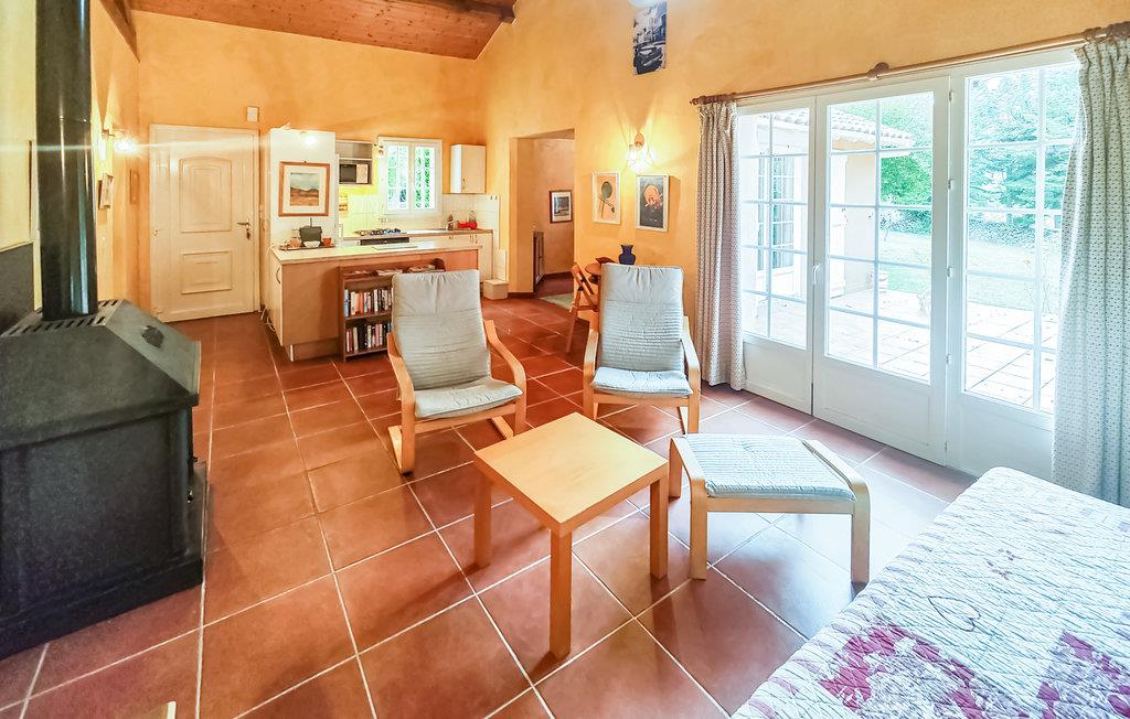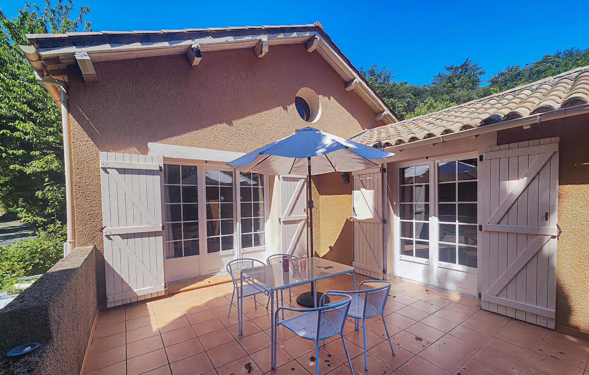 Slapp av i dette familieferiehuset omgitt av vakker natur. Huset er ideelt for den lille familien eller en ferie med to par. Her kan du slappe av og lese en god bok, lage mat sammen eller se en spennende film. Ved siden av huset har du en terrasse hvor du kan nyte morgenkaffen og de første solstrålene. I hagen finner du et vakkert svømmebasseng hvor du kan ta din første svømmetur om morgenen og deretter ligge i solen på solterrassen.