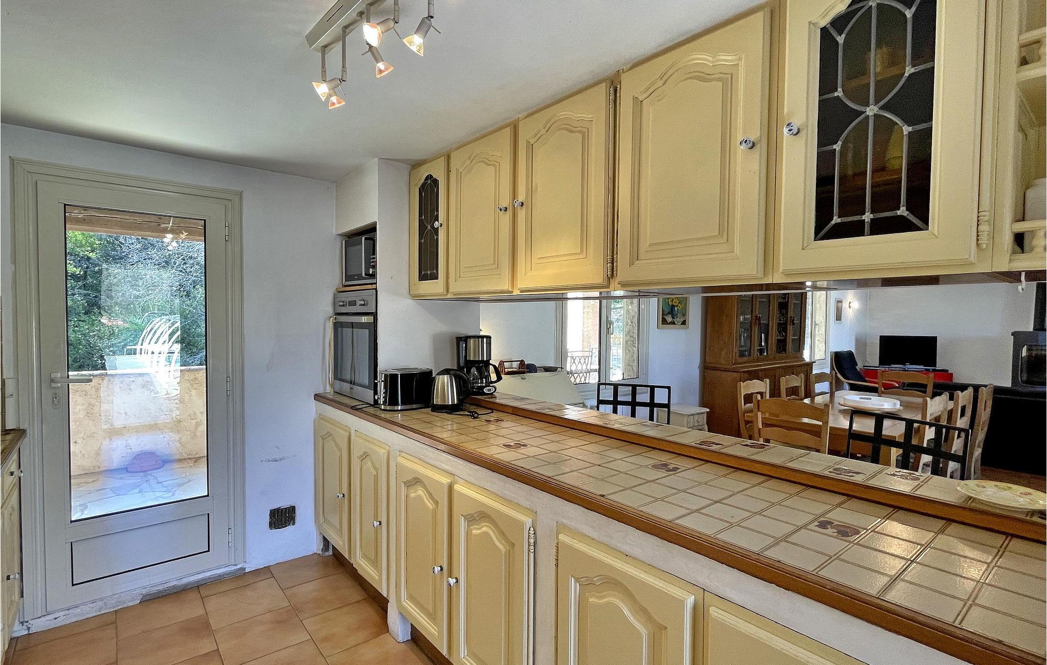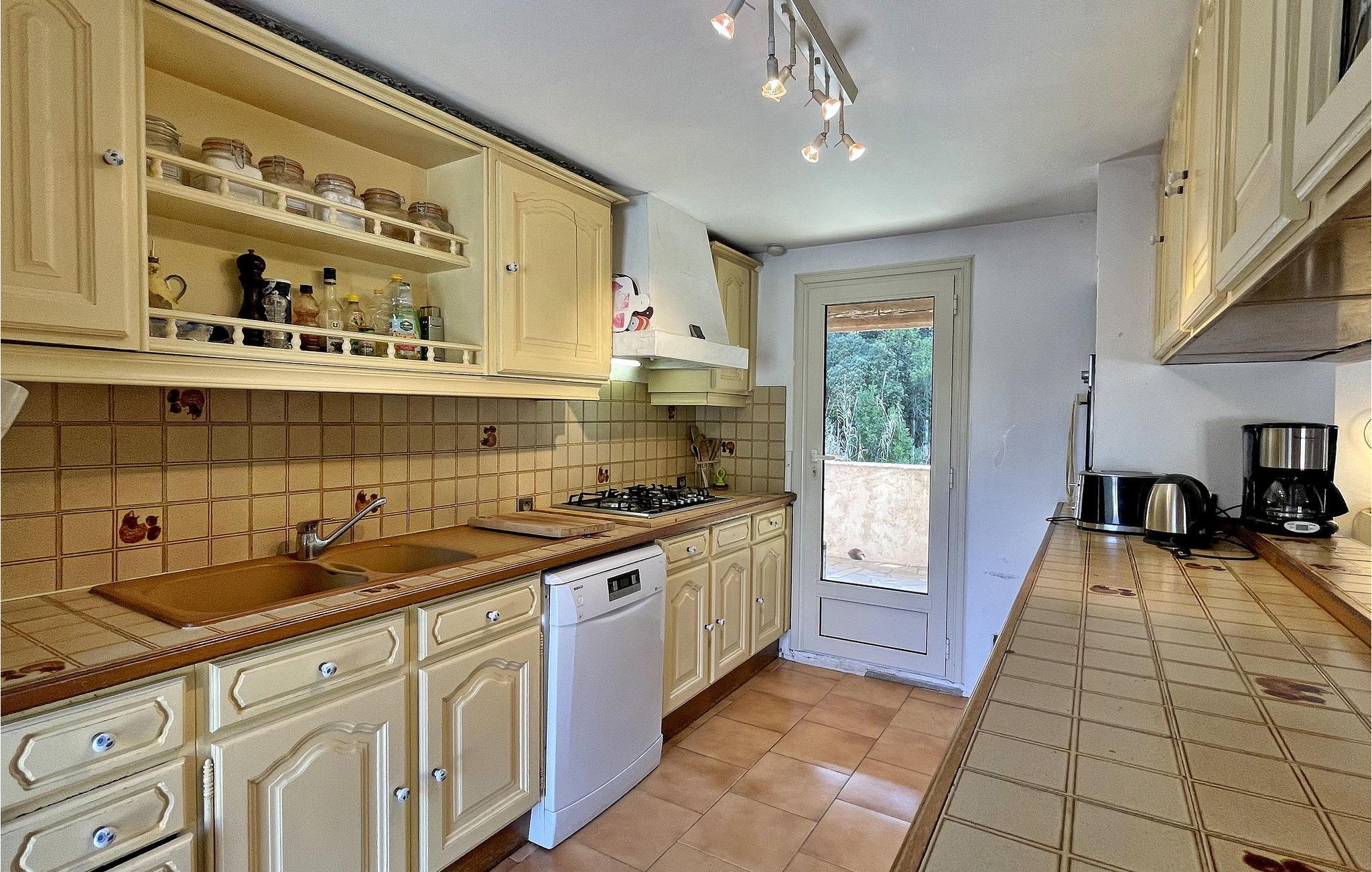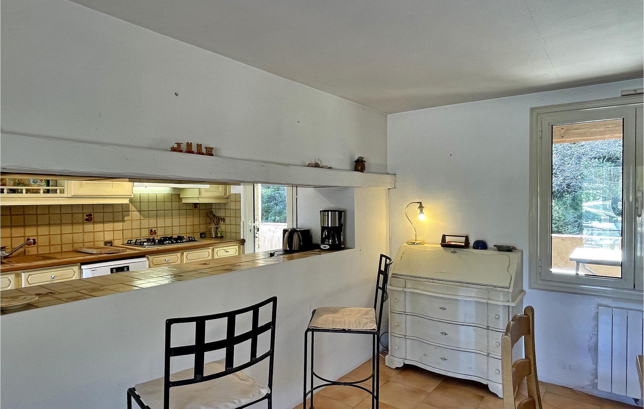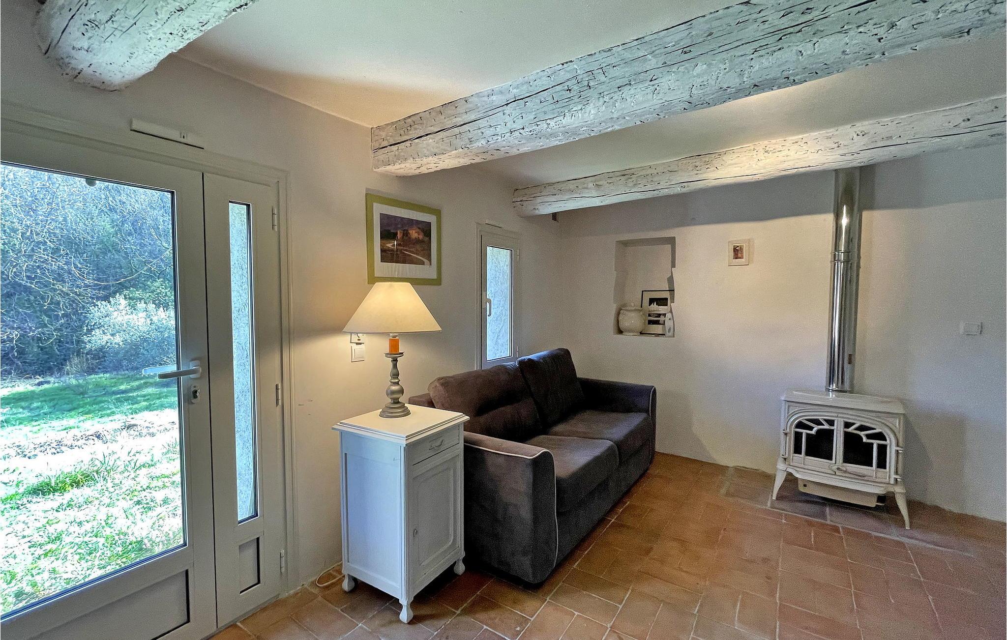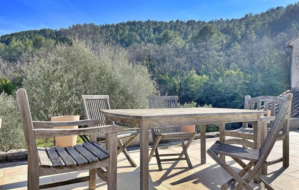 Dette landlige feriehuset i Figanières har privat basseng og er omgitt av oliventrær. Dette store steinhuset er fullt av rustikk sjarm med mange tradisjonelle elementer. I første etasje finner du et kjøkken med åpen kjøkkenløsning og stue, en spiseplass for 8 personer og en koselig stue. Det er også tre soverom på dette nivået, som nås via en lang korridor. Uteområdet består av en stor tomt med olivenlunder, en romslig terrasse ved bassenget, en overbygd terrasse med plancha og sitteplasser og en parkeringsplass for 4 biler. Bassenget (10 x 5 m) er uoppvarmet og skjermet avhengig av årstiden. Vær oppmerksom på at huset har tykke vegger, og at Wi-Fi ikke alltid er tilgjengelig i alle rom. Huset ligger i hjertet av Var i 385 meters høyde. På grunn av den fjellrike beliggenheten er adkomsten til villaen via en 800 meter lang grusvei, som ikke er egnet for lave biler. Overnattingsstedet ligger ca. 35 minutter med bil fra strendene Saint Aygulf (40 km) og Les Issambres (50 km) og 10 km fra Draguignan. Alle lokale butikker i Figanières ligger ca. 1,5 km unna. Nyt ferien i et hus, din ferieleilighet, i Var i Provence.