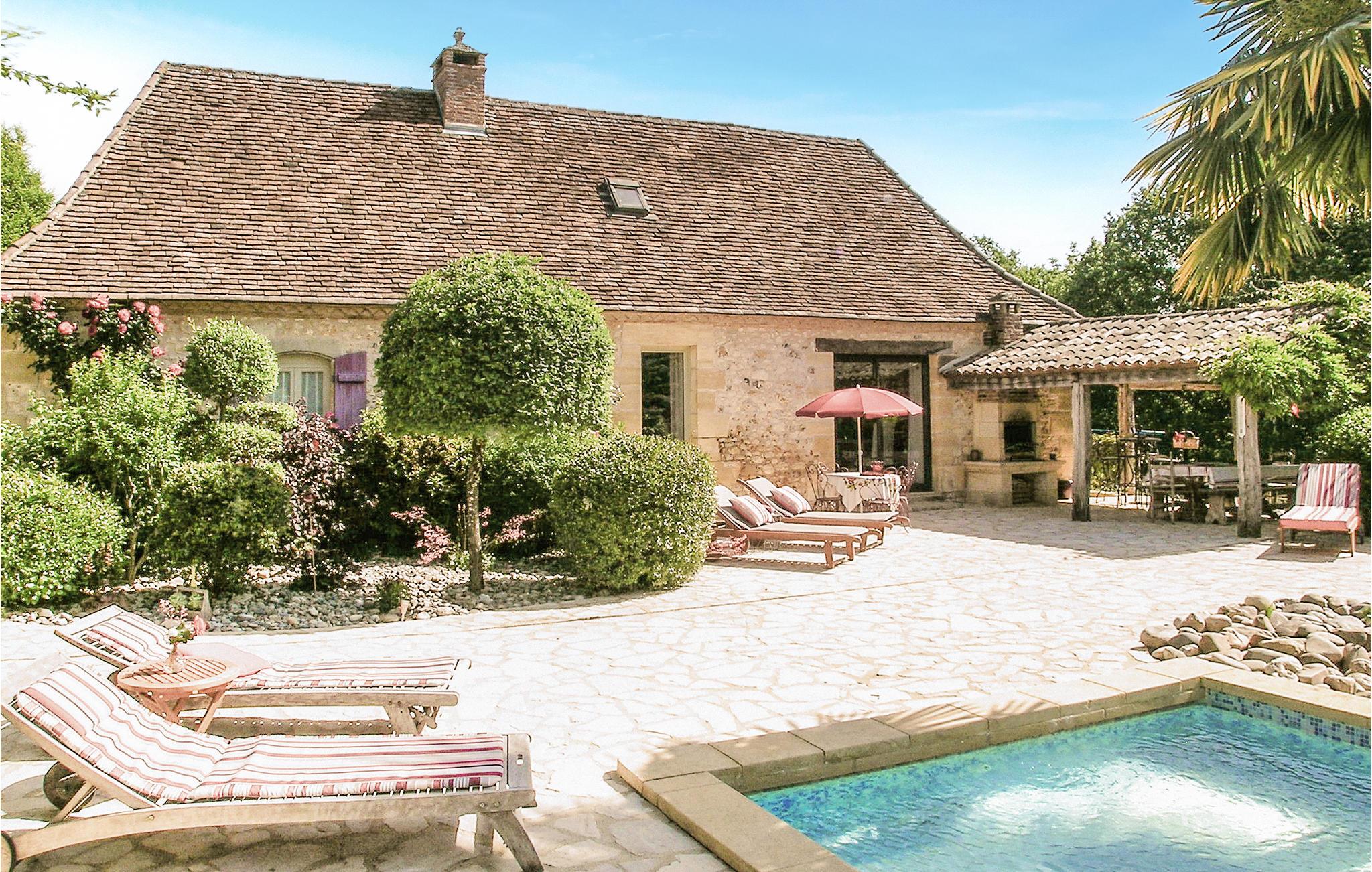 Omgitt av skog ligger dette feriehuset i naturstein i det vakre landskapet nord for Périgord Noir. Det velholdte huset er renovert og dekorert med kjærlighet. Det tilbyr en fredelig oase der du ikke vil mangle moderne bekvemmeligheter. Komfortable funksjoner inkluderer gulvvarme, et vakkert kjøkken og en flott terrasse hvor du kan sole deg og spise utendørs.