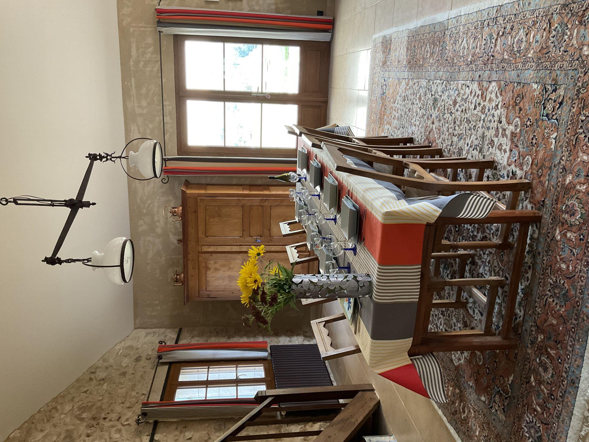 "La Princesse", 6-room house 250 m2 on 2 levels. Comfortable and tasteful furnishings: living/dining room with open-hearth fireplace, dining table, satellite TV, hi-fi system and DVD. Large kitchen (oven, dishwasher, 5 ceramic glass hob hotplates, toaster, kettle, microwave, freezer, electric coffee machine, raclette grill, cooking island, fondue Set (cheese)) with open-hearth fireplace (only for decoration), dining table. Exit to the terrace. Sep. WC. Upper floor: 1 double bedroom with 1 double bed (160 cm), shower/WC. 1 room with 2 beds. 1 room with 1 french bed (160 cm). 1 room with 2 beds (90 cm), 1 x 2 bunk beds, separate WC and shower. 1 double bedroom with 1 double bed (160 cm). Bath/shower, 2 sep. WC's. Oil heating. Natural stone floors. 3 terraces. Terrace furniture, barbecue, deck chairs (8), box-room. View of the countryside. Facilities: washing machine, safe, iron, mosquito net, children's high chair, baby cot. Internet (WiFi, free). Please note: non-smoking house. When there are less than the maximum number of guests staying at the property, not all of the bedrooms will be available for use.