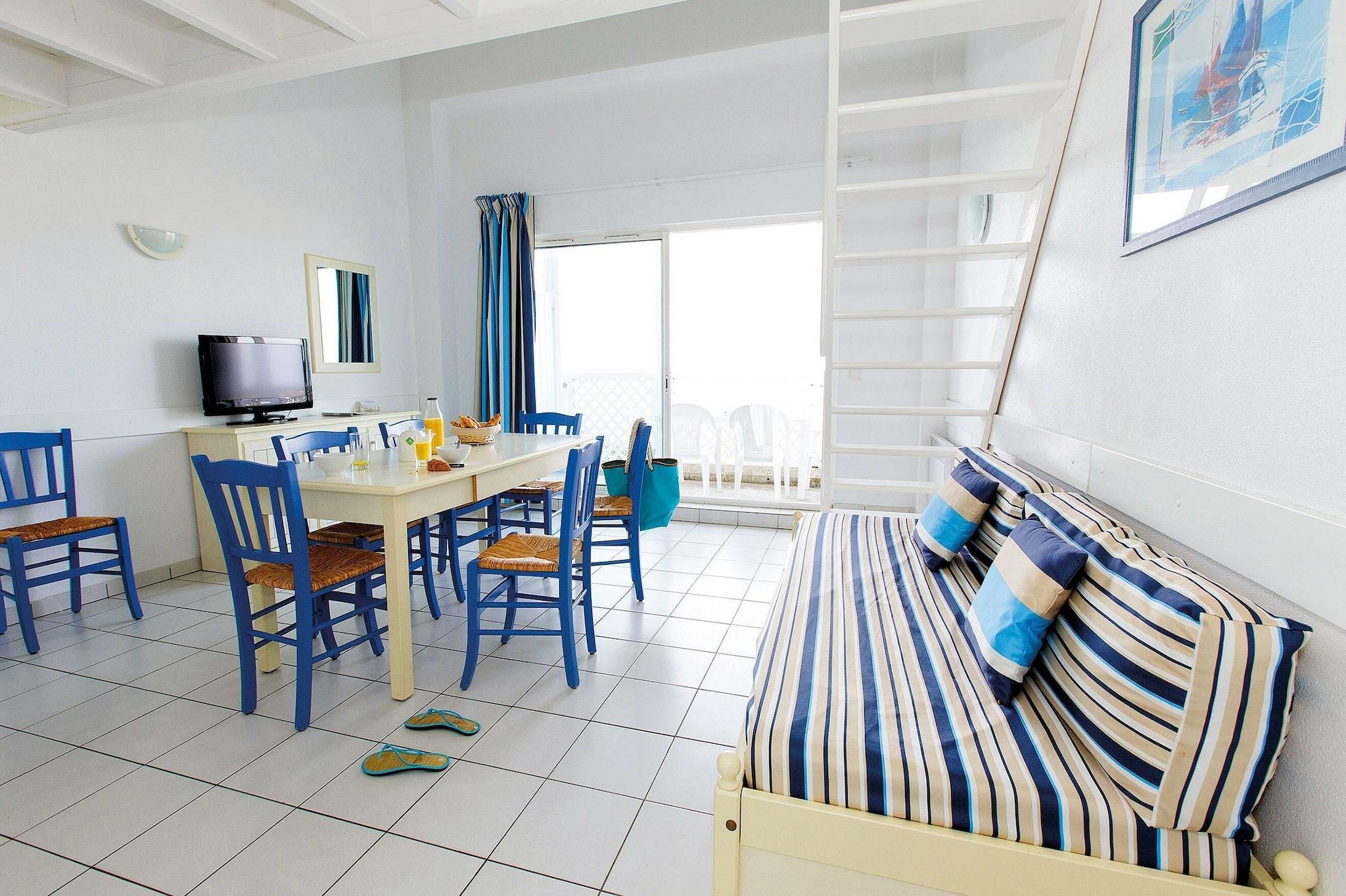 Åpent kjøkken(kaffetrakter, mikrobølgeovn, oppvaskmaskin, kjøleskap), Stue/spisestue(uttrekkbar dobbeltseng, TV), soveværelse(dobbeltseng), bad(badekar eller dusj), WC, balkong eller terrasse, oppvarming, hagemøbler, svømmebasseng(deles med andre gjester, opened from 1/2 May upto and including Sep)