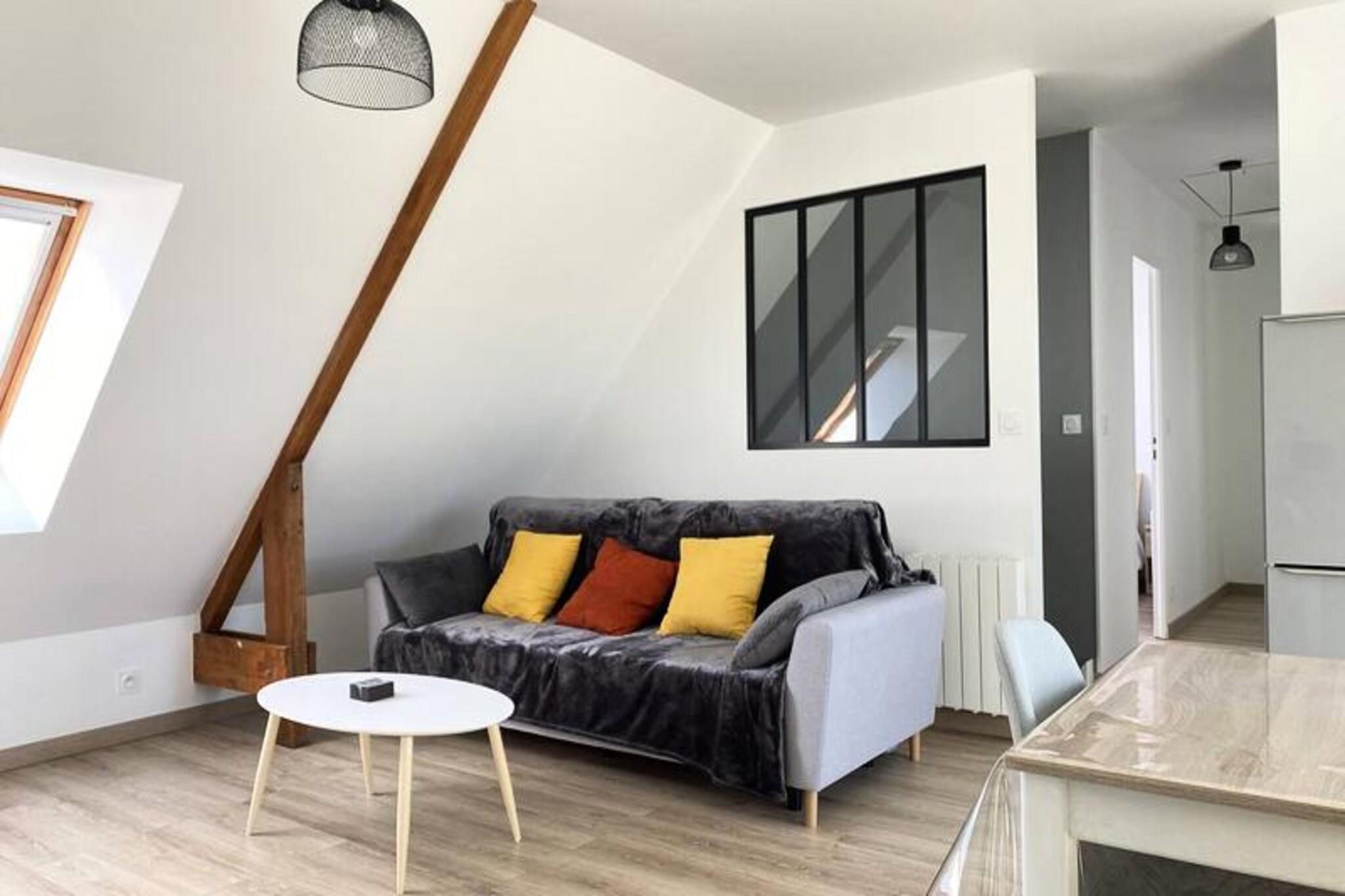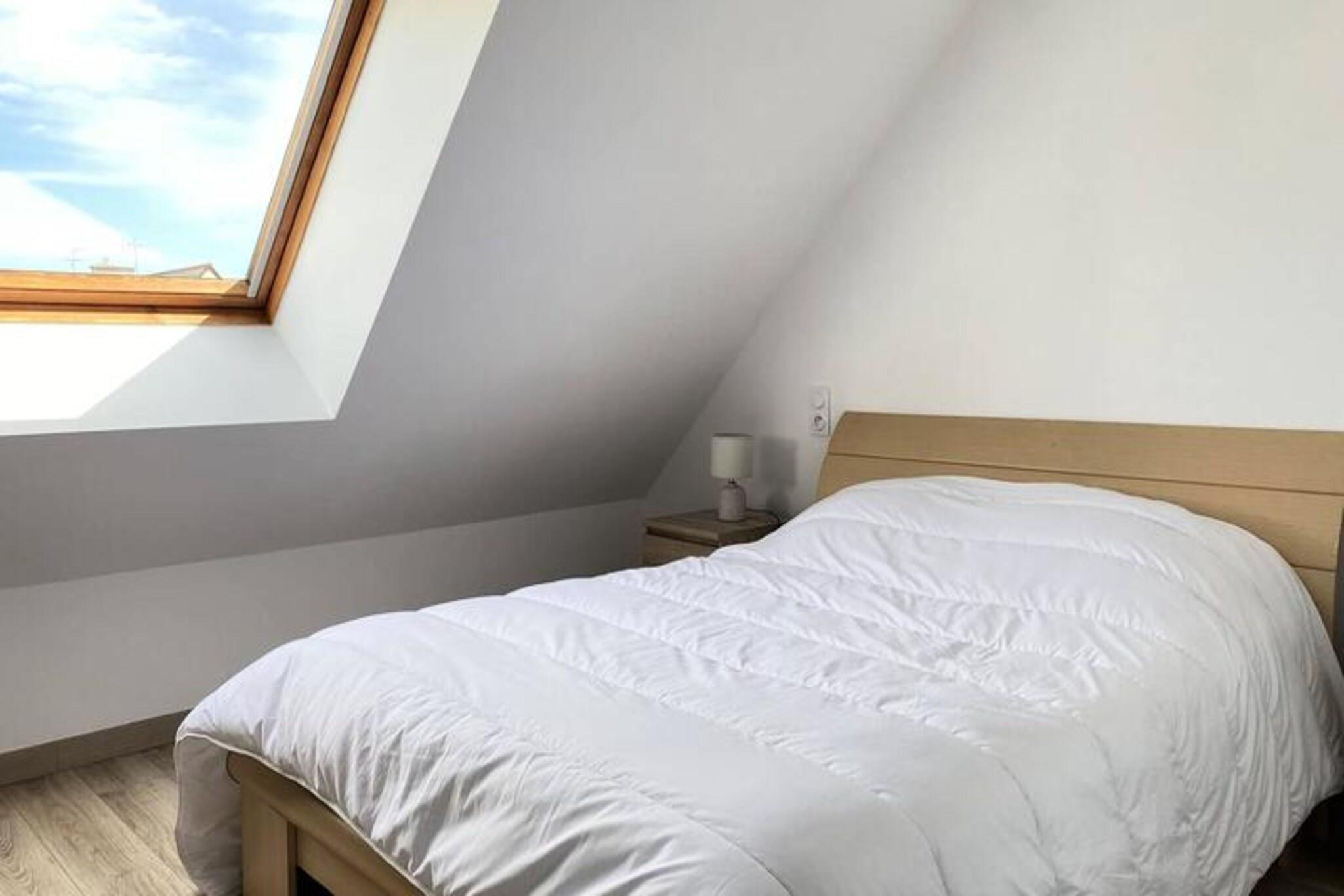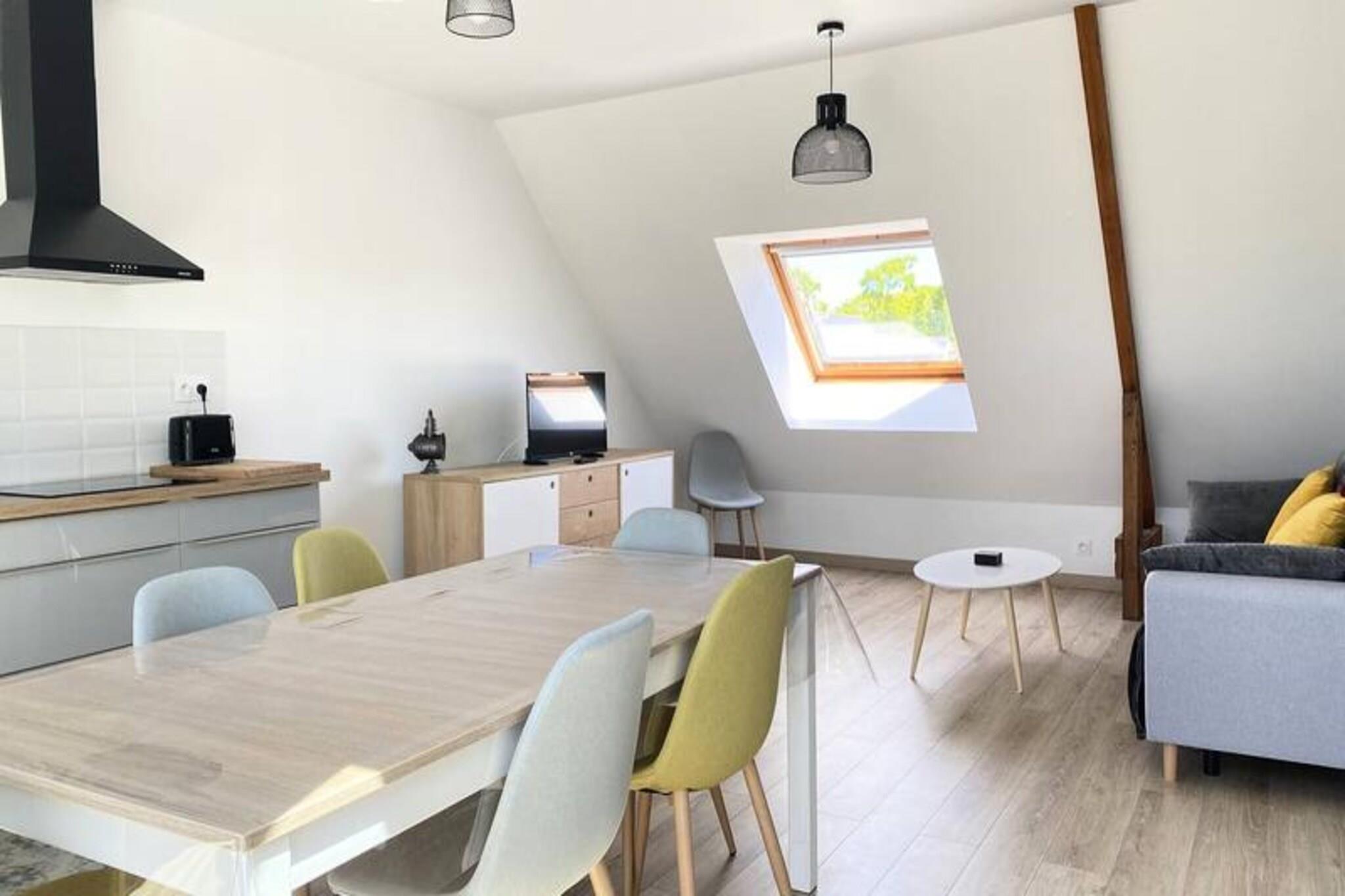 På den pittoreske Penthièvre-kysten i Bretagne tilbyr denne sjarmerende leiligheten på 45 m² en fredelig tilflukt midt i den barske skjønnheten i Côtes-d'Armor. Med sine fantastiske landskap der land møter hav, inviterer den nærliggende Grand Site de France 'Cap d'Erquy - Cap Fréhel' deg til å utforske 20 kilometer med vill kystlinje, oversådd med dramatiske klipper, sandstrender og livlige lyngkledde heier. Enten du søker ro eller eventyr, lover denne destinasjonen uforglemmelige øyeblikk. \n\nLeiligheten, som ligger i øverste etasje i et hus, er badet i naturlig lys og gjennomtenkt designet for komfort. Stuen har en koselig stue med sovesofa, spiseplass og et fullt utstyrt åpent kjøkken, perfekt for å tilberede måltider med lokale bretonske ingredienser. Soveplassene inkluderer et dobbelt soverom med en standardseng og et andre soverom med to enkeltsenger, alle utstyrt med dyner og puter for en god natts søvn. Det moderne badet har dusjkabinett, noe som sikrer komfort og avslapning etter en dag med utforsking.\n\nFamilier vil sette pris på den nærliggende lekeplassen, mens den felles hagen tilbyr et fredelig sted å slappe av. Parkering er tilgjengelig på stedet, og Wi-Fi-tilgang sørger for at du holder deg tilkoblet, avhengig av 4G-dekning. Sengetøy, håndklær og kjøkkenhåndklær er inkludert i oppholdet, med valgfri sluttrengjøring for ekstra bekvemmelighet.\n\nOppdag sjarmen til Bretagne fra dette herlige tilfluktsstedet, hvor den dramatiske kystlinjen, sjarmerende landsbyer og rike kulturarv skaper det perfekte bakteppet for ferien din. Enten du vandrer langs kyststier, nyter fersk sjømat eller bare nyter den naturlige skjønnheten, er denne leiligheten din inngangsport til en autentisk bretonsk opplevelse.