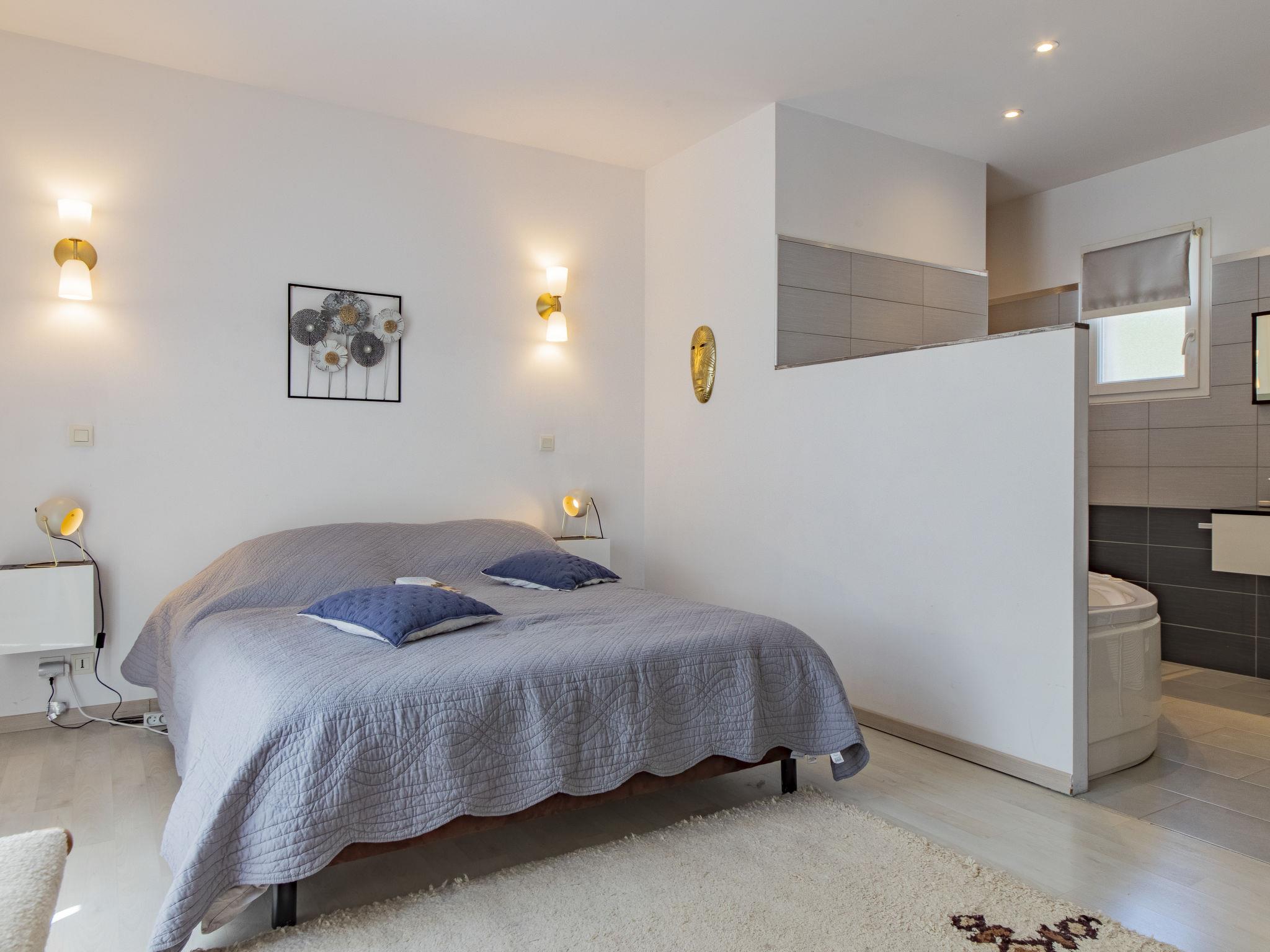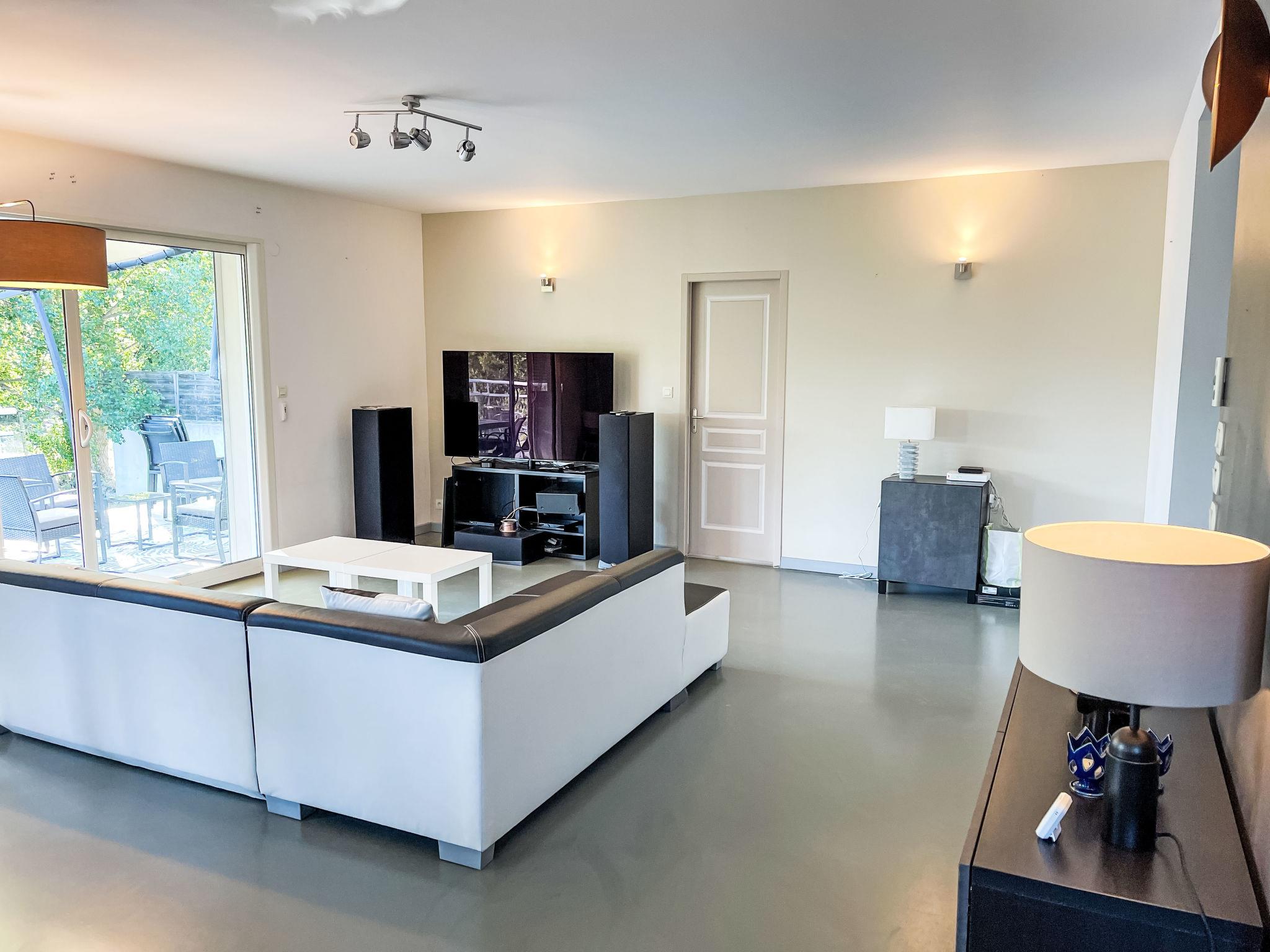 5-room villa 160 m2 on 2 levels. Beautiful and modern furnishings: living/dining room 50 m2 with panoramic window with TV (flat screen). Exit to the terrace. Open kitchen (oven, dishwasher, 4 induction hot plates, toaster, kettle, microwave, freezer, electric coffee machine, Capsules for coffee machine (Nespresso et Senseo) extra). Air-conditioning, underfloor heating. On the lower ground floor: shower/WC. Air-conditioning. Upper floor: 1 room with 1 french bed (160 cm, length 200 cm), bath/shower. 1 room with 1 french bed (140 cm, length 190 cm), TV (flat screen). 1 room with 1 french bed (140 cm, length 200 cm), TV. 1 room with 2 beds (90 cm, length 200 cm). Bathroom, sep. WC, hydro massage bath. Air-conditioning. Terrace 100 m2 partly roofed, south facing position and west facing position. Terrace furniture, barbecue, deck chairs (8). Beautiful view of the valley. Facilities: washing machine, dryer, children's high chair, baby cot for up to 2 year olds, hair dryer. Internet (WiFi, free). Please note: non-smokers only. 1 small pet/ dog allowed. Smoke alarm. Offer by a private individual according to Art. 155, IV of CGI.