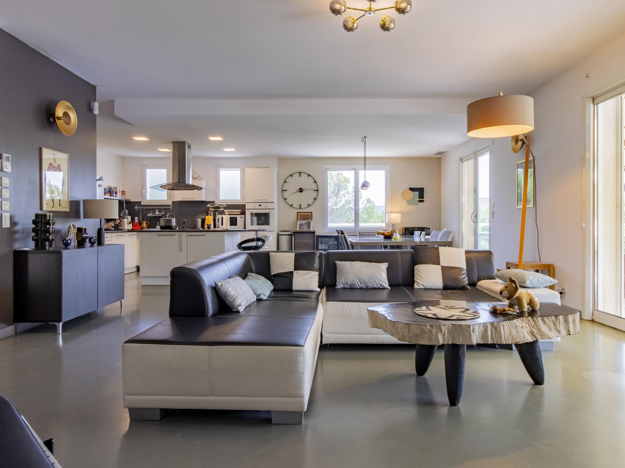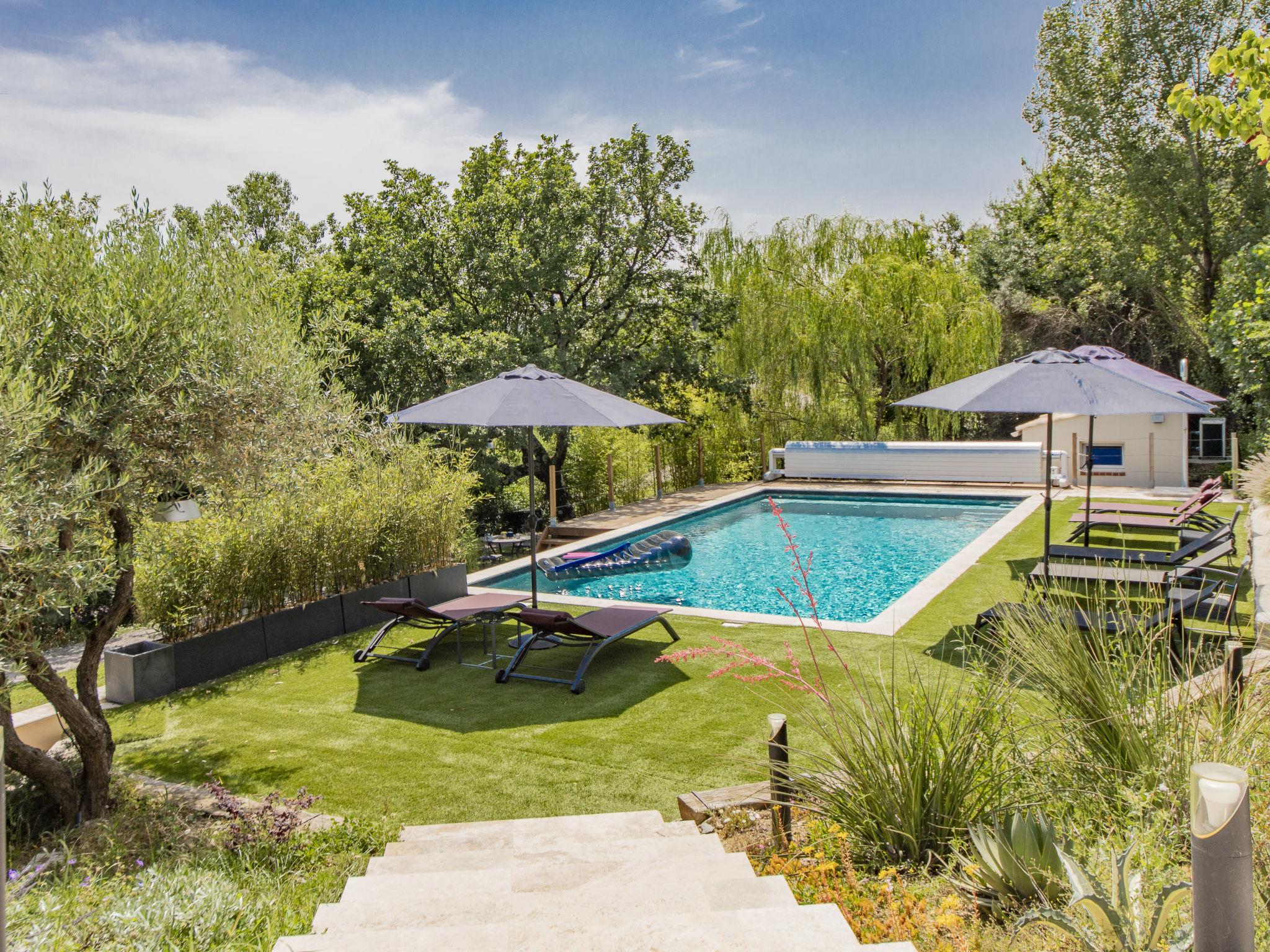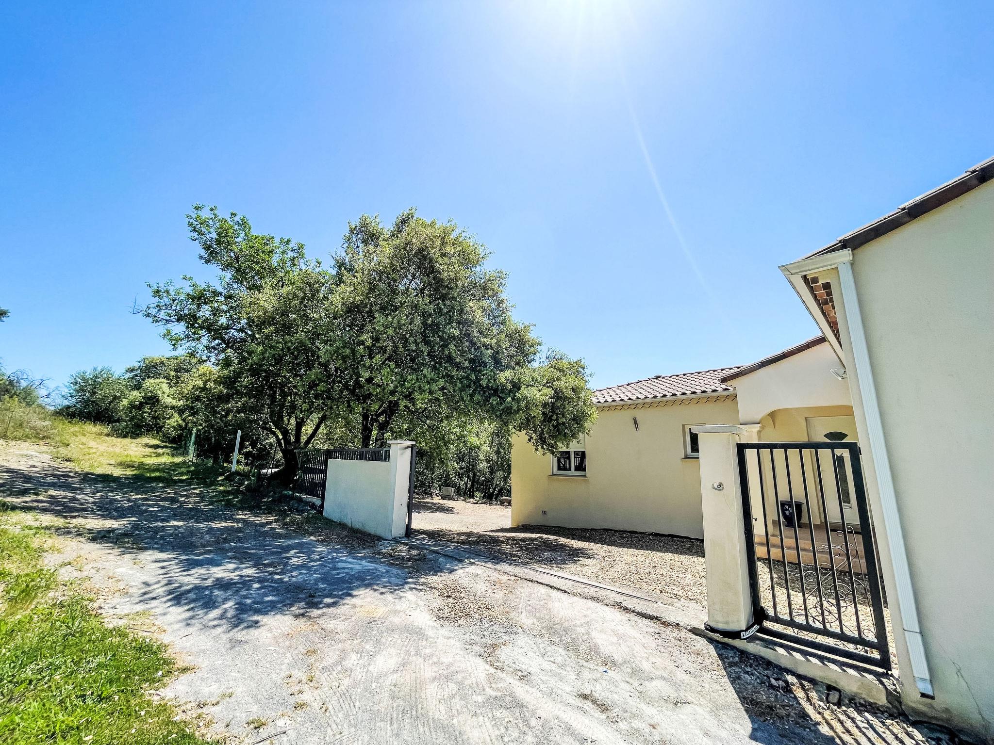 Villa "Castellas", 2 storeys, renovated in 2025. On the outskirts, on top of a hill. Private: swimming pool (5 x 10 m, depth 160 - 160 cm, seasonal availability: 01.May. - 30.Sep.) with shutter cover and salt-electrolysis pool-cleaning system. Outdoor shower. Motor access (50 m via unmade road). Parking (for 4 cars) on the premises. E-charging station. Grocery 6 km, supermarket 11.6 km, restaurant 5 km, bakery 5 km, bus stop "Crespenou" 3.1 km. Golf course (9 hole) 22 km, tennis 12 km, riding stable 7 km. Nearby attractions: Uzès 14 km, Saint-Hippolyte-du-Fort 10 km, Alès 30 km, Nîmes 54 km, Grottes des Demoiselles 26 km, La Grande Motte 64 km. Please note: The outdoor shower is heated. The pool has a counter-current swimming system, an aquabike and spa jets.
