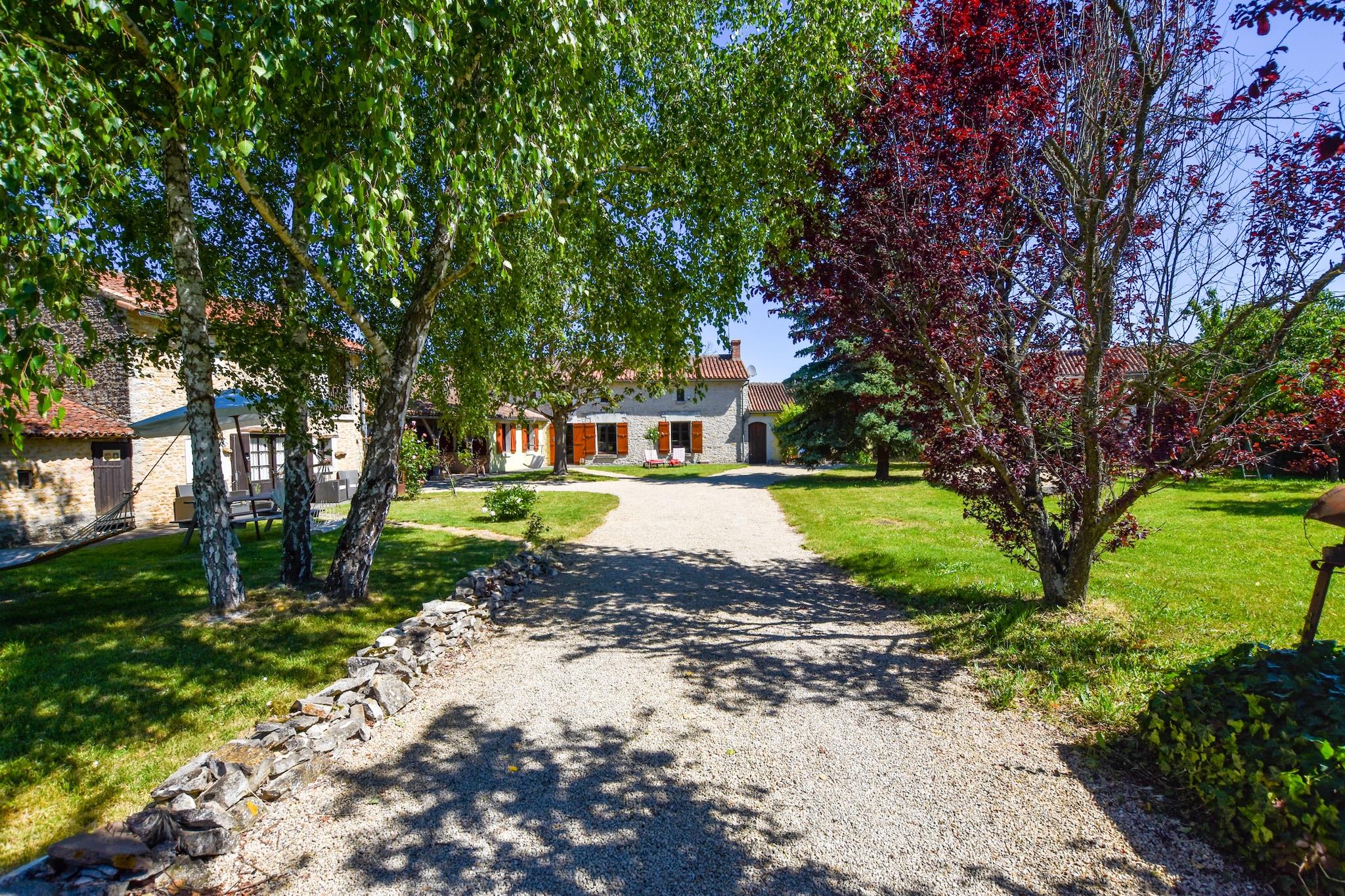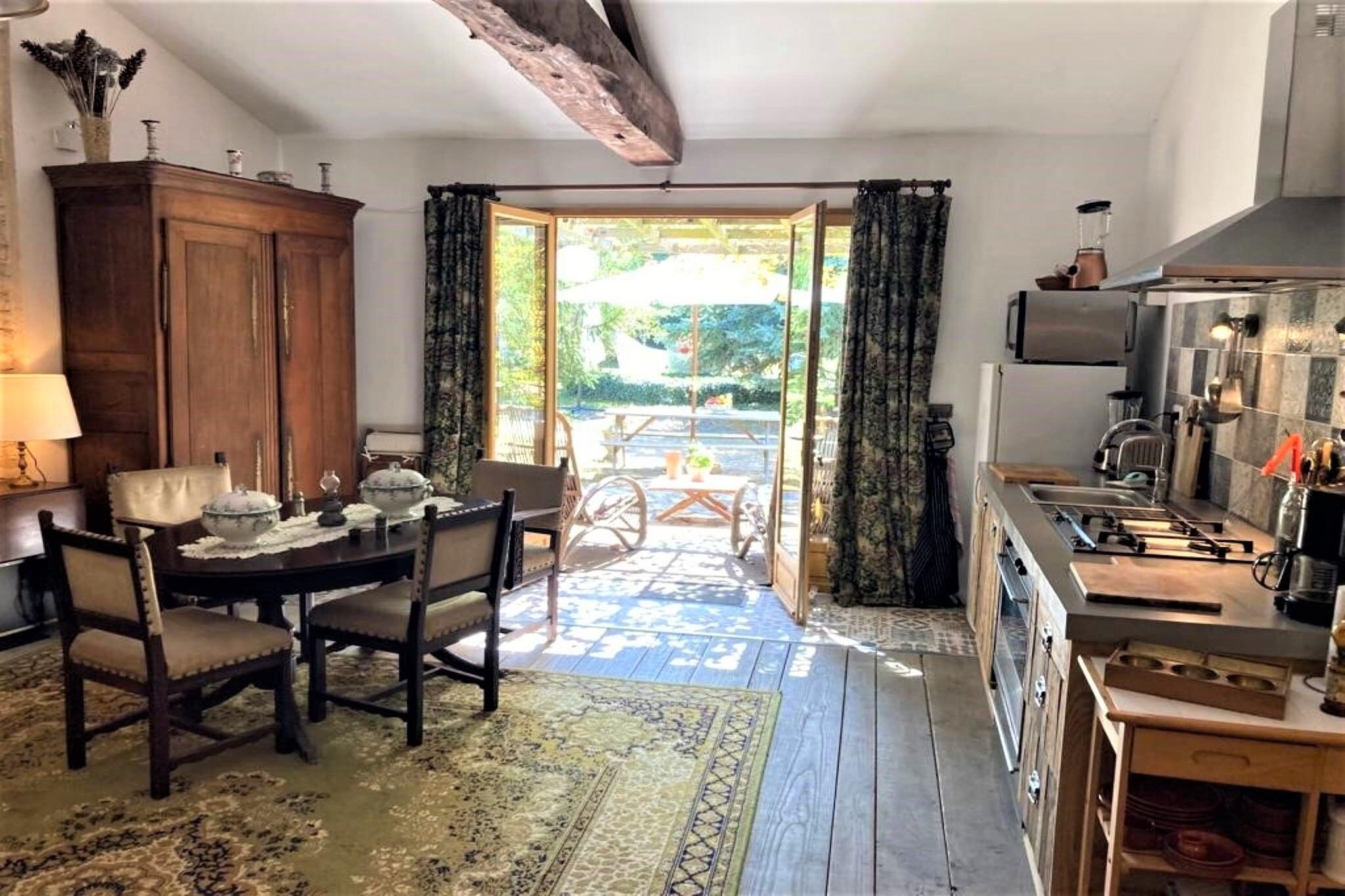 Dette sjarmerende domenet fra 1700-tallet består av et hovedhus (8 personer) og 2 hytter (4 personer hver). Dette feriehuset i naturstein ligger i første etasje og er utstyrt med et åpent kjøkken, en koselig stue og komfortable soverom. Huset er perfekt for en familie! Frontenay sur Dive er en ideell base. Nærområdet er ideelt for fotturer, sykling og fiske, og en rekreasjonsinnsjø med strand ligger 10 km unna. Store attraksjoner i området er slottene og vingårdene i Loire, Futuroscope, Puy de Fou og les Trois Moutiers. Men Chinon og flukttunnelene fra 80-årskrigen er også verdt et besøk.Foran huset finner du en terrasse hvor du kan slappe av med frokost. Ved siden av huset er det en skyggefull terrasse med en tradisjonell brødovn. Den felles hagen er fullstendig inngjerdet og det er en lekeplass for barna. Huset kan kun varmes opp via vedovn. I vintermånedene (oktober til april) betaler du ekstra for dette; dette er inkludert i servicekostnadene som du betaler på forhånd. Eiendommen er ikke oppvarmet på annen måte. Vedovnen sørger for tilstrekkelig oppvarming til hele boligen Du kan parkere bilen på den romslige parkeringsplassen som grenser til hagen og er tilgjengelig via hageporten. Du kan frakte bagasje til og fra bilen med vognen.